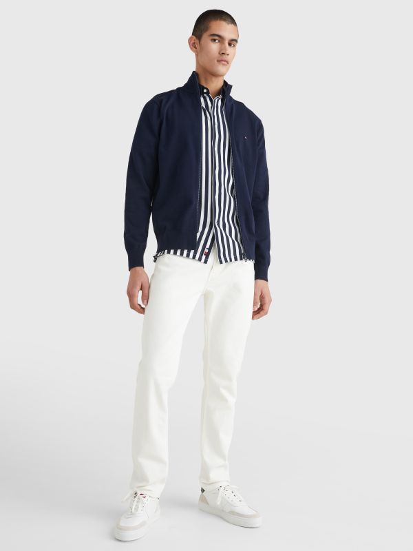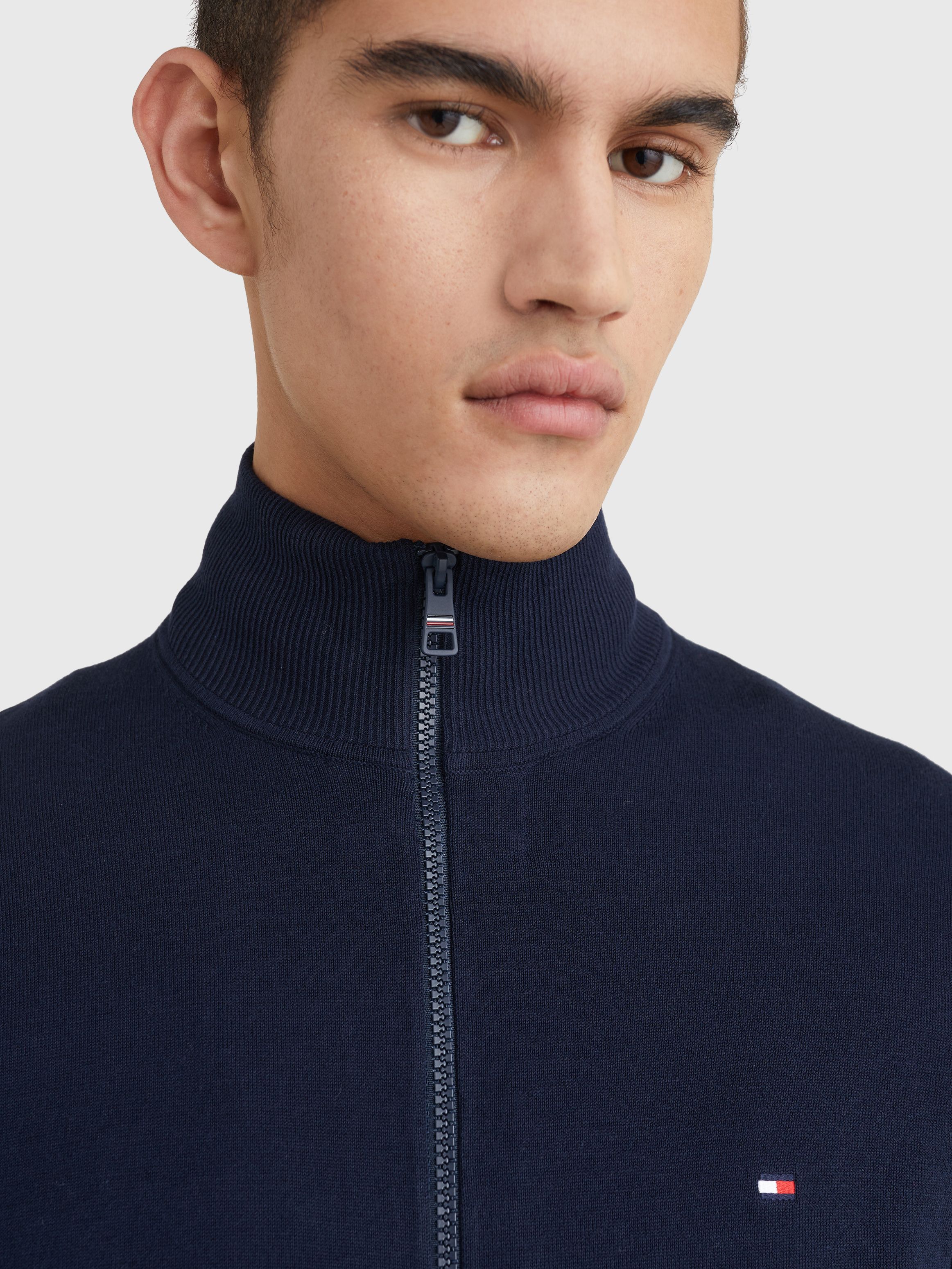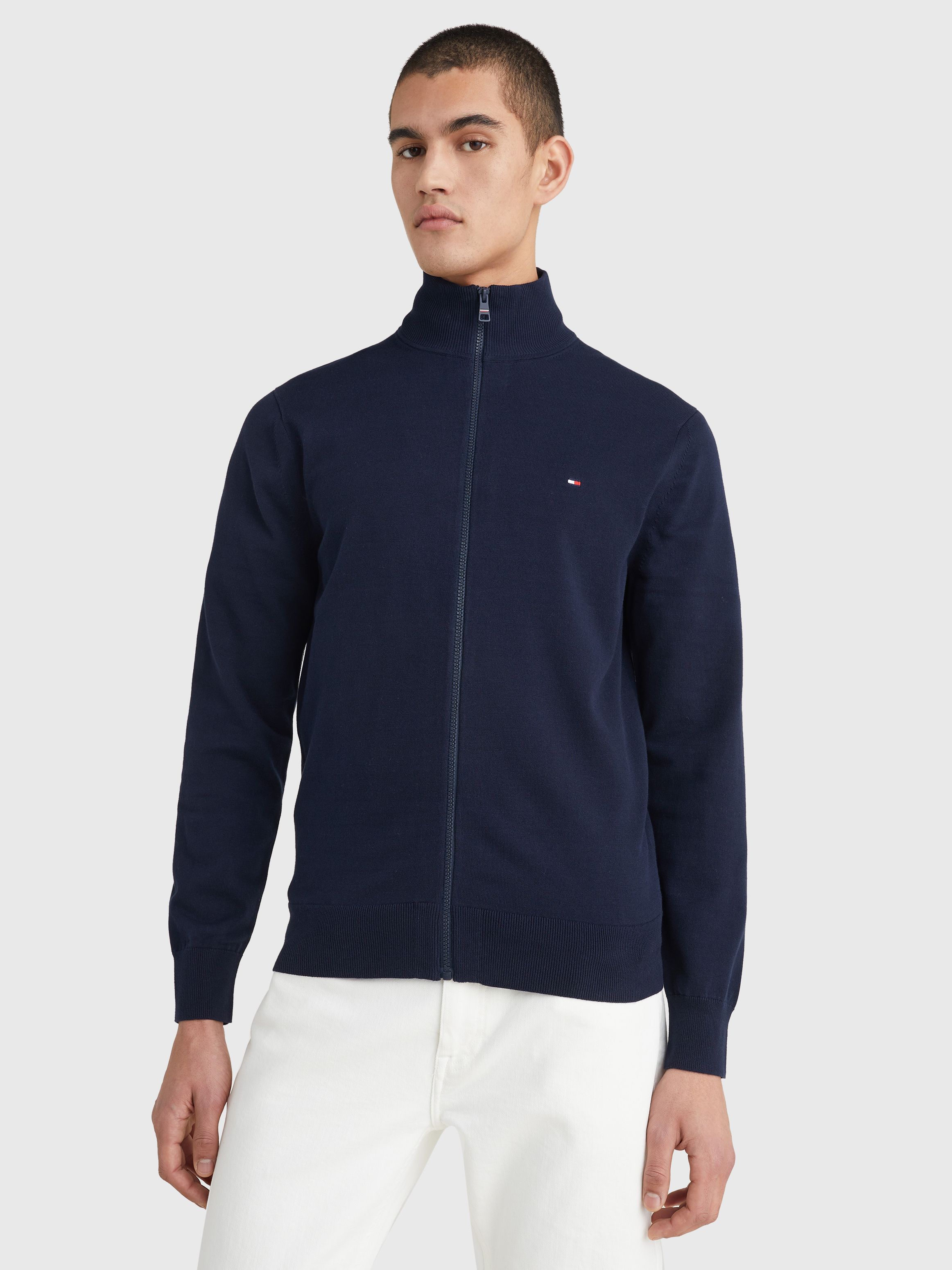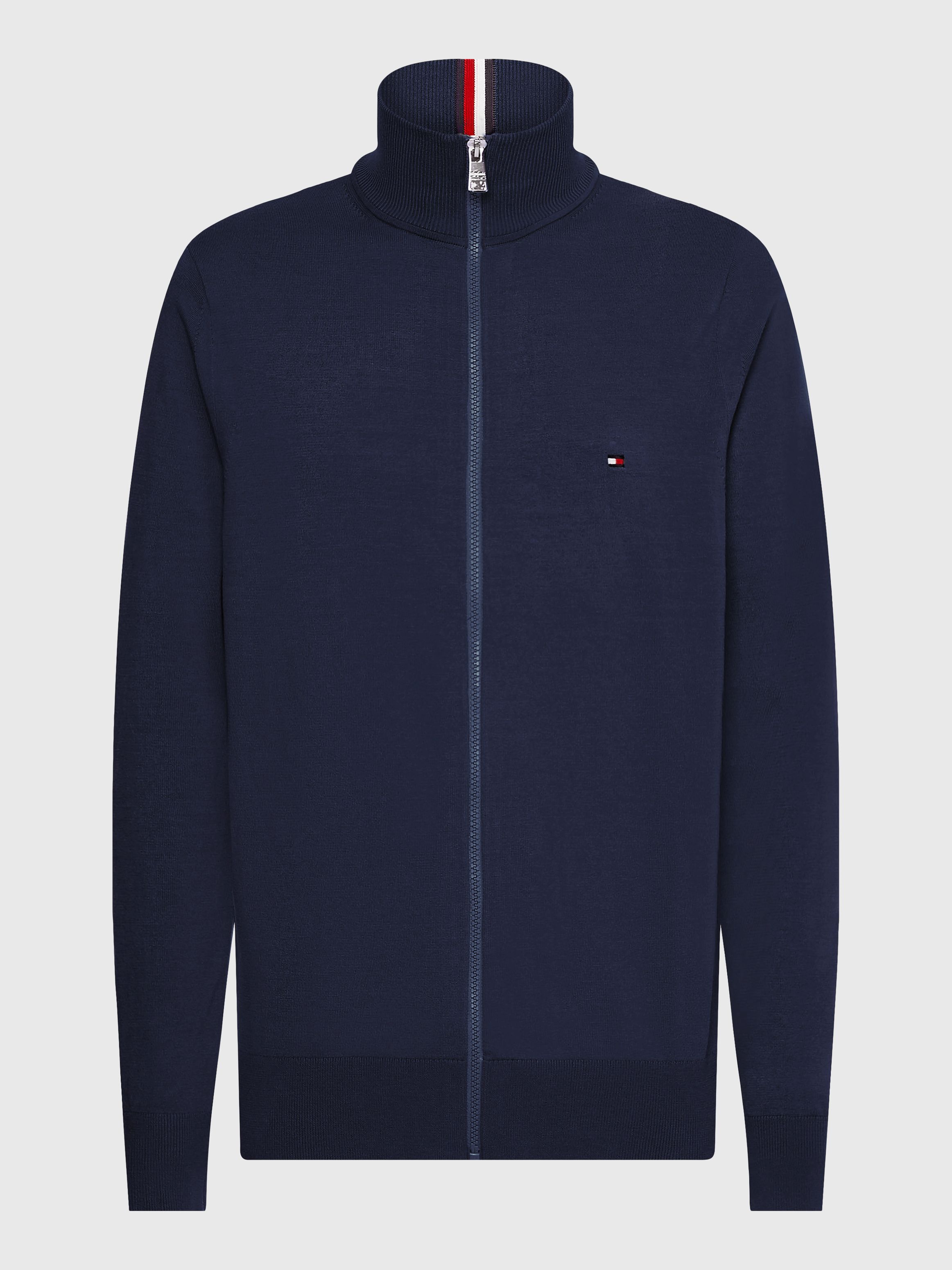 Stay warm in this zip-thru cardigan made with Tommy Hilfiger Flex technology for added comfort, and a high neck to trap warmth.
