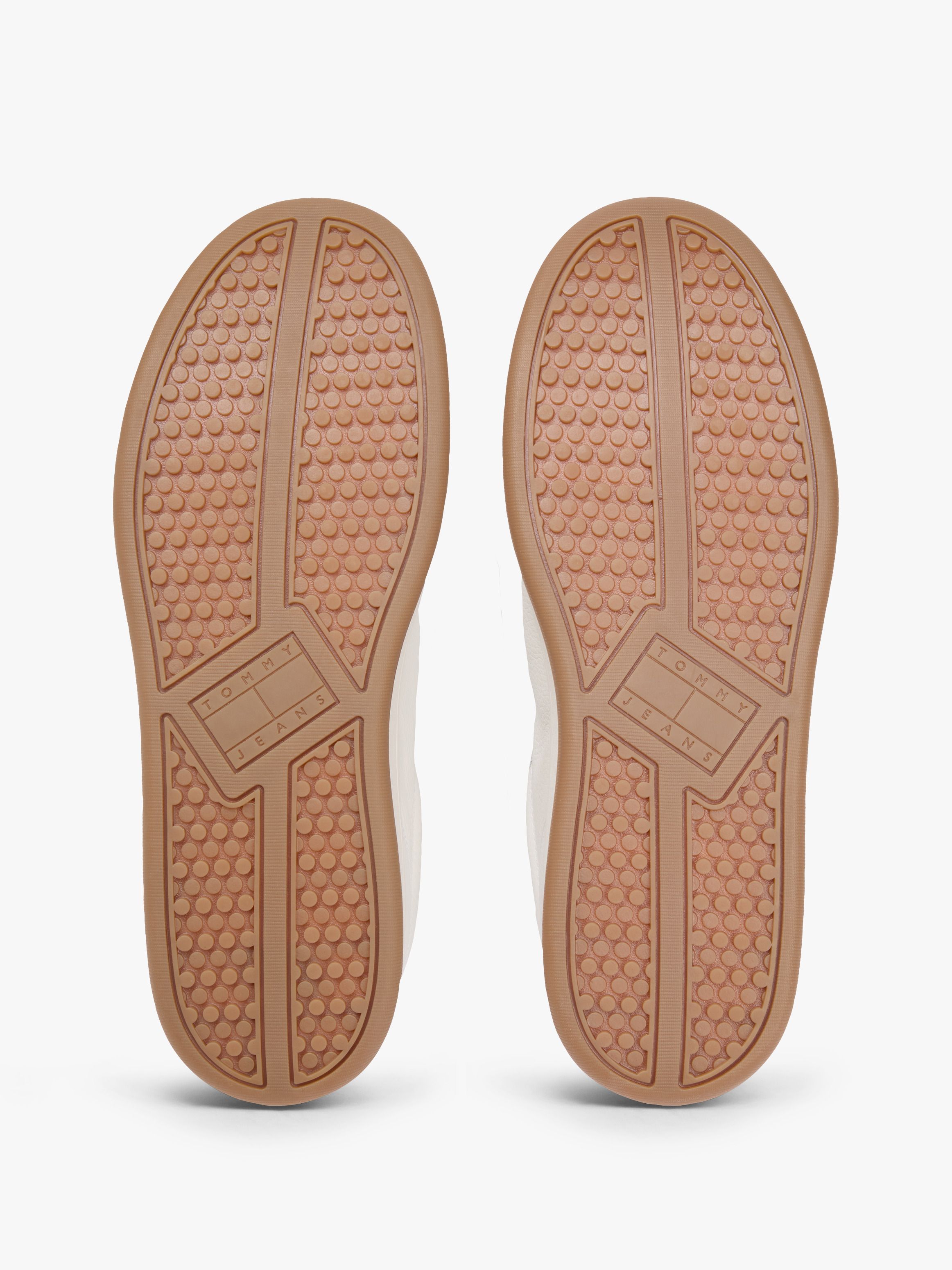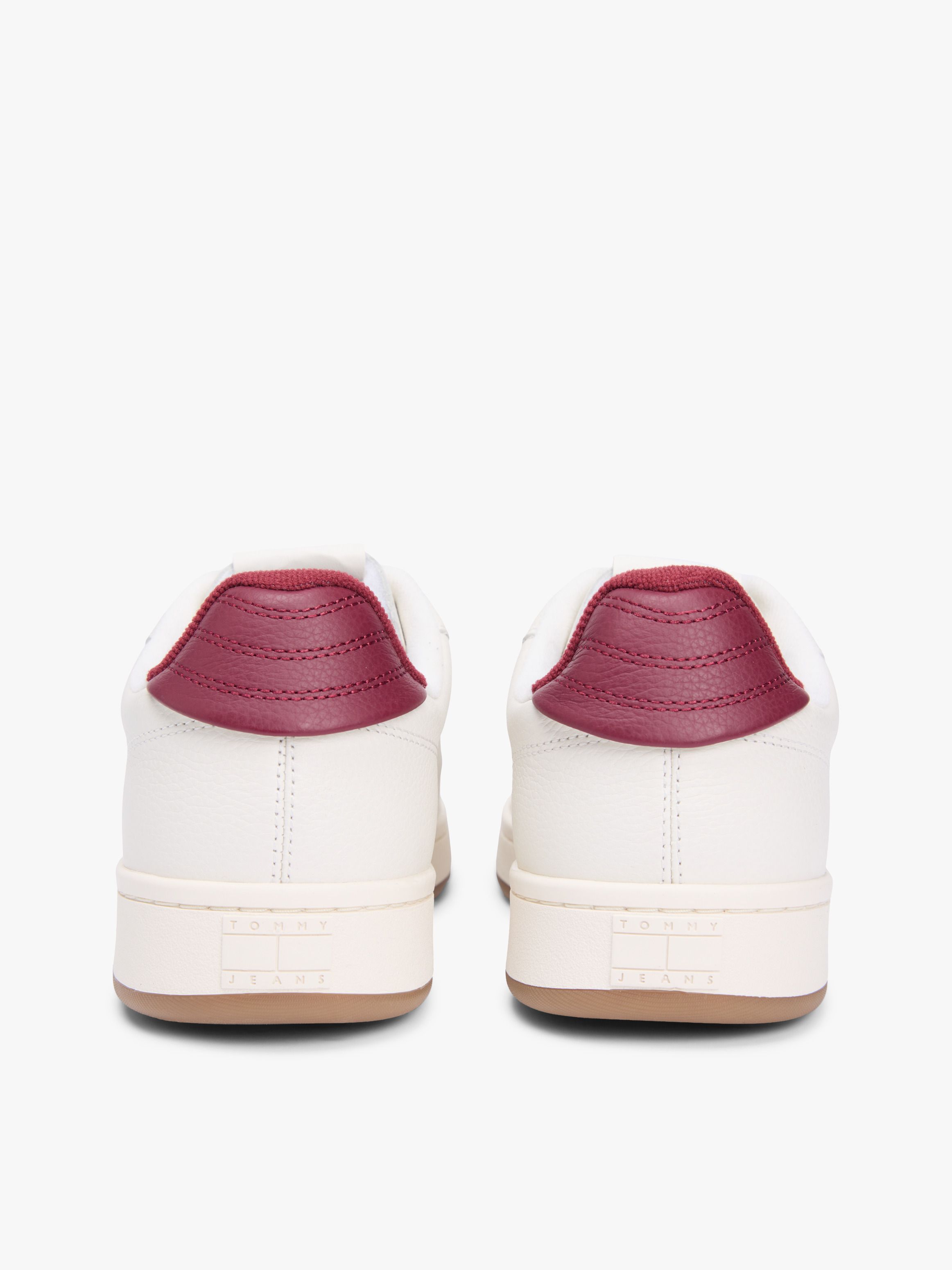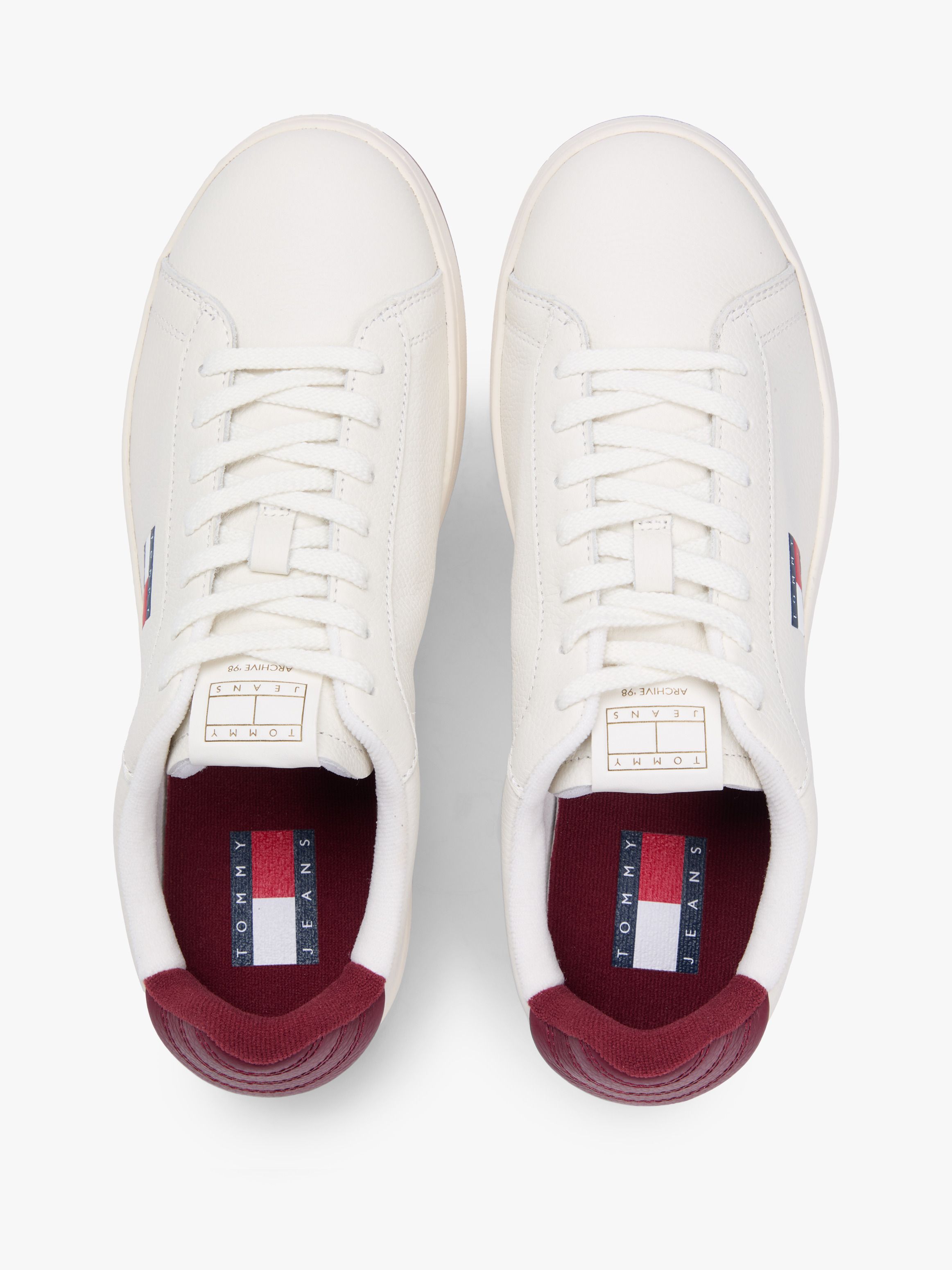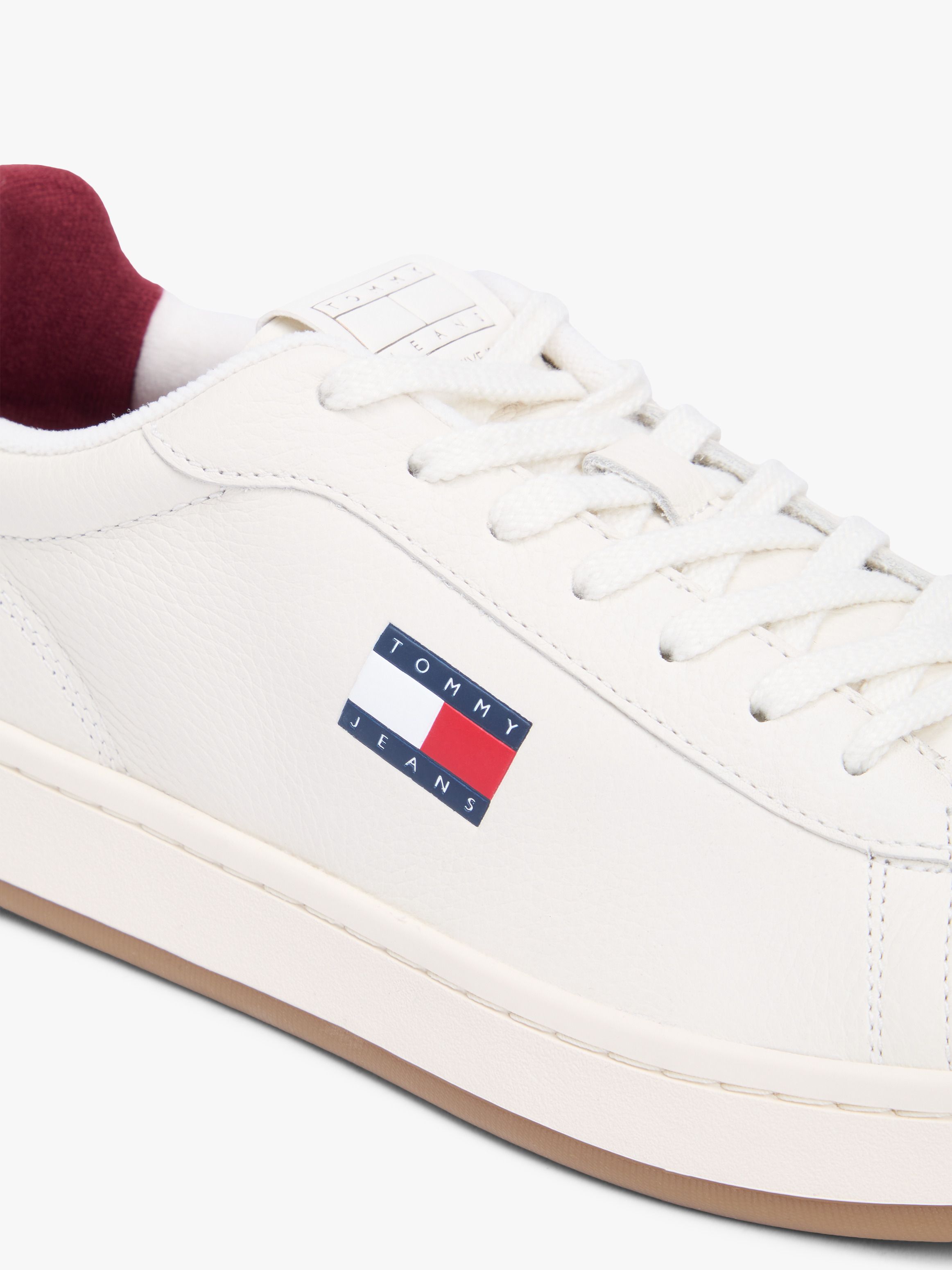 • Leather upper • Polyester lining • Polyurethane, other textiles and thermoplastic rubber removable insock • Rubber outsole • Contrast pebble grain heel panel • Tommy badge on side • Tommy badge embossed on heel and tongue • Tommy Jeans branding