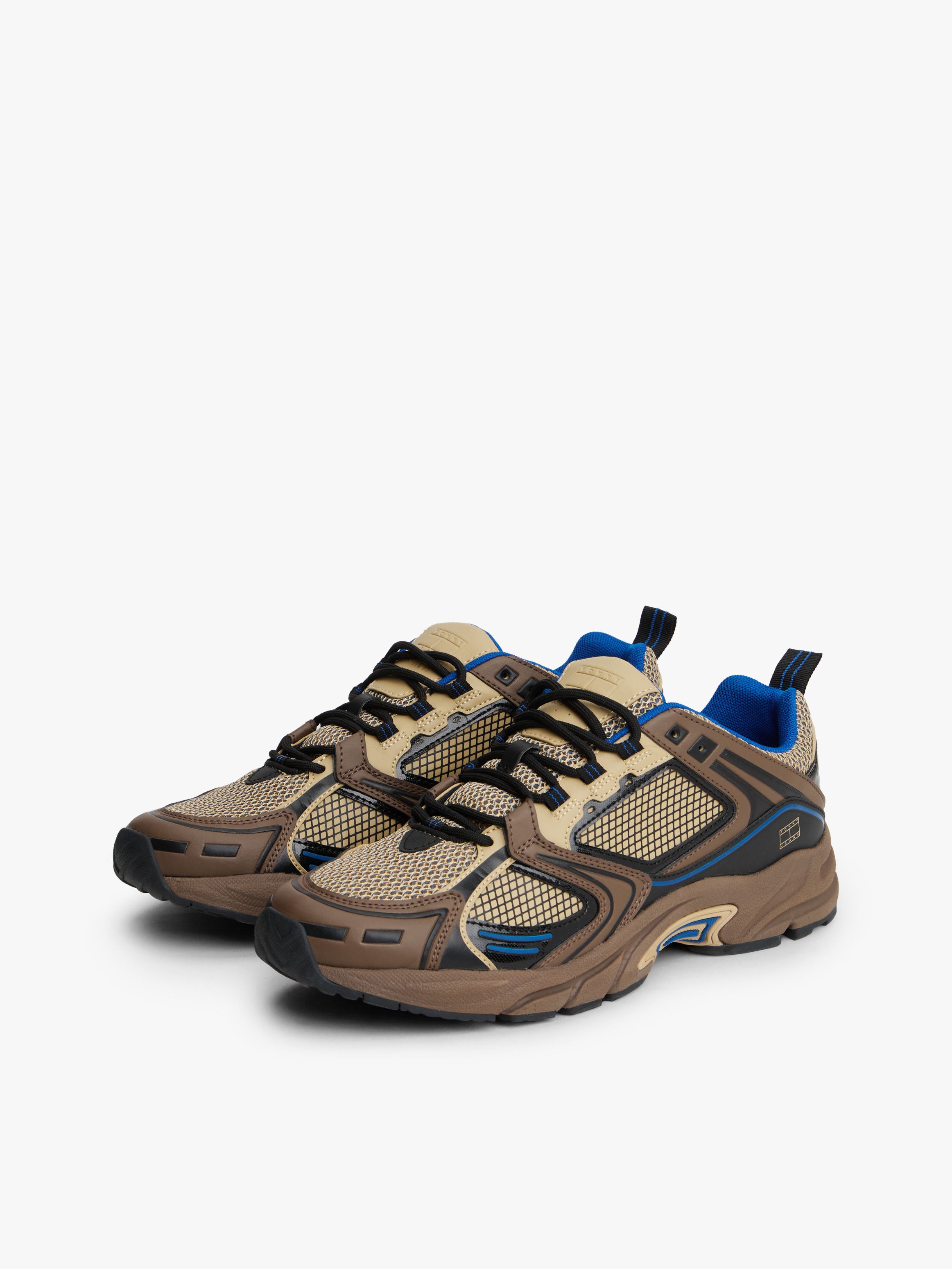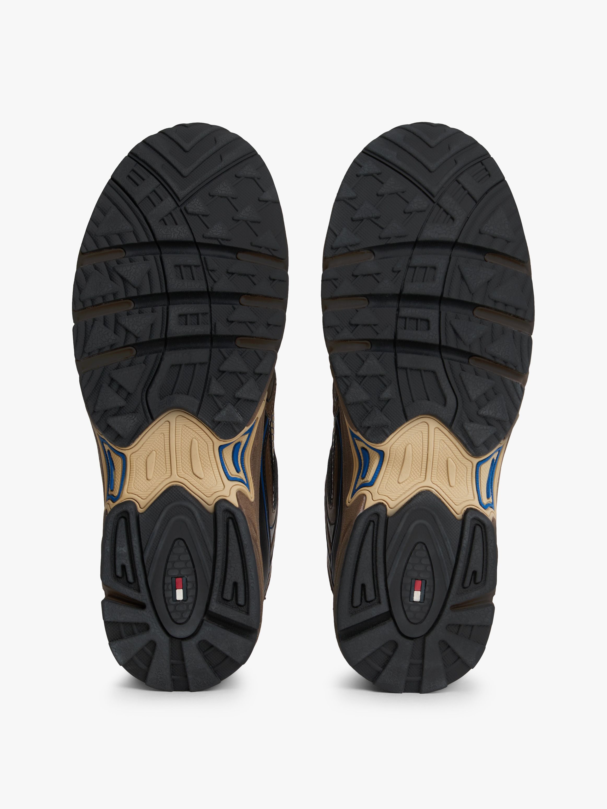 Dynamic chunky soles and contrast mixed-texture panels work to enhance the bold, retro aesthetic of these low-top trainers.