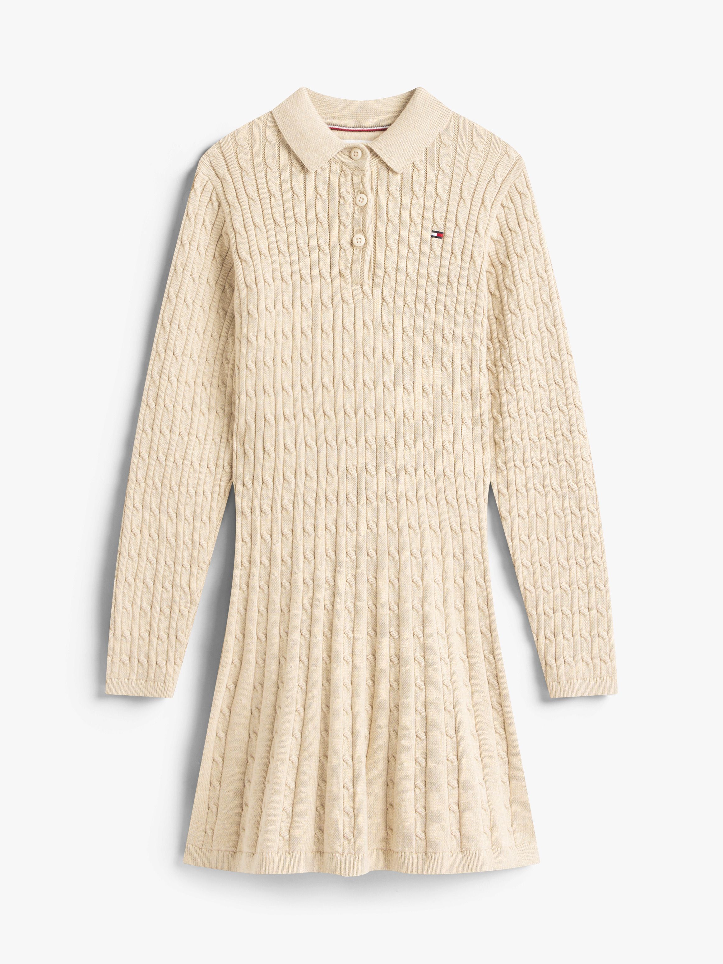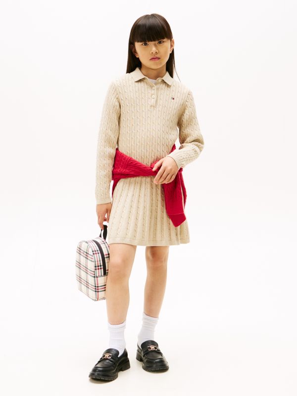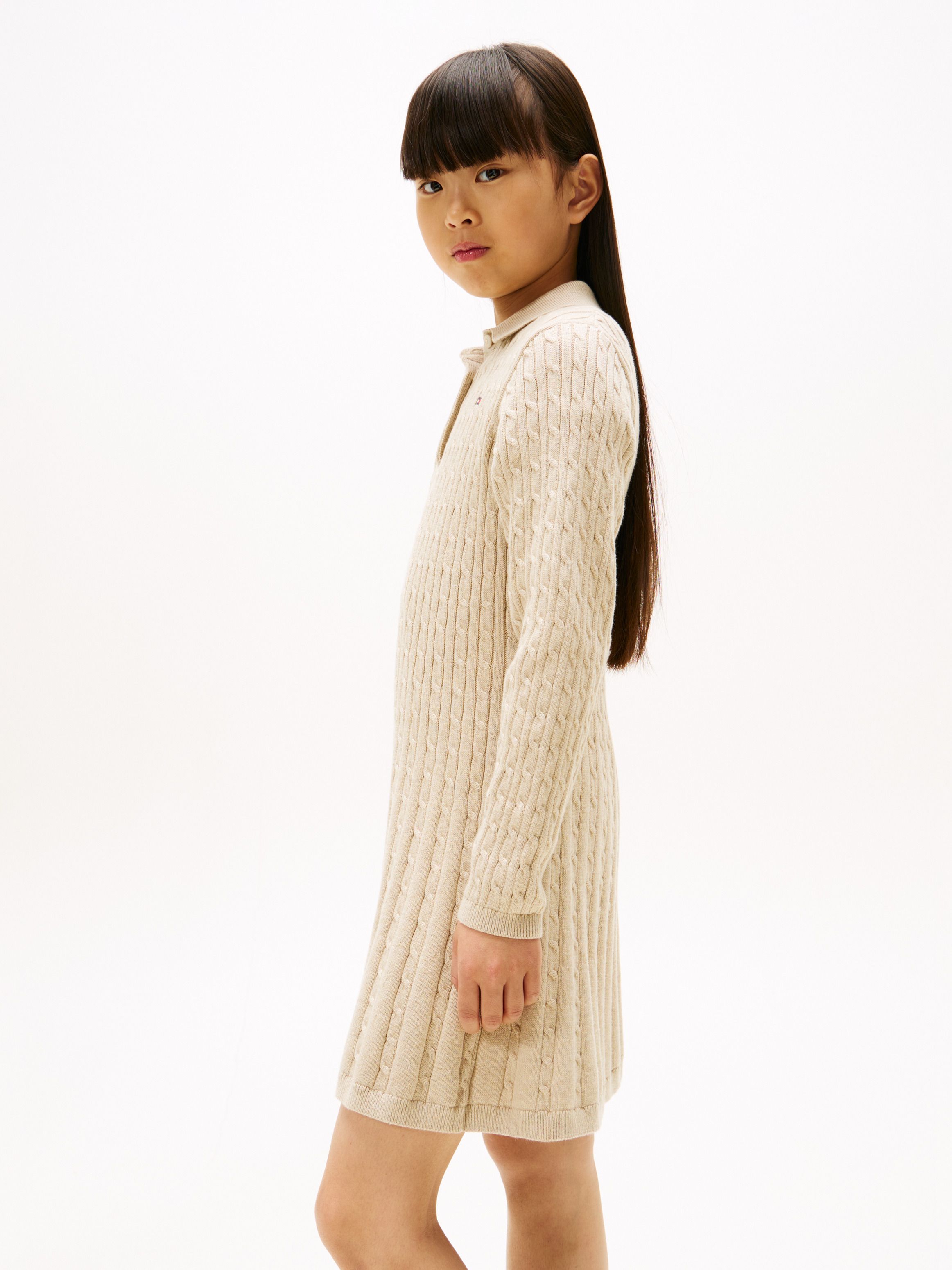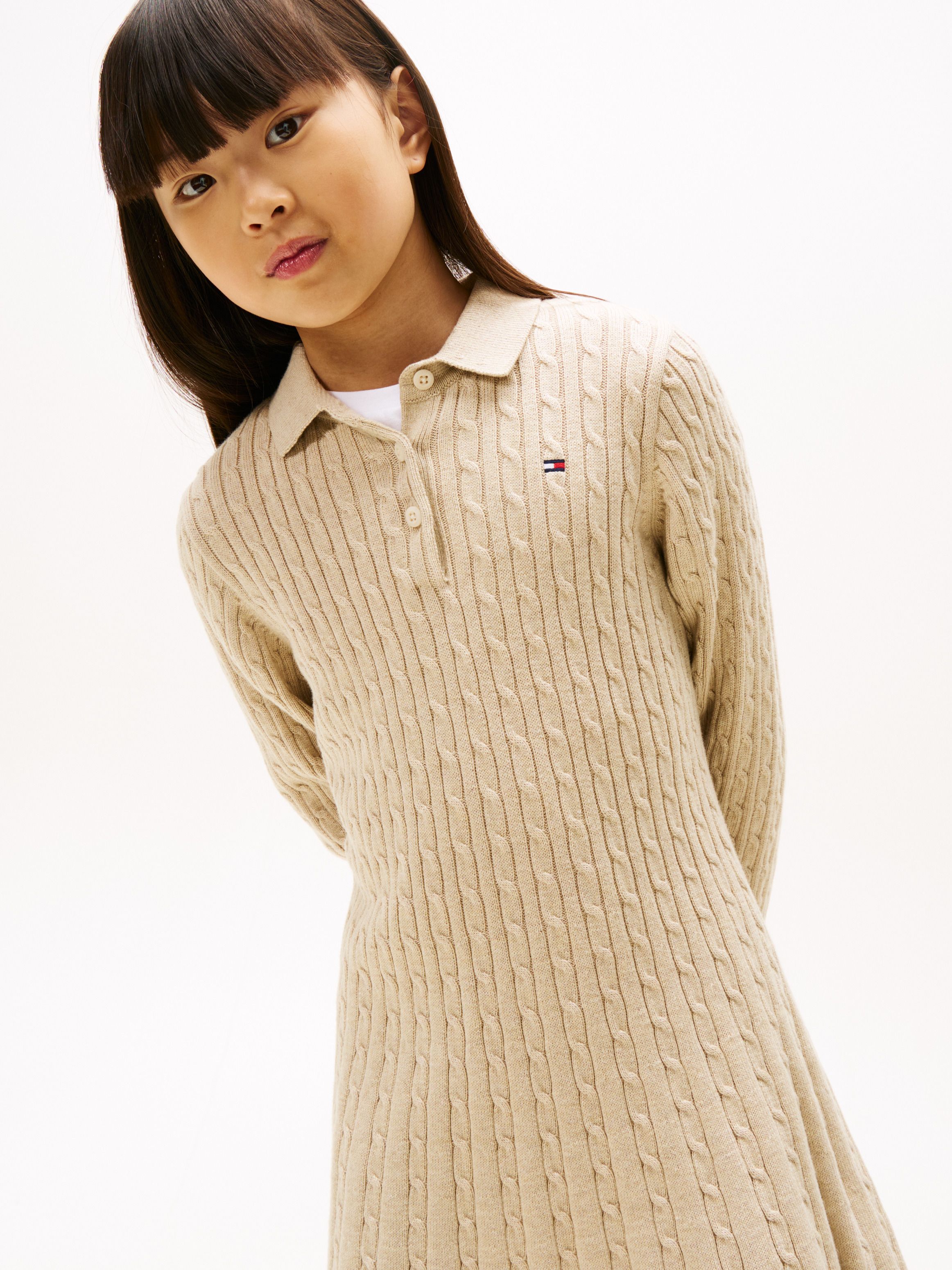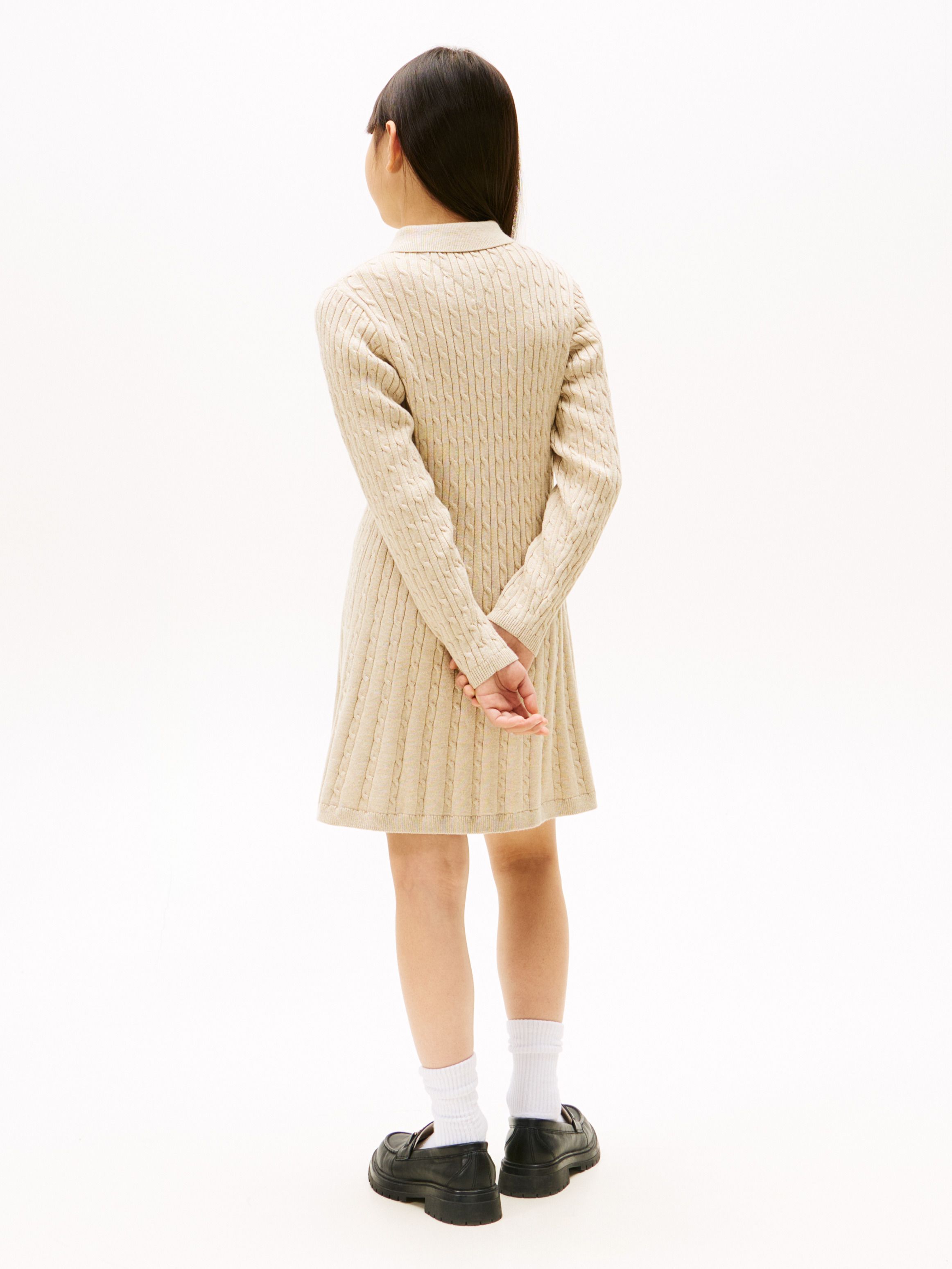 This jumper dress is crafted from pure combed cotton with a tactile cable knit, making it a cosy choice for chilly days.