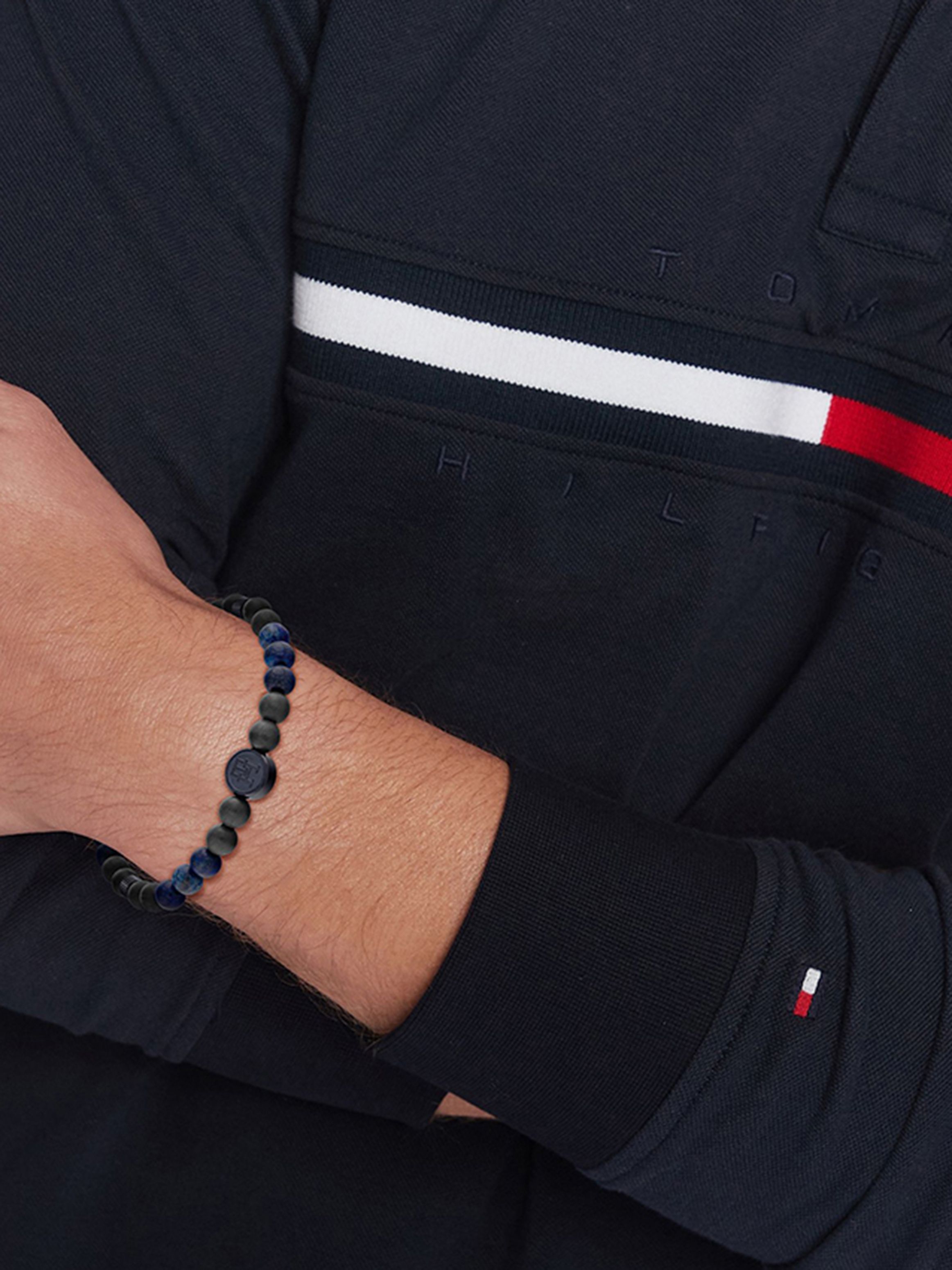 The Tommy Hilfiger TH85 Carbon Beaded Bracelets elevate your style with genuine semi-precious stones, new carbon fiber reinforced polymer beads, and bold monogram branding. Designed to complement the TH85 Carbon watches, these bracelets add a touch of sophistication and modern edge.