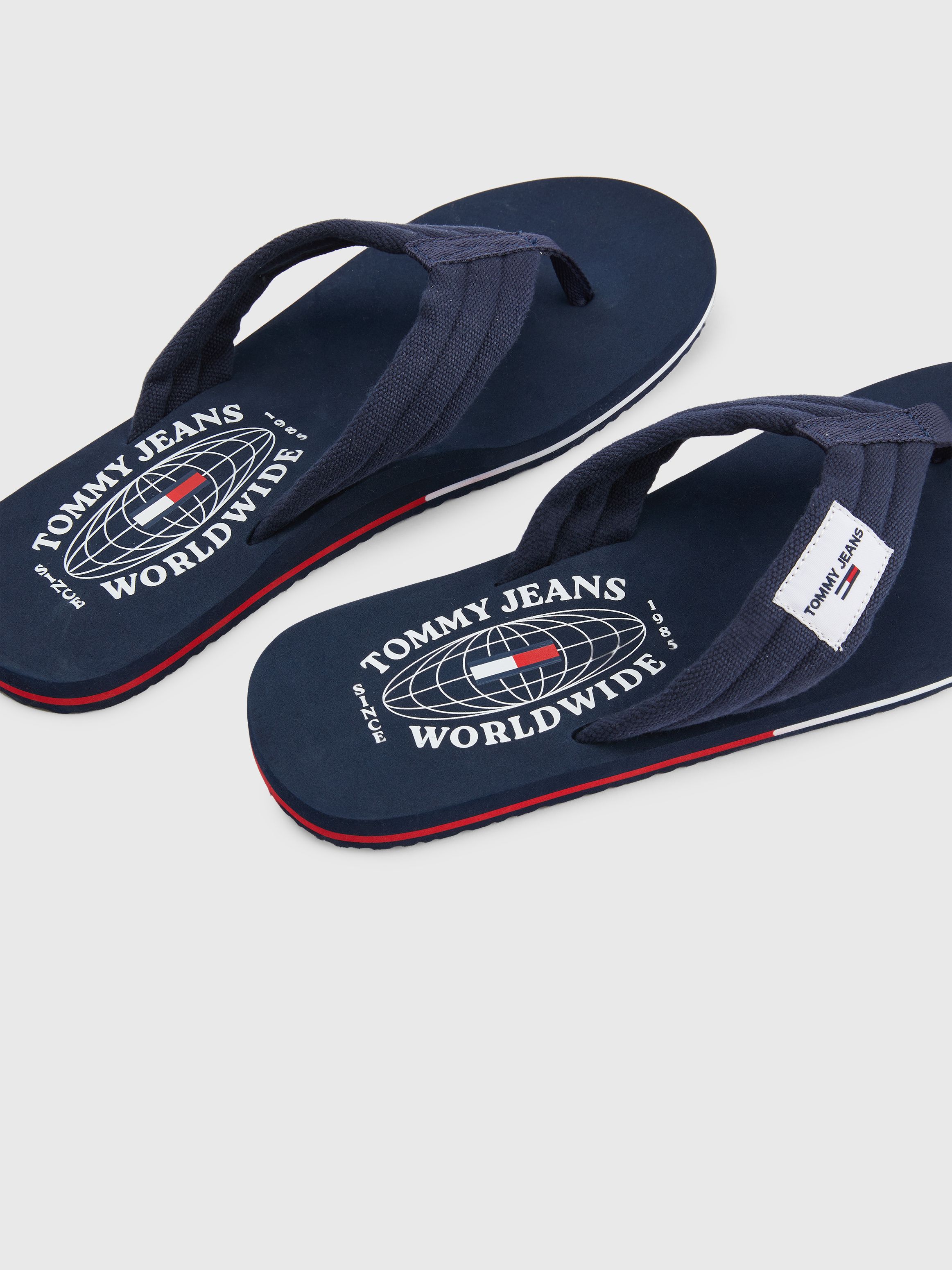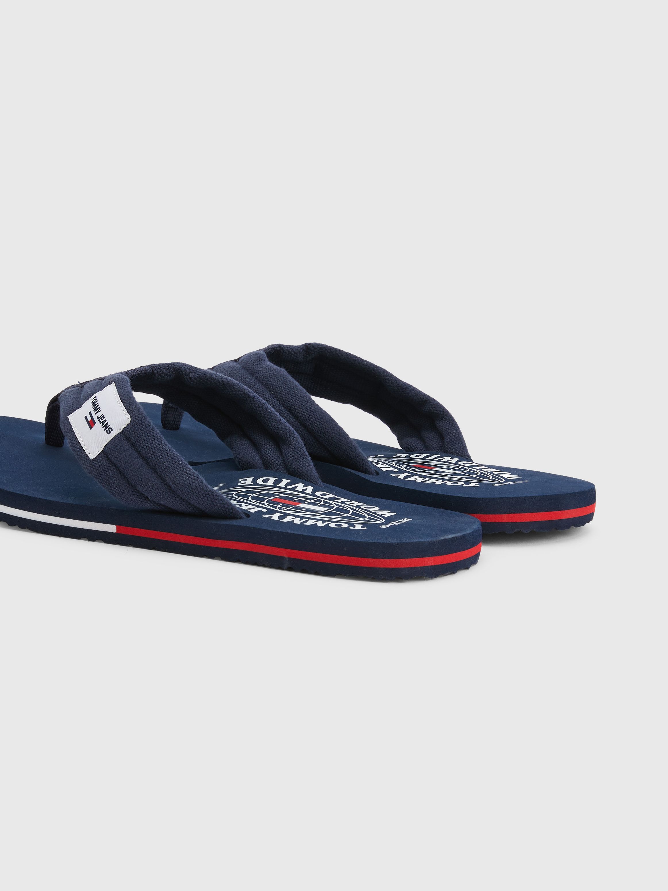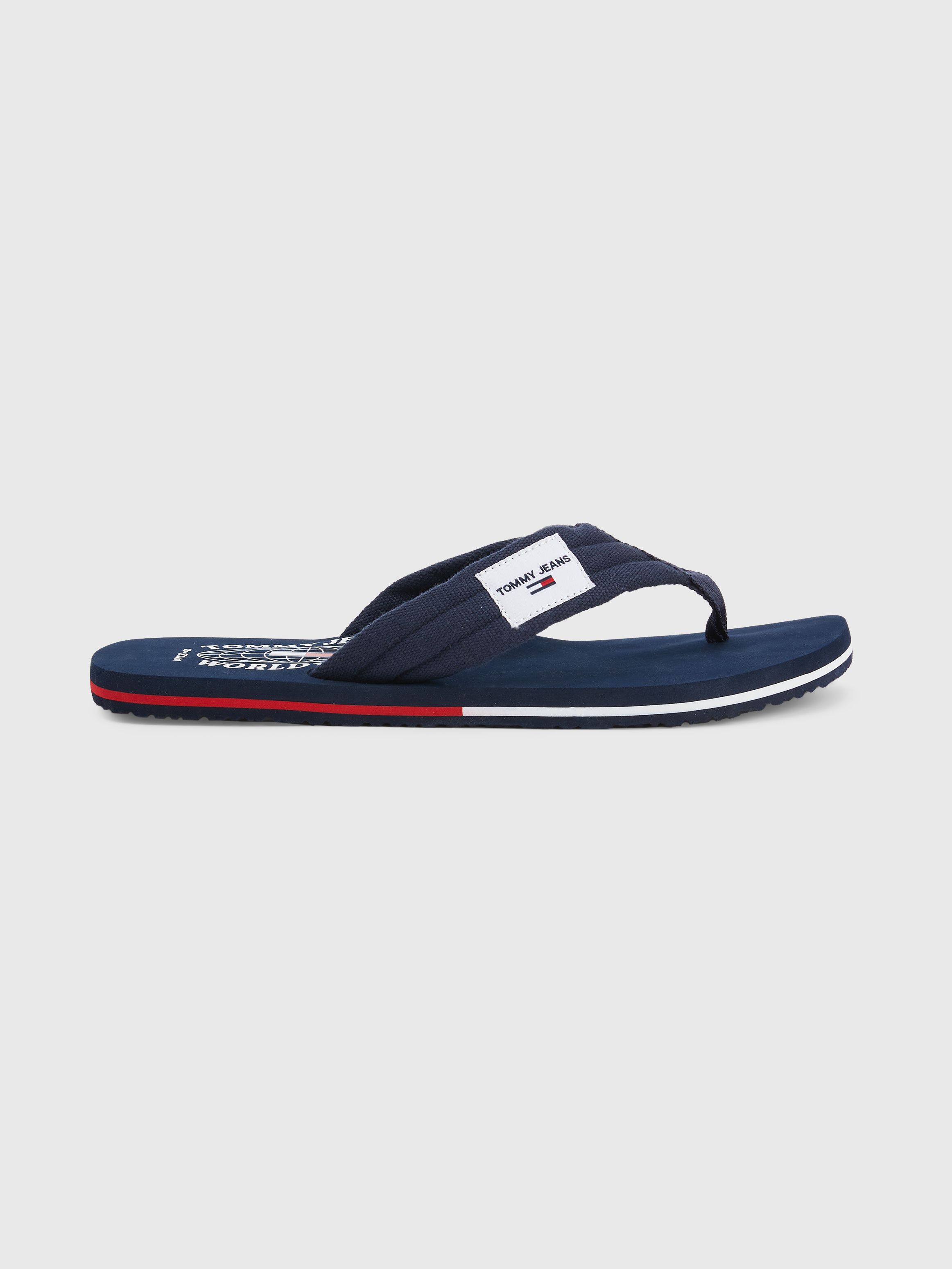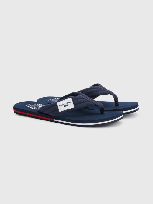 Chambray straps give these flip-flops a relaxed look, while the logo and signature detail are high-recognition Tommy Hilfiger touches.
