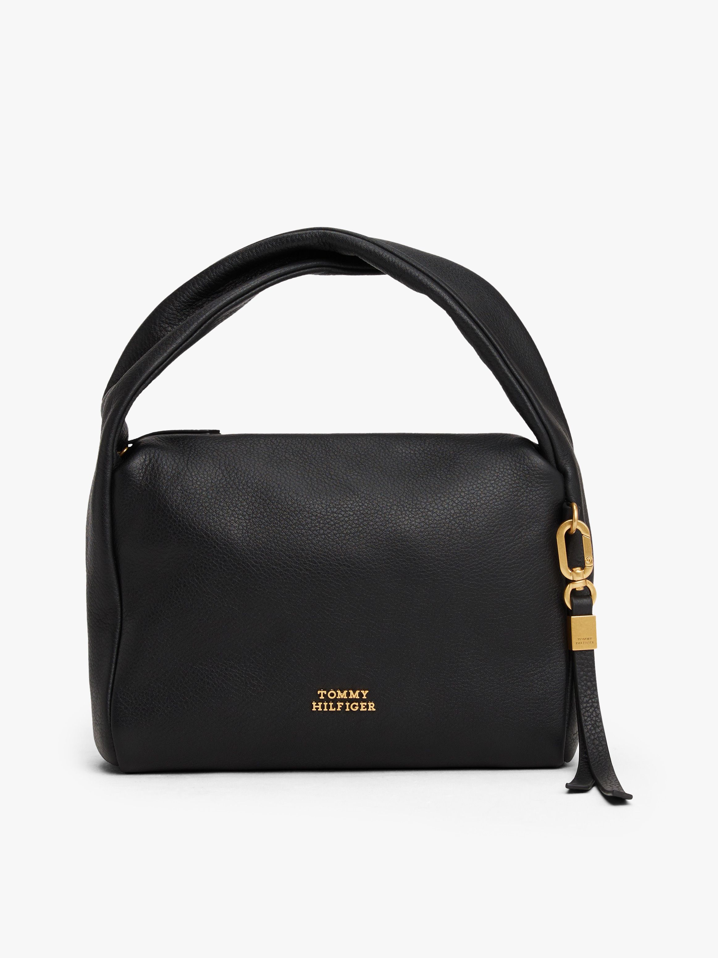 • Leather • Pebble grain finish • Zip closure • One top handle • One main compartment • One interior zipped pocket • Twist detail on handle • Detachable keyring clip • Tommy Hilfiger logo plaque on front • Tommy Hilfiger branding