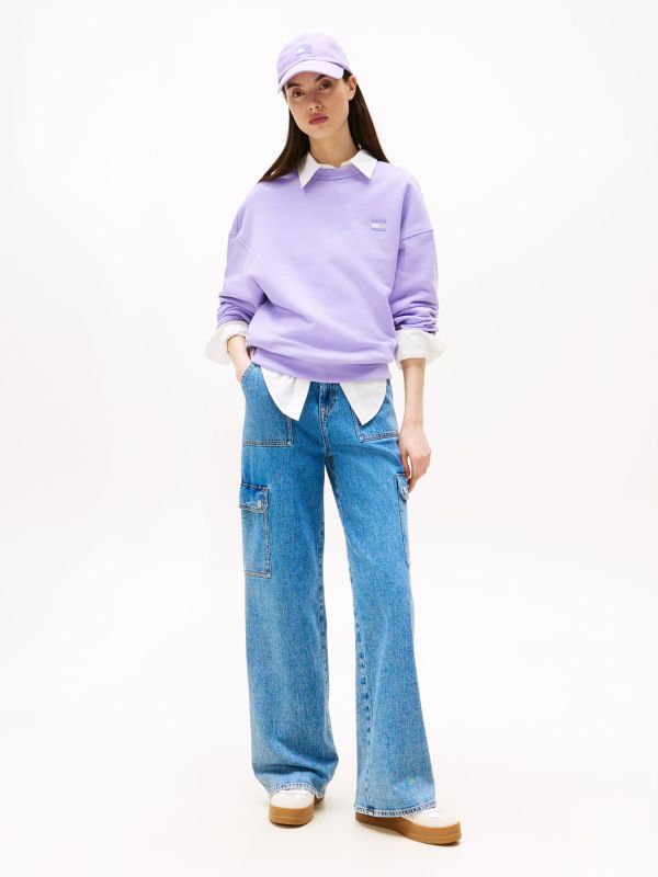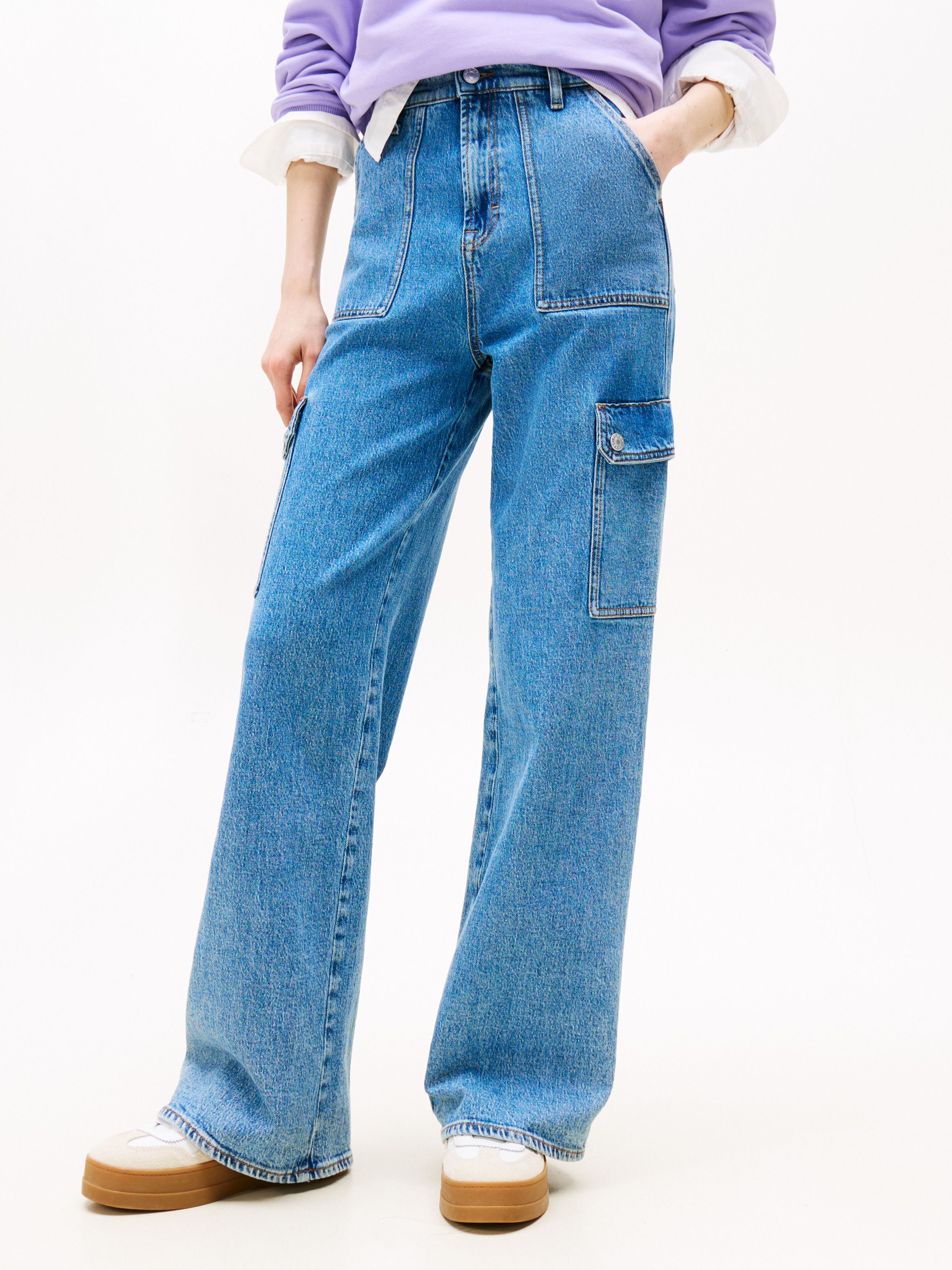 • Stretch cotton denim • All-over fading • Two side slip pockets • Two side buttoned cargo pockets • Two back patch pockets • Tommy Jeans branding • Tommy Jeans flag patch on back
