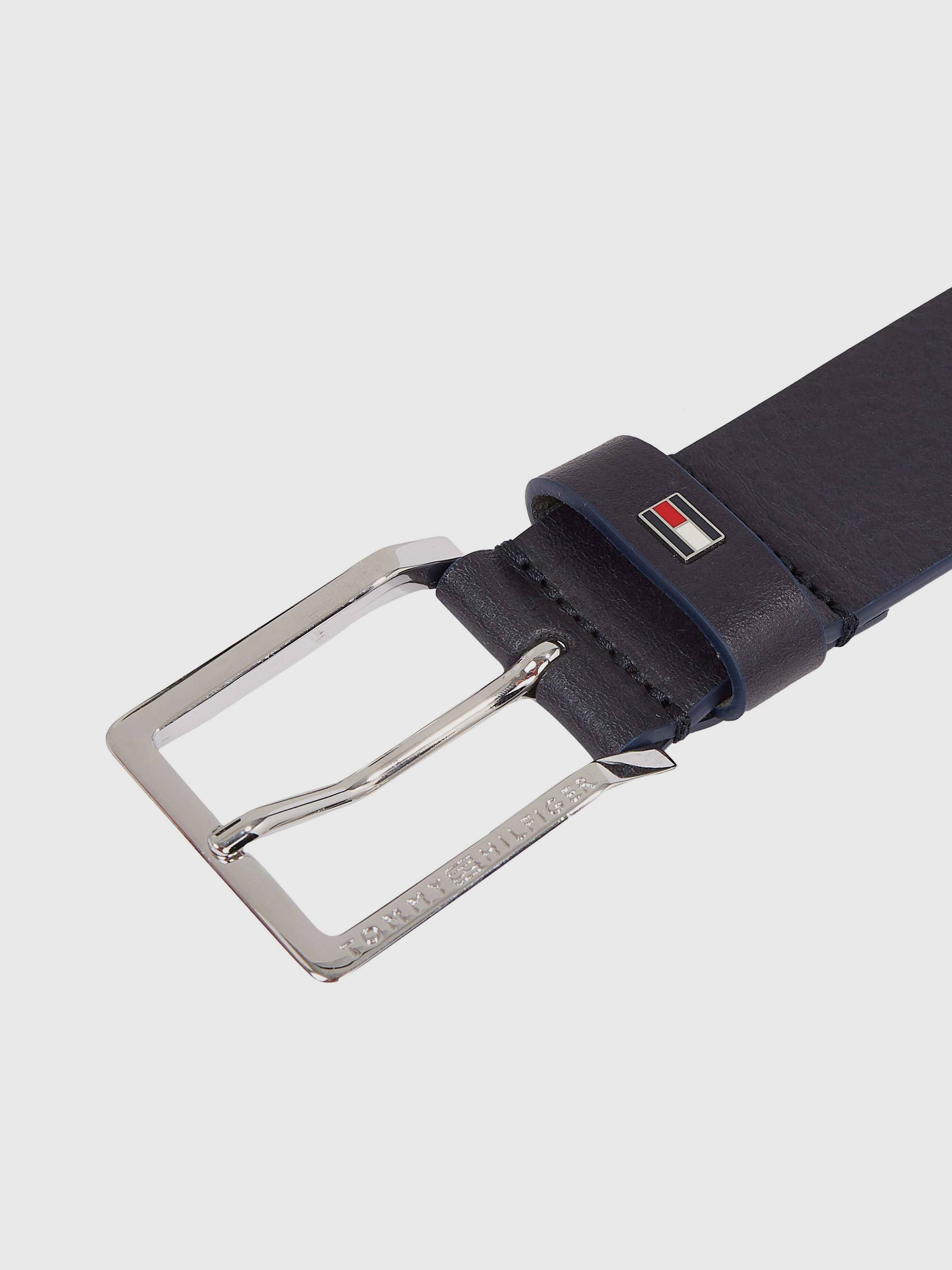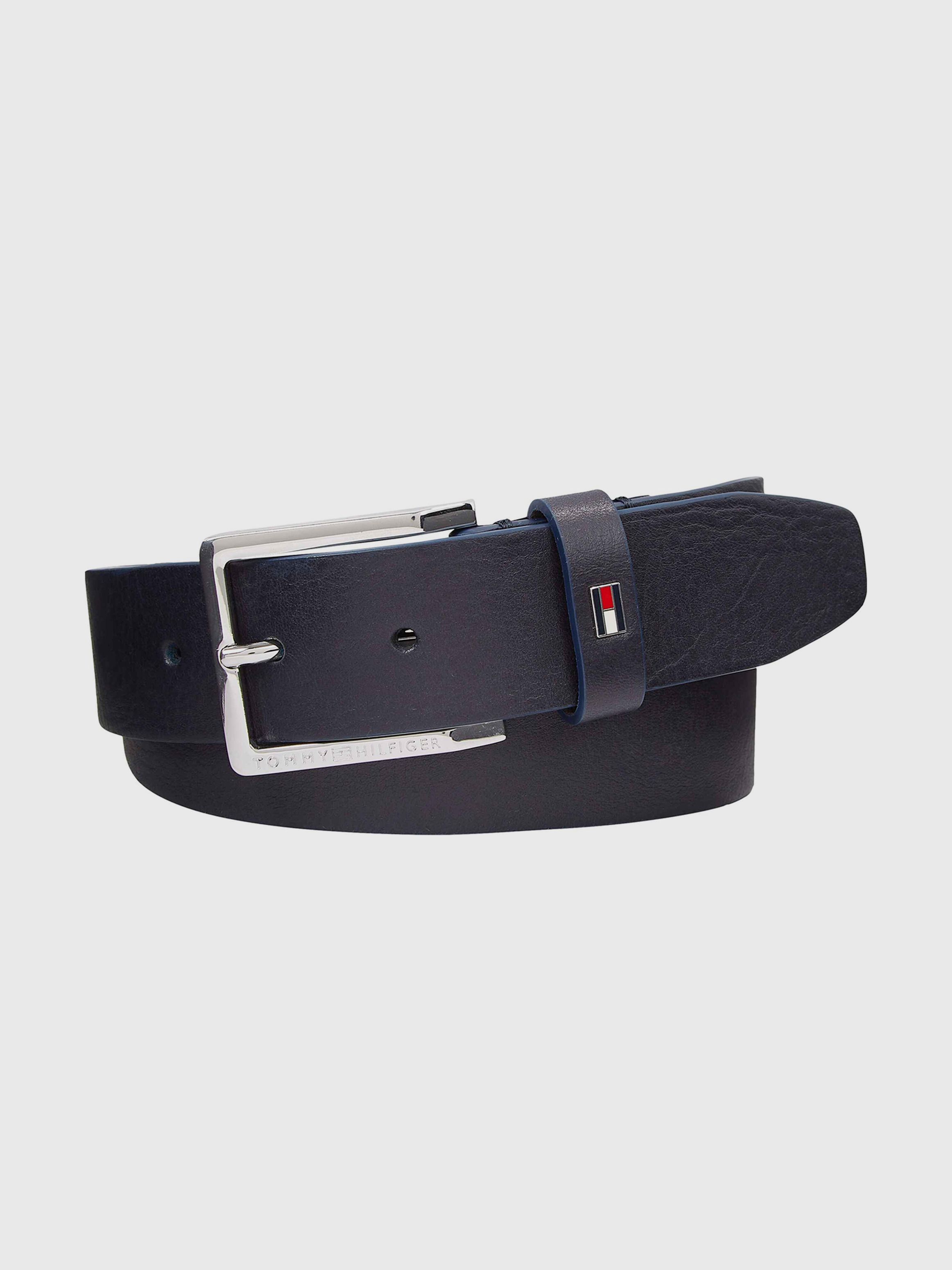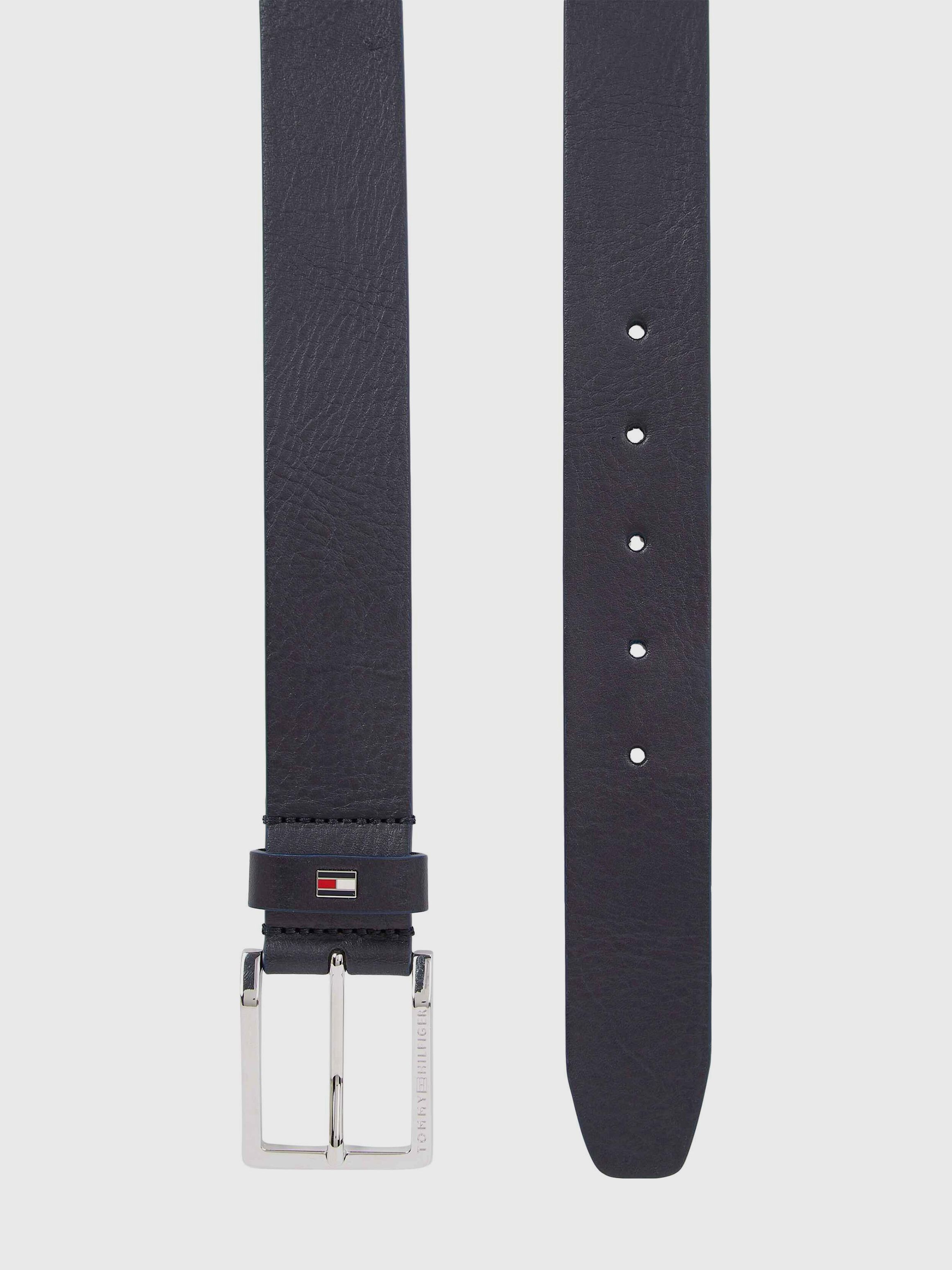 • Vegetable tanned leather • Sourced with the Leather Working Group • Pebble grain finish • Contrast square metal buckle • Leather keeper • Tommy Hilfiger logo embossed on buckle • Tommy Hilfiger branding • Tommy Hilfiger enamel flag on keeper