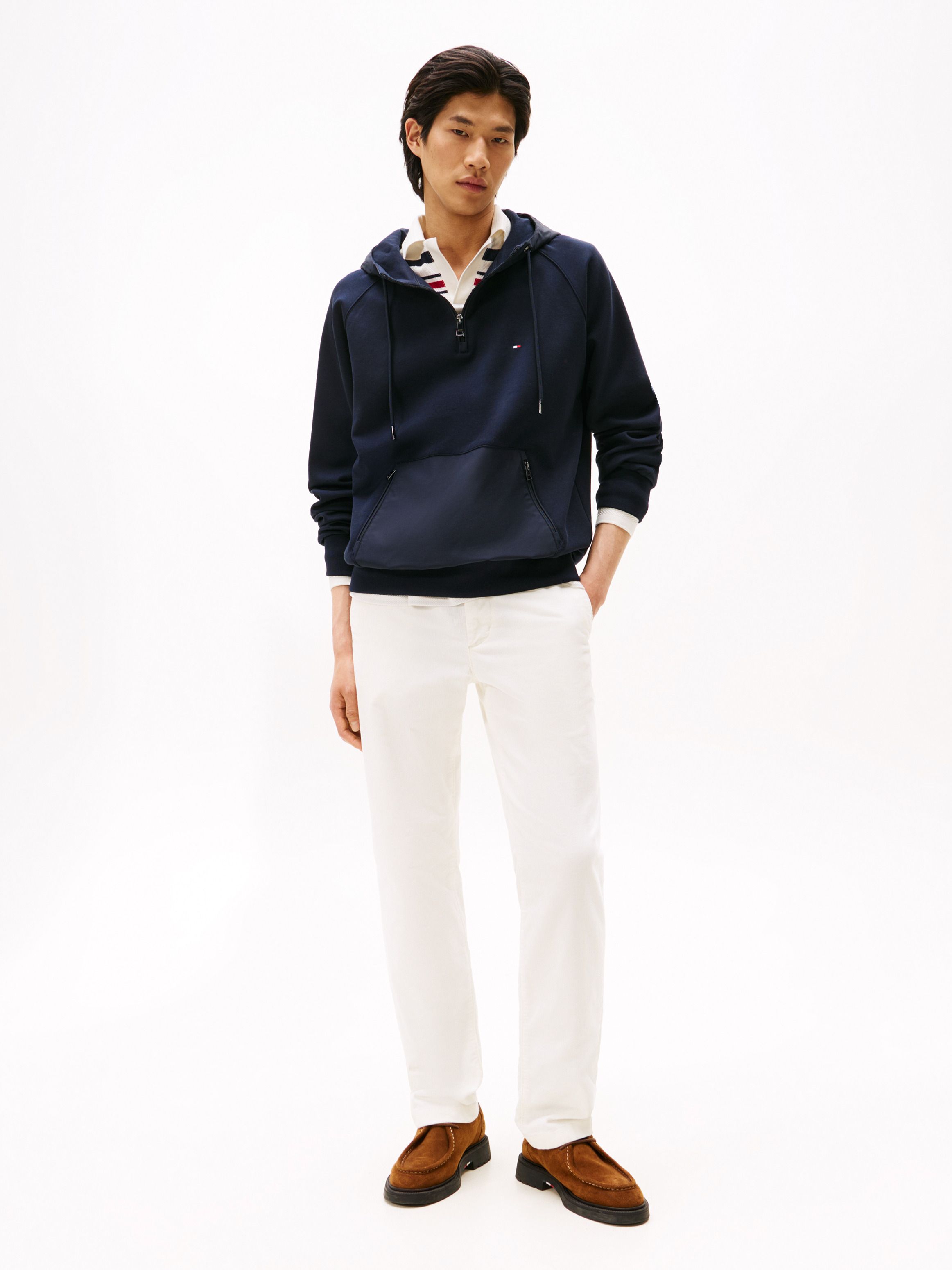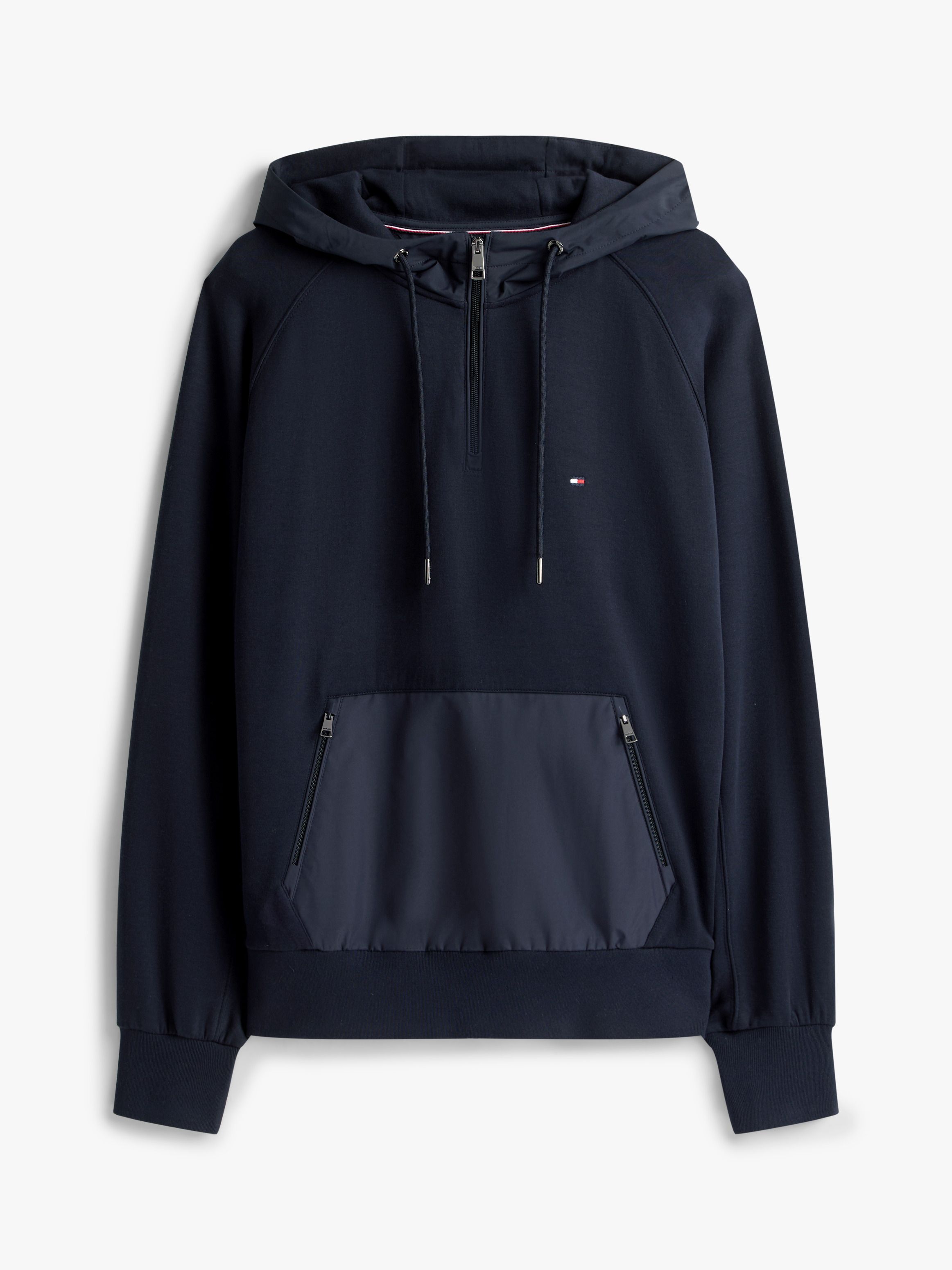 This hoody offers a more sophisticated take on the classic design, with contrasting fabric textures and a smart quarter-zip neckline.