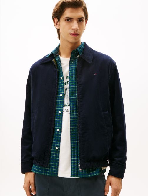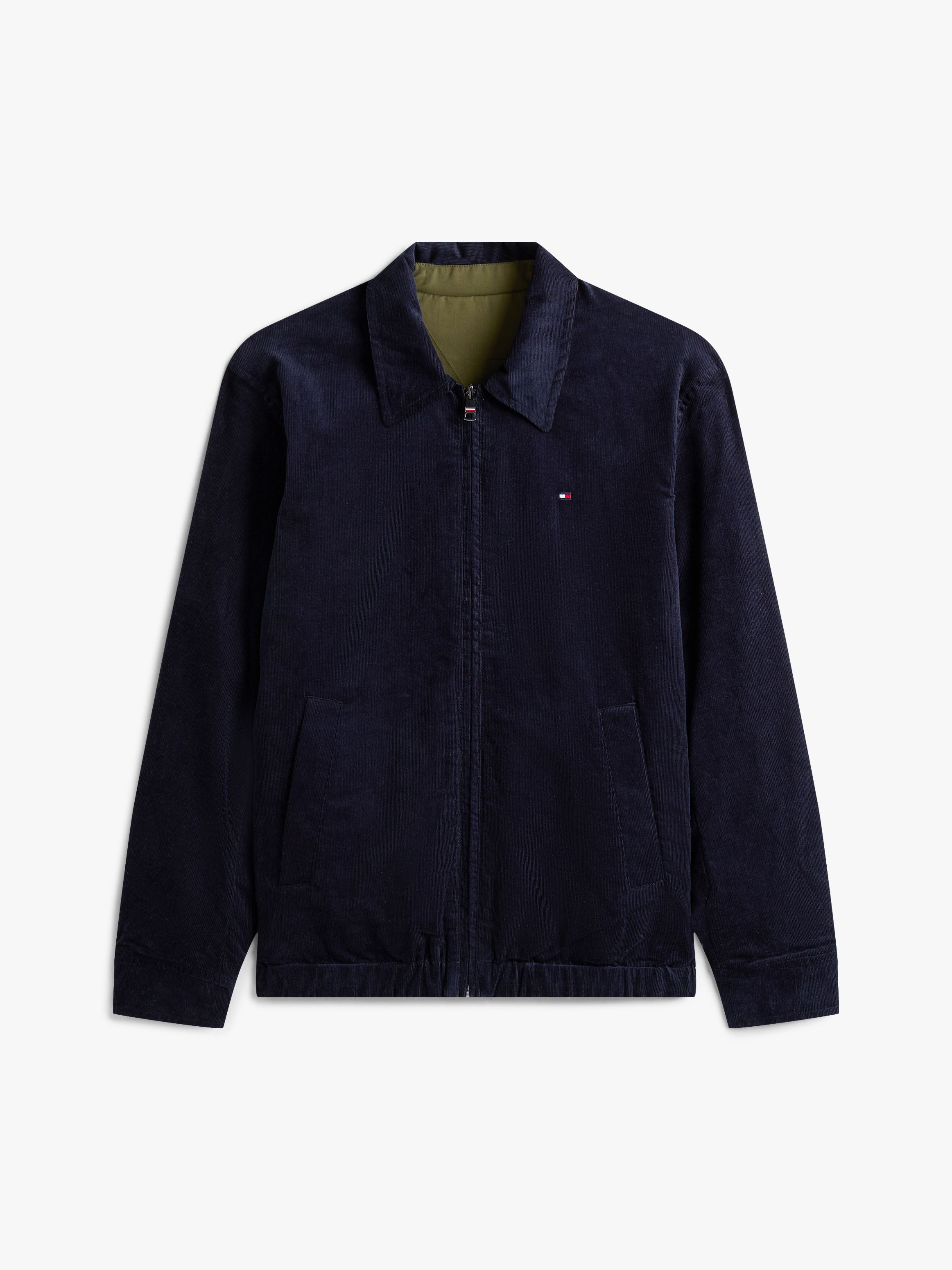 • Pure cotton corduroy • Reversible • Semi-spread collar • Zip-thru • Two waist slip pockets • Buttoned cuffs • Signature detailing on zip pull • Tommy Hilfiger branding • Tommy Hilfiger flag embroidery on chest