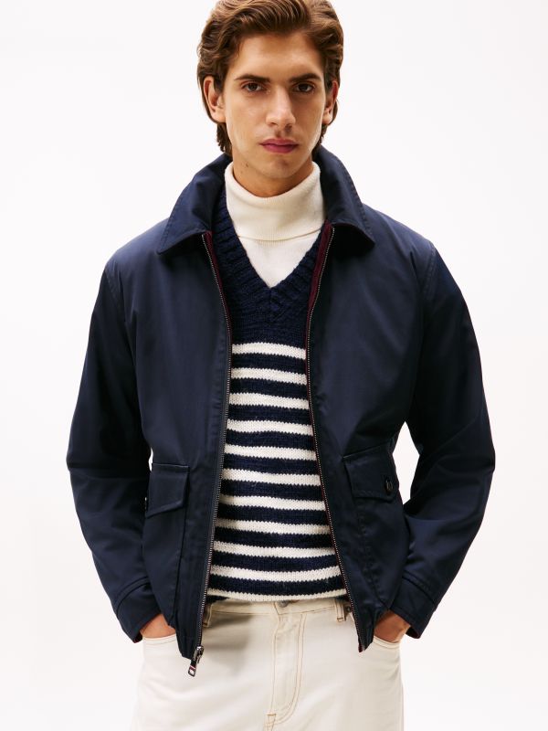 • Pure cotton corduroy • Reversible • Semi-spread collar • Zip-thru • Two waist slip pockets • Buttoned cuffs • Signature detailing on zip pull • Tommy Hilfiger branding • Tommy Hilfiger flag embroidery on chest