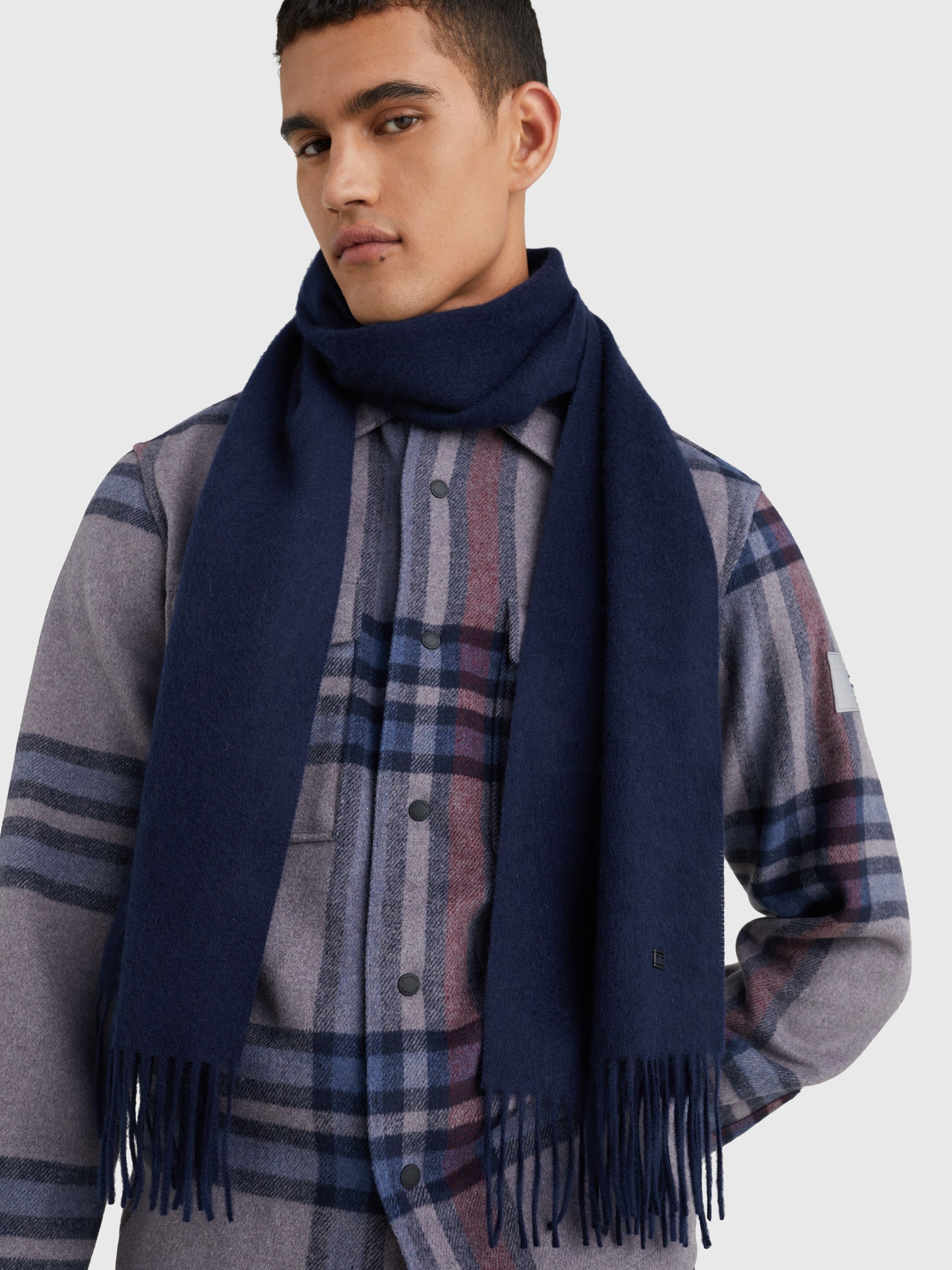 Give your neck a gentle hug with this luxurious pure cashmere scarf featuring ultra-soft yarns and a discreet Tommy Hilfiger flag plaque.