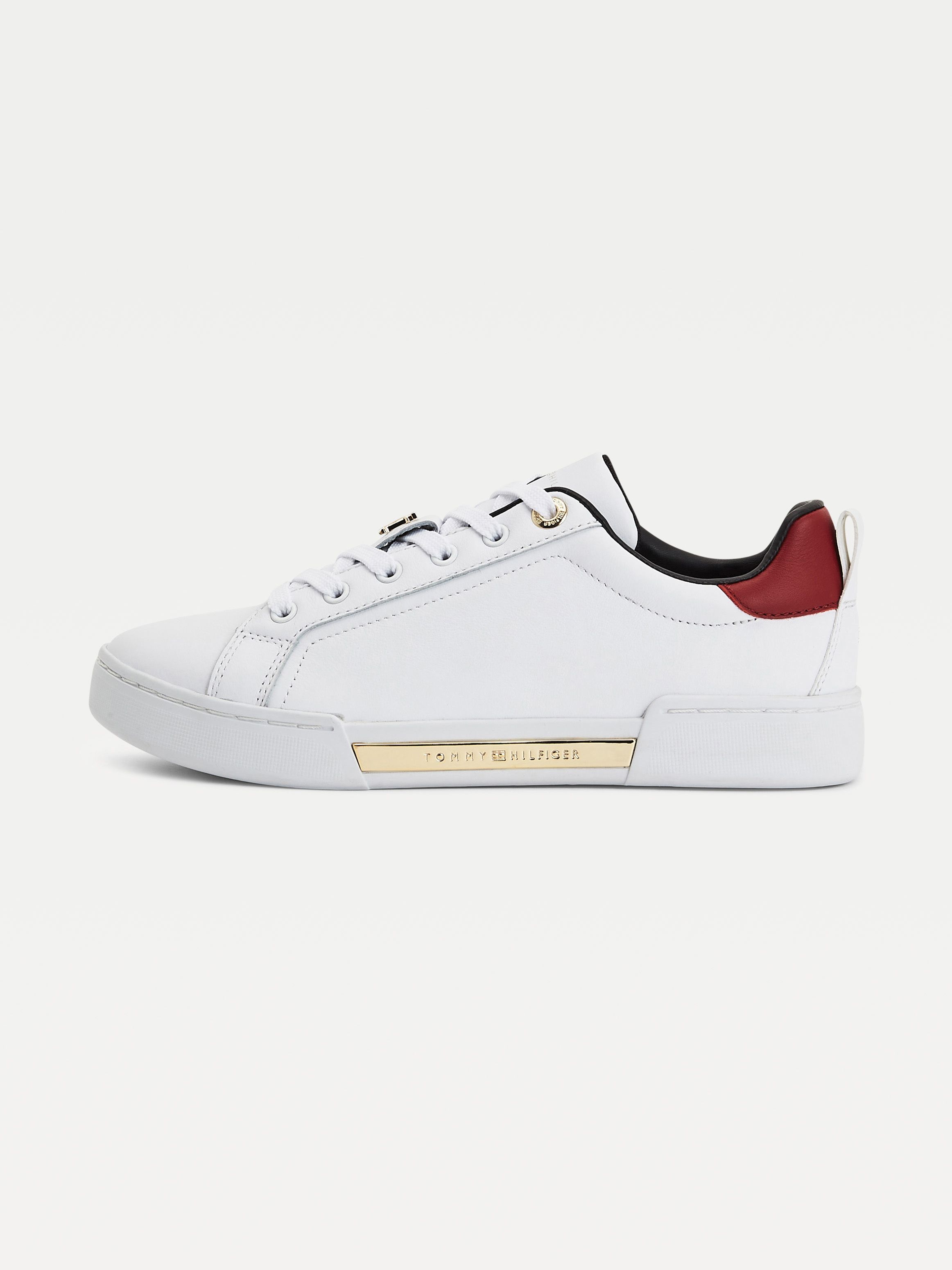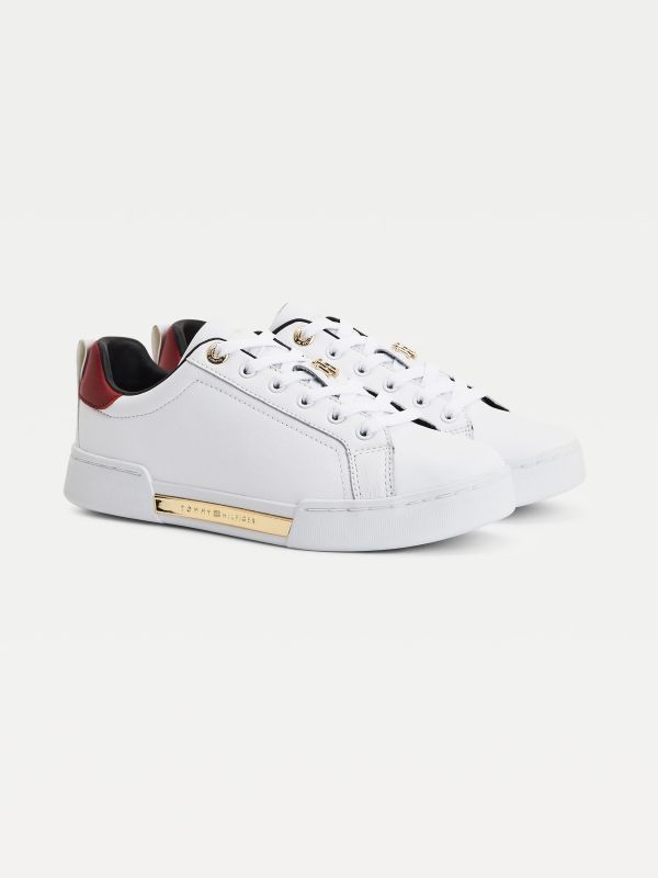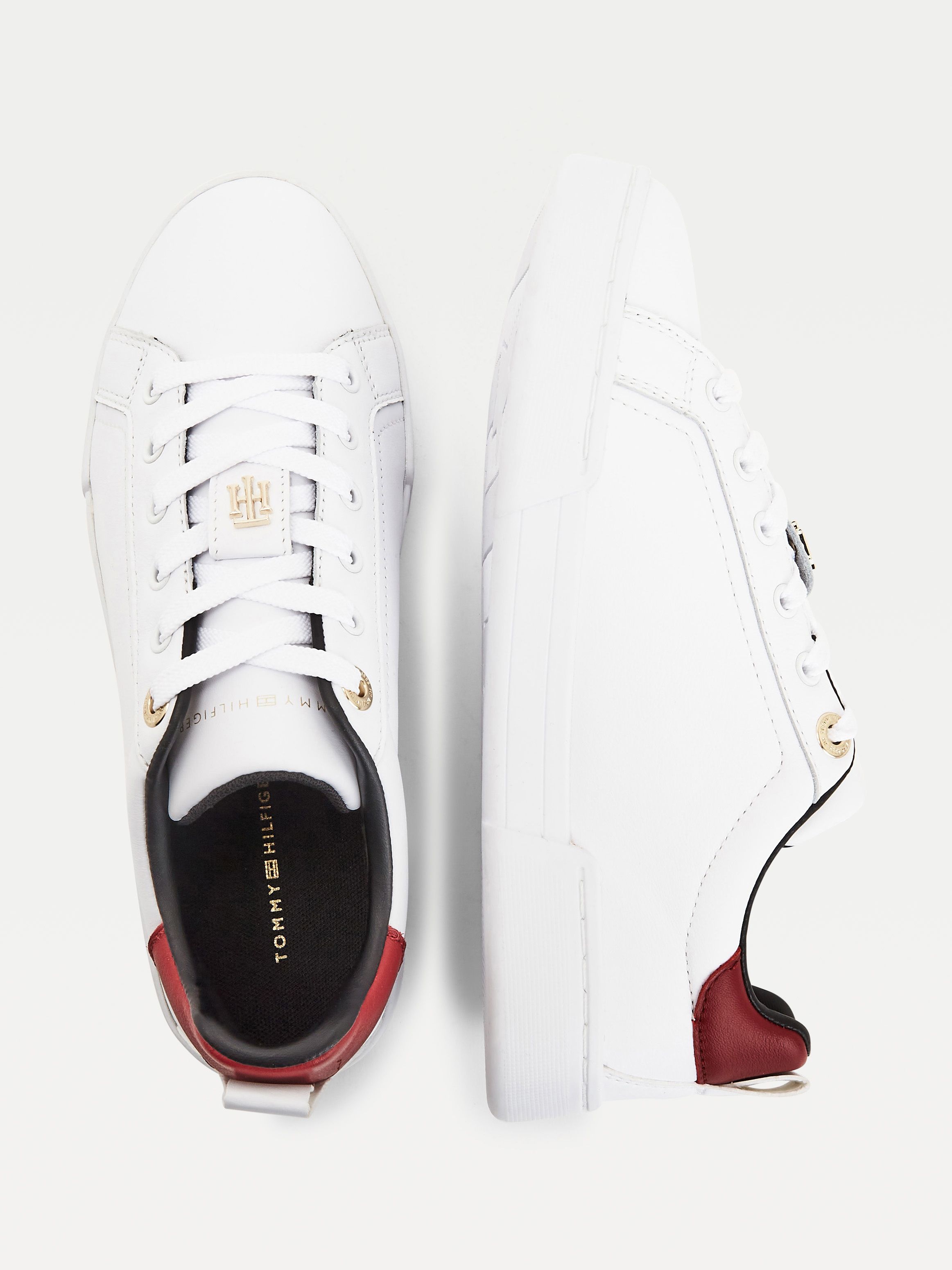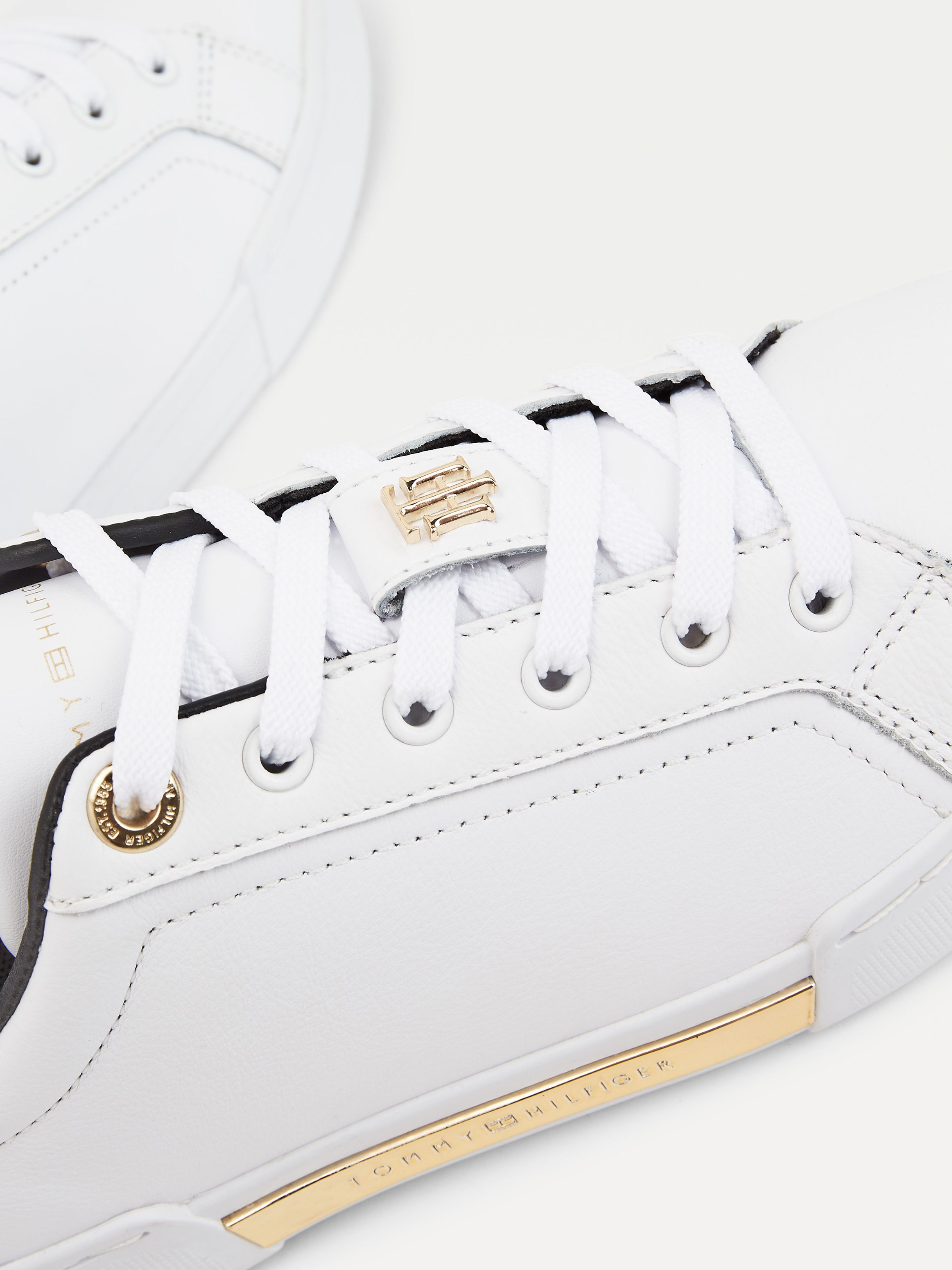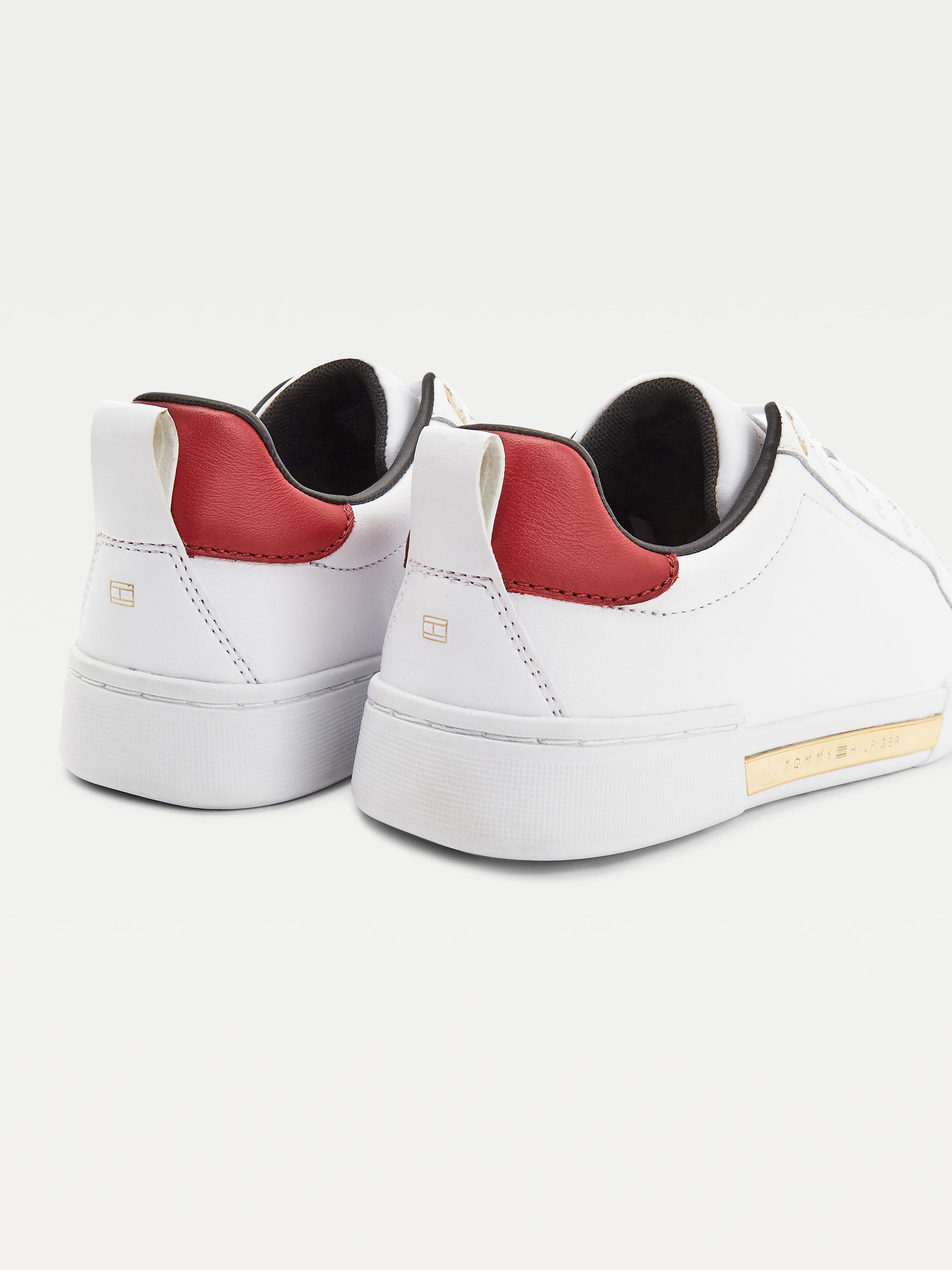 • Leather upper • Recycled polyester lining • Recycled polyurethane and polyurethane insock • Natural rubber outsole • Cupsole • TH monogram plaque on tongue • Tommy Hilfiger metal logo on outsole • Tommy Hilfiger branding • Tommy Hilfiger flag at heel