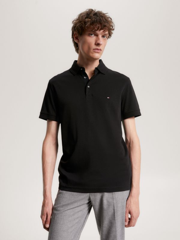 • Pure cotton interlock • Polo collar • Three-button placket • Stripe detailing on collar and cuffs • Tommy Hilfiger branding • Tommy Hilfiger flag embroidery on chest