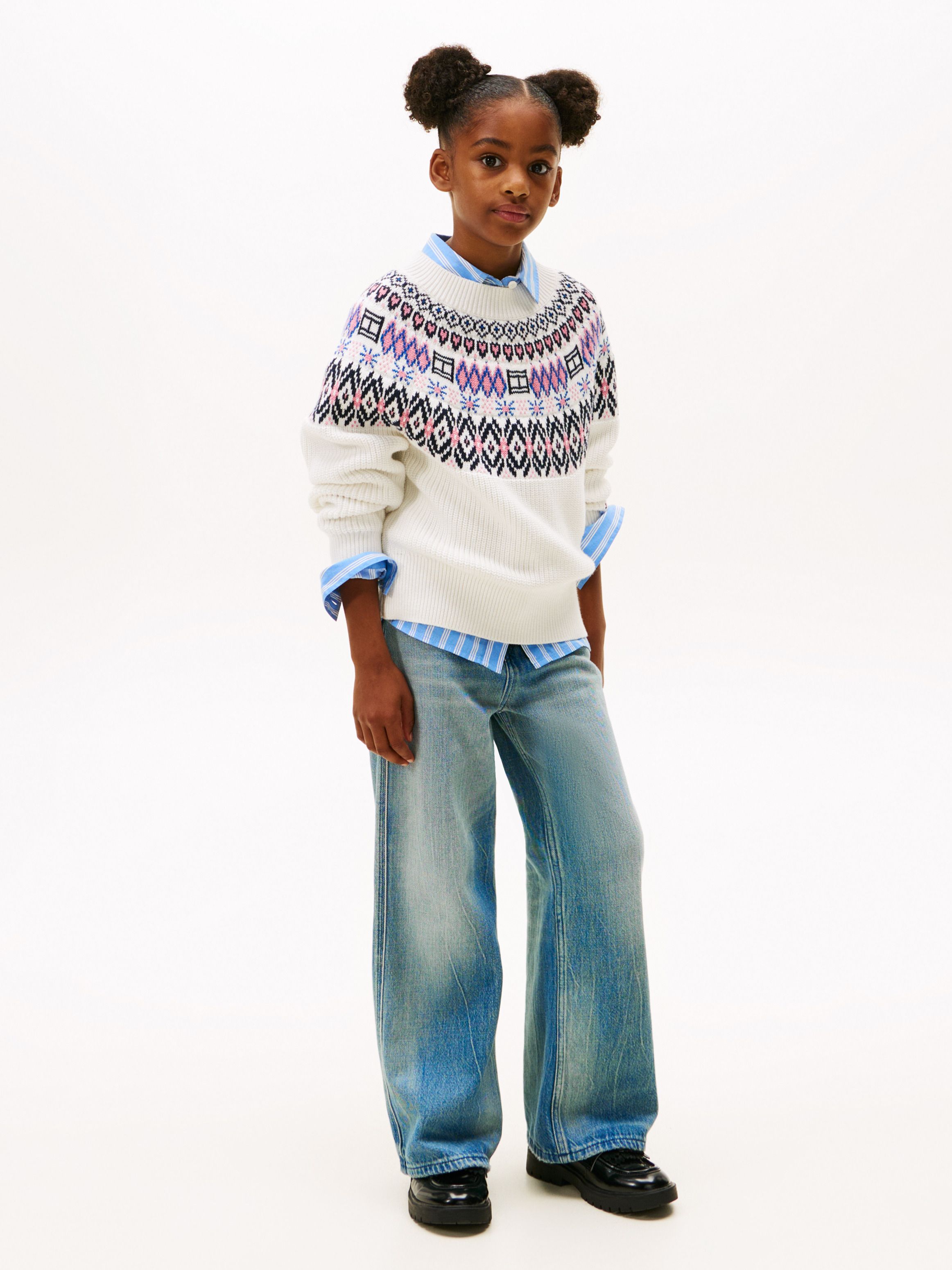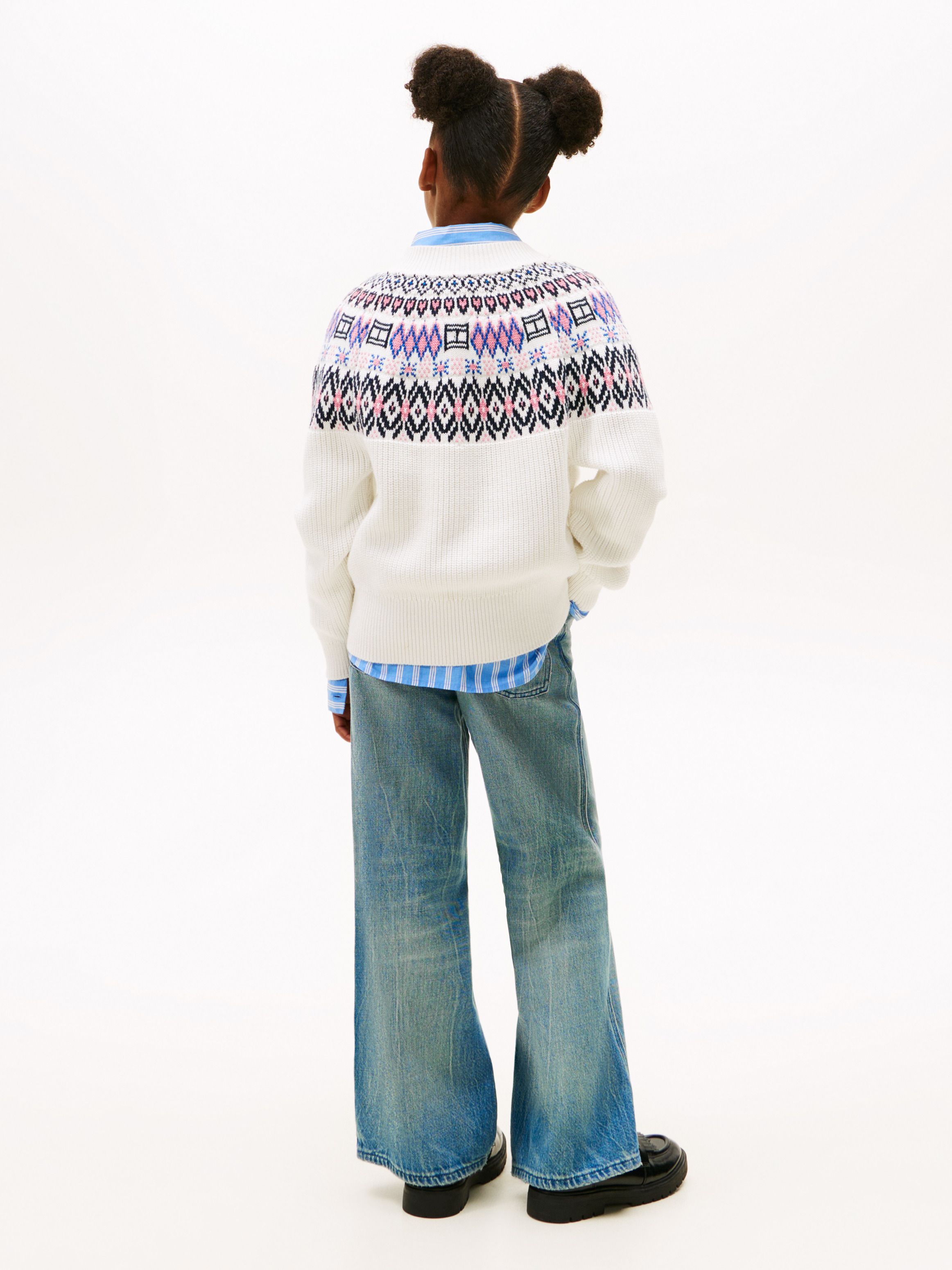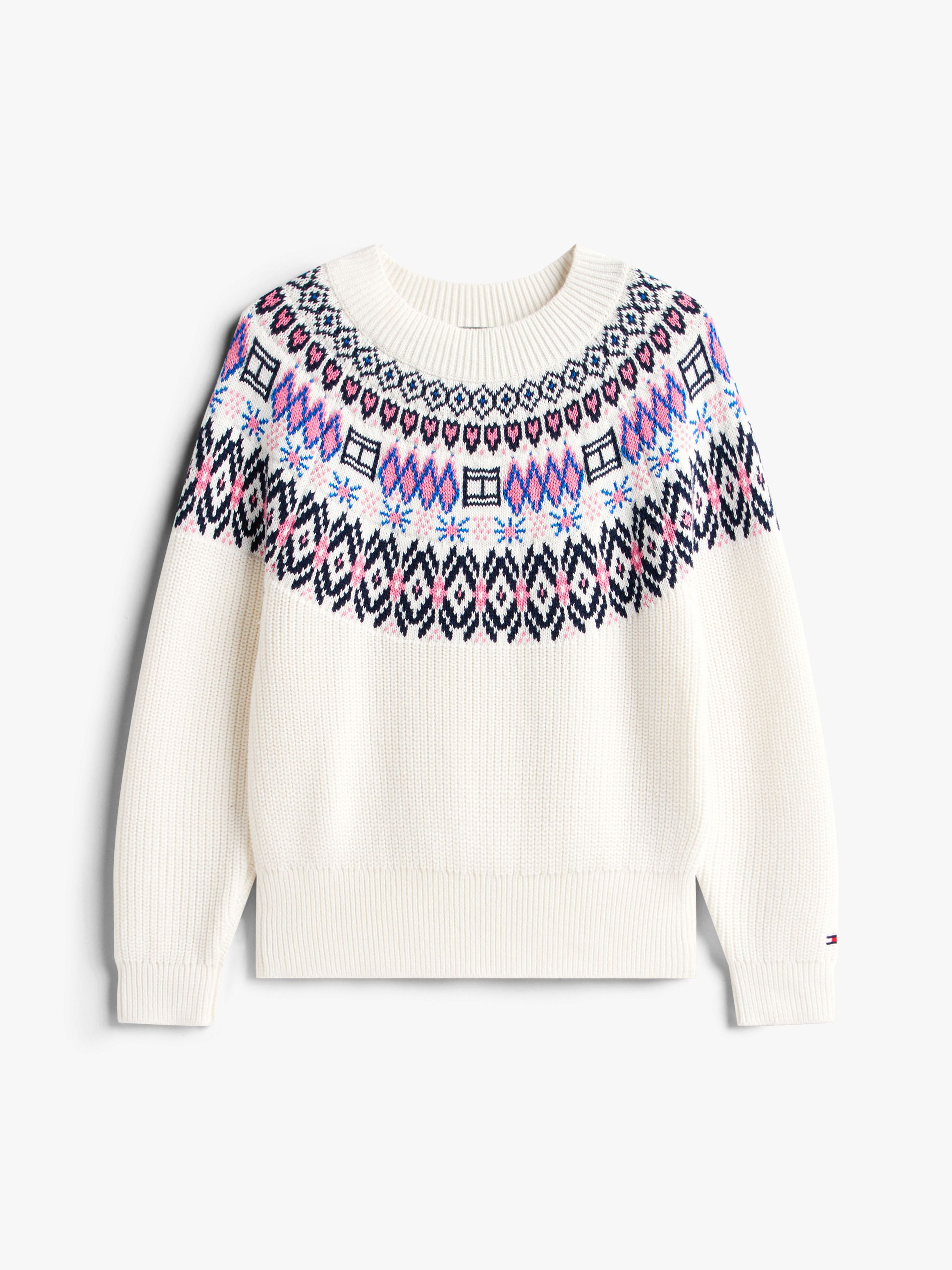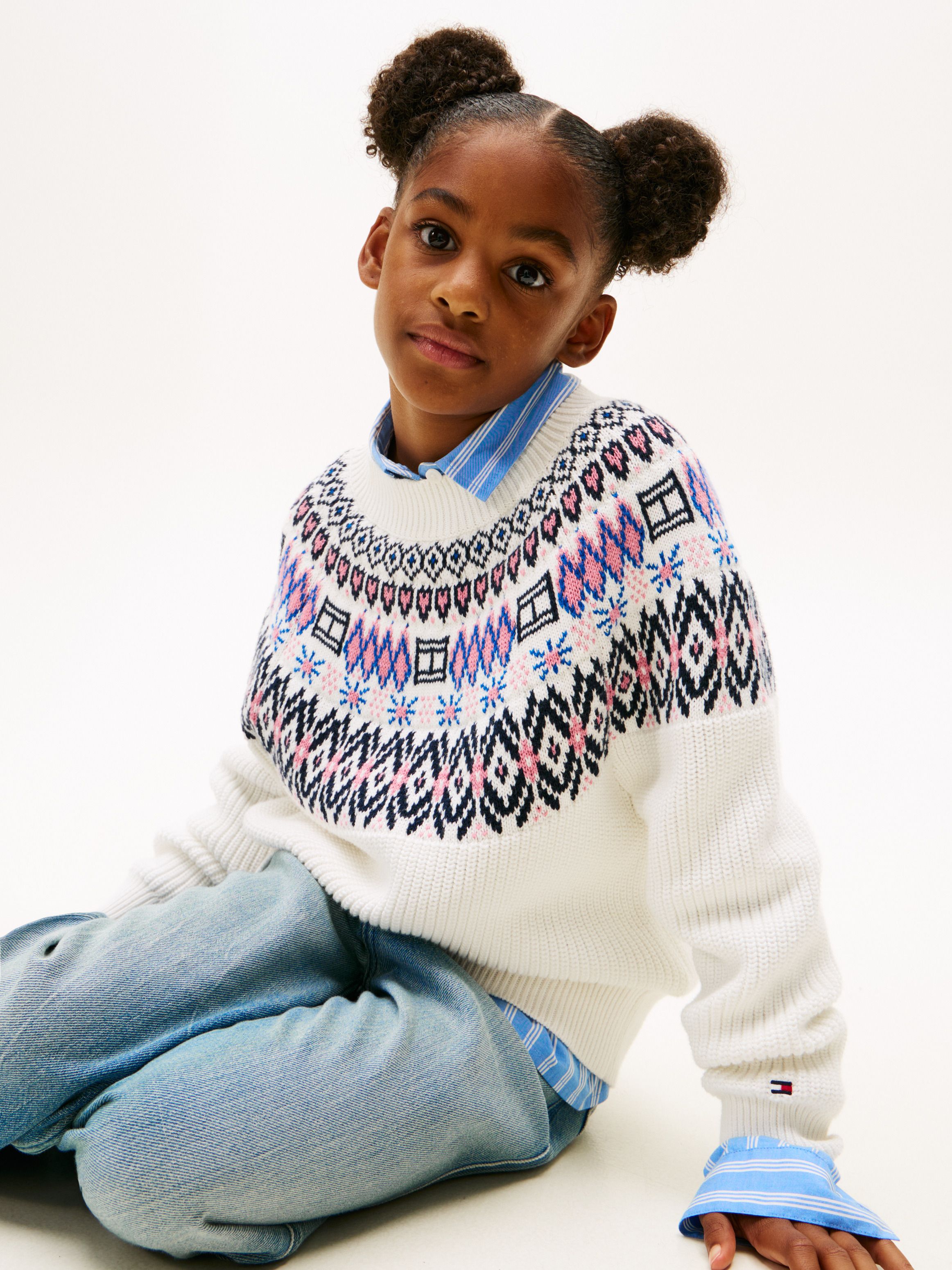 This pure combed cotton jumper features a classic Fair Isle pattern, making it a great choice for seasonal parties or cosy evenings.