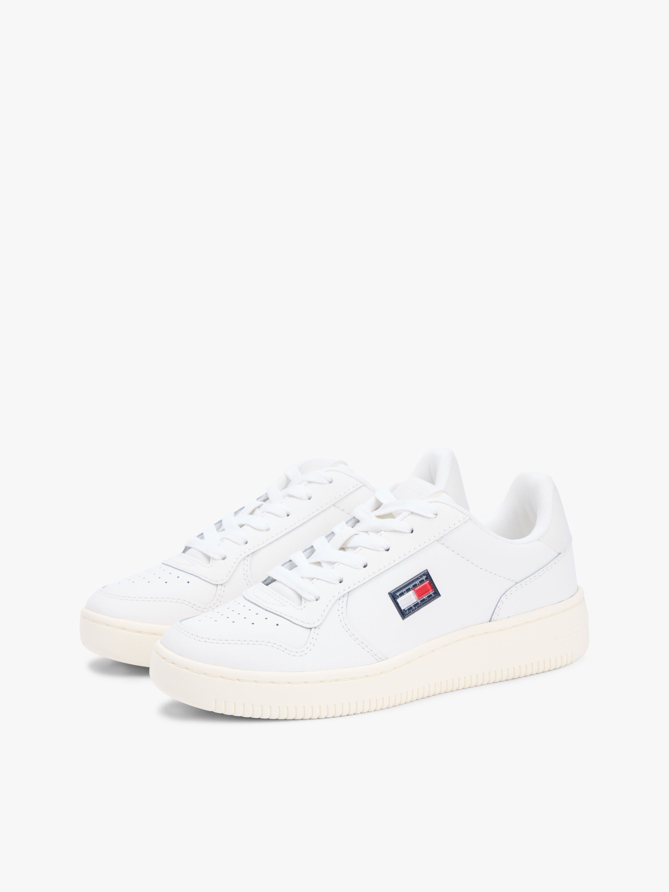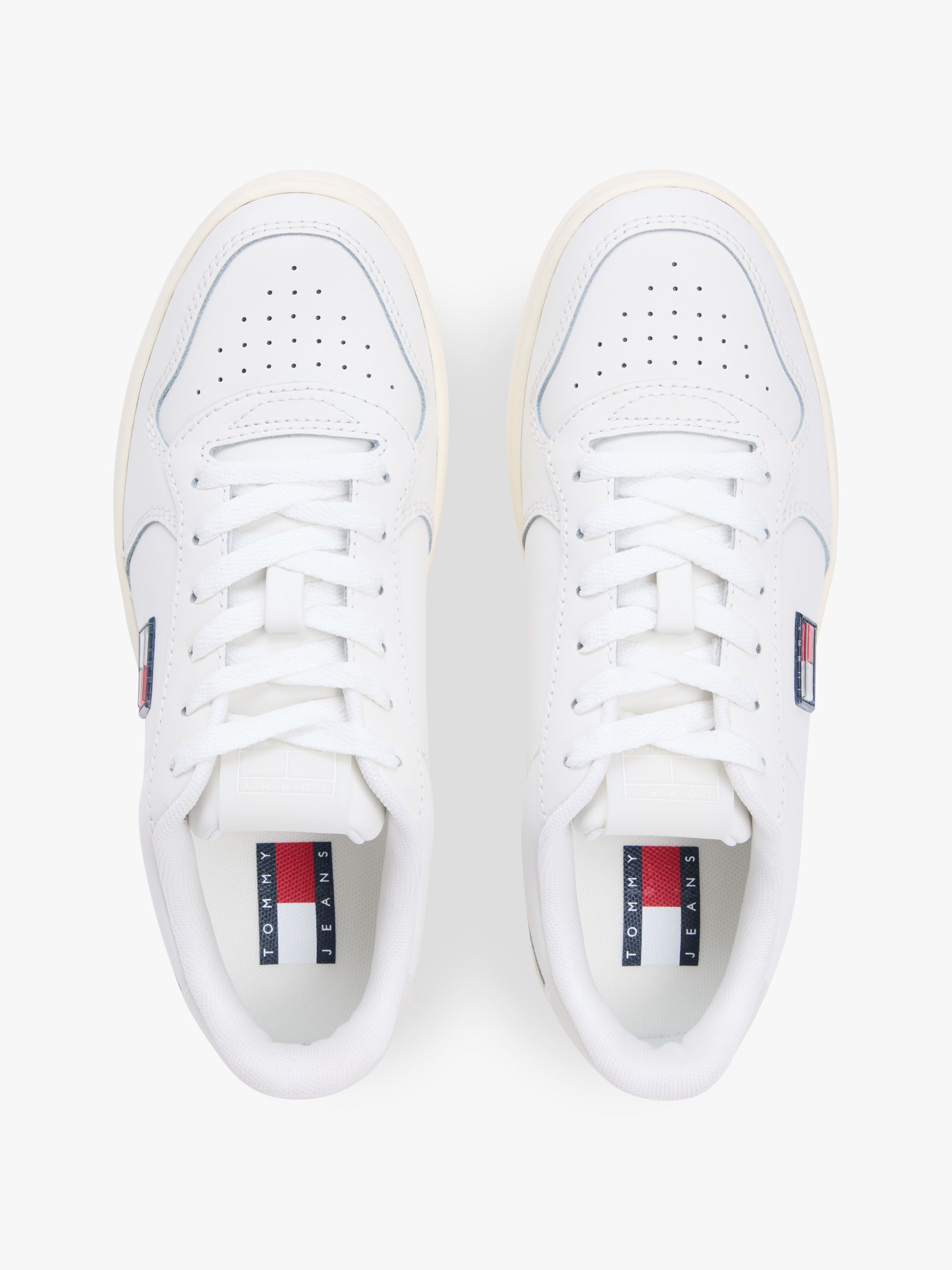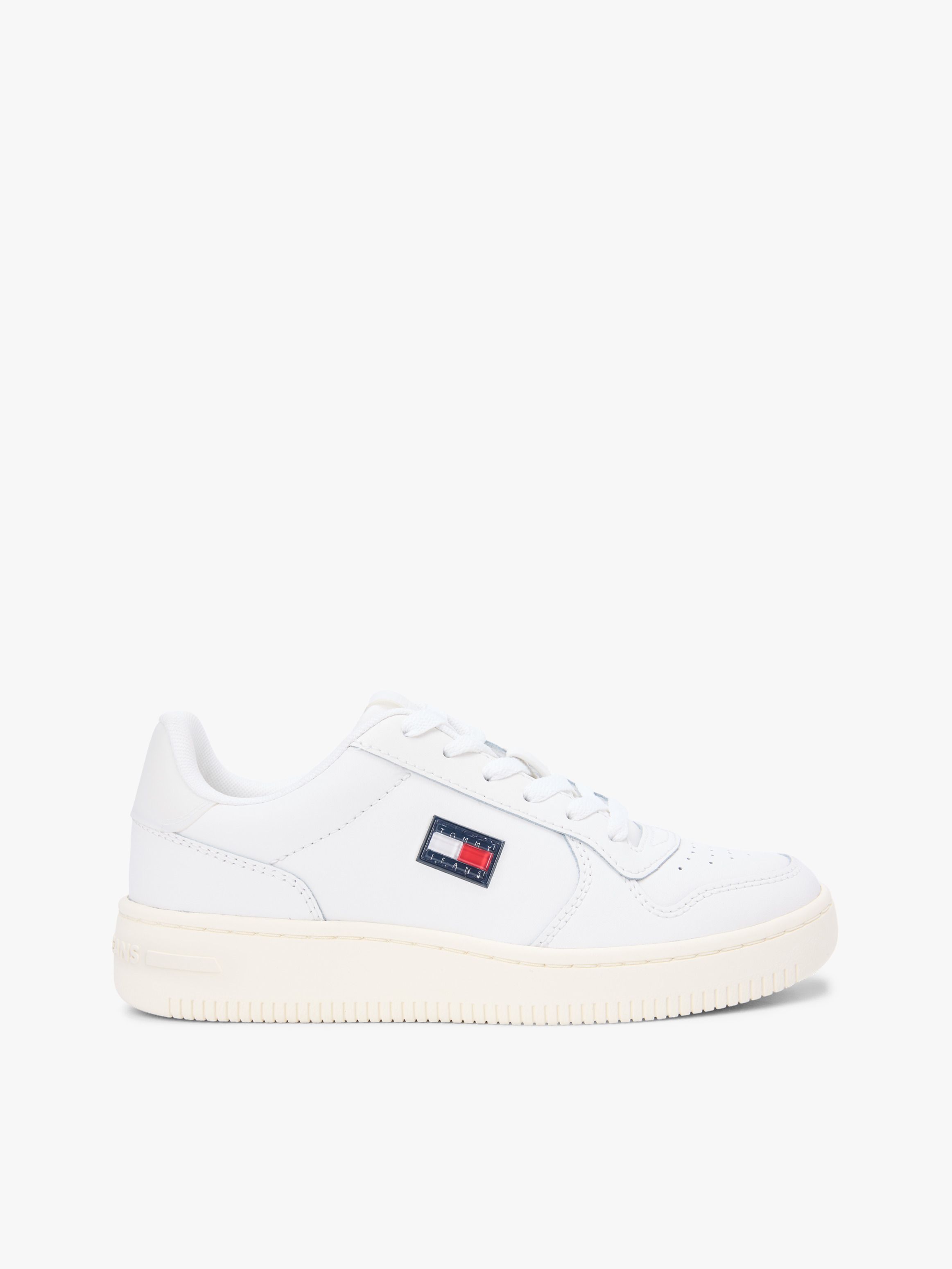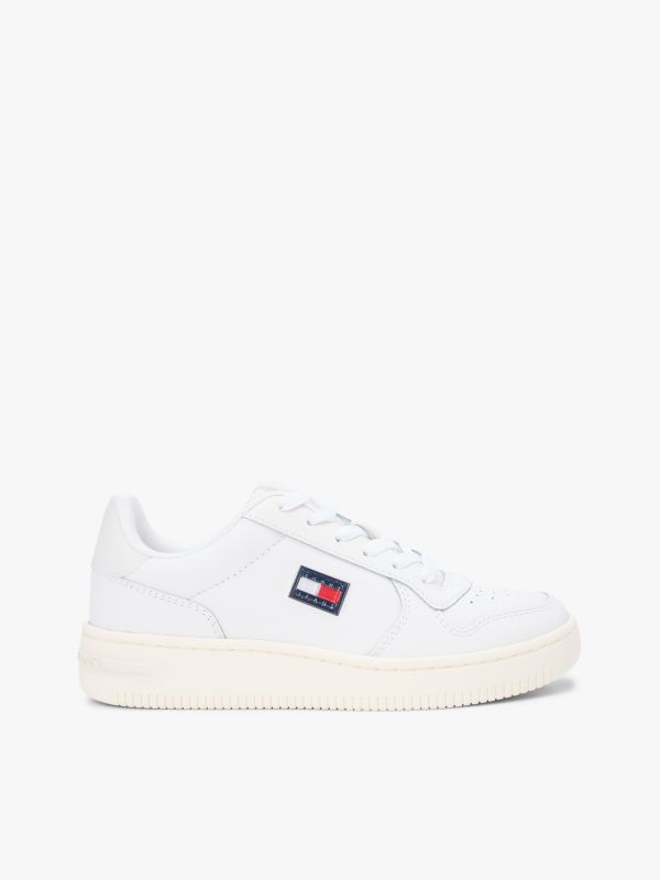These classic low-top basketball trainers are executed in coated leather, allowing the textured Tommy badge to really pop.