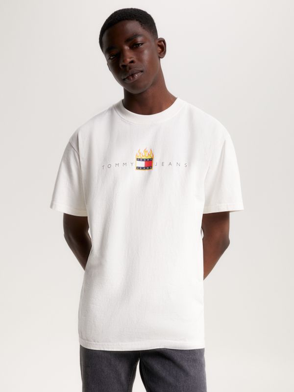 Give a nod to throwback style with this tee, featuring a laid-back fit and a retro, flame-adorned take on the iconic flag.