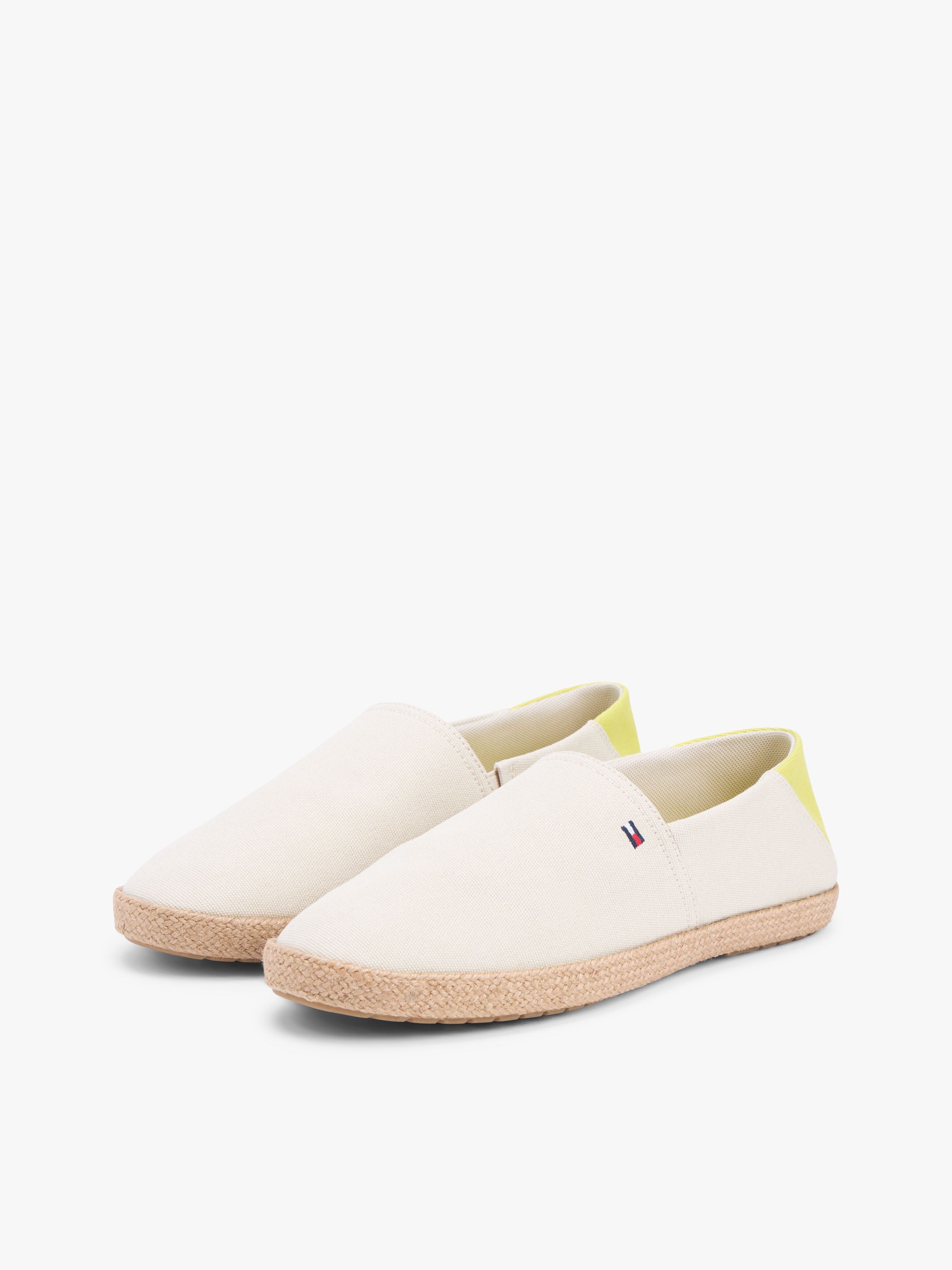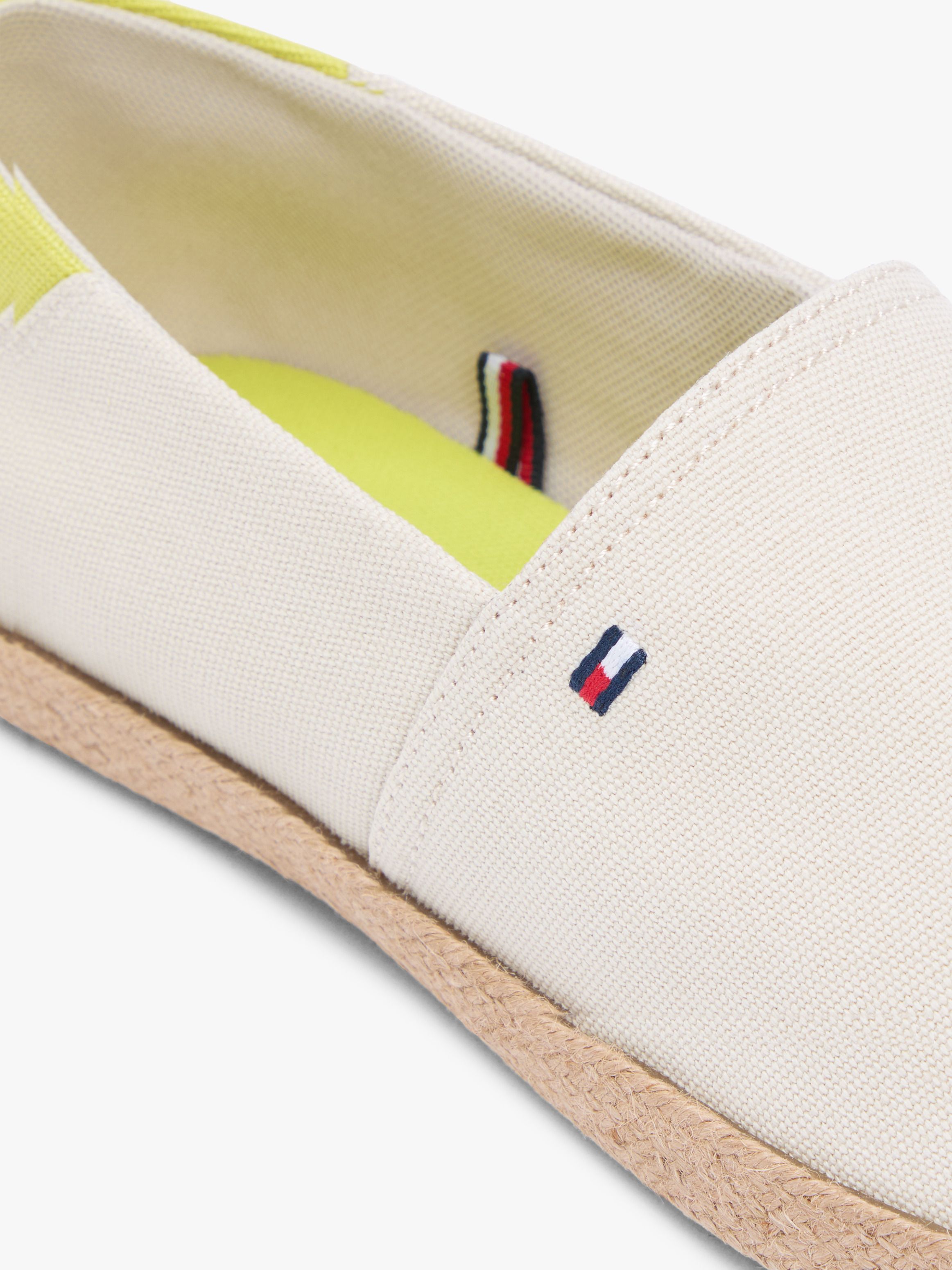 • Pure cotton canvas upper • Polyester lining • Polyurethane, other textiles and thermoplastic rubber insock • Thermoplastic rubber outsole • Jute-covered midsole • Contrast heel panel • Tommy Hilfiger branding • Tommy Hilfiger flag embroidery on side