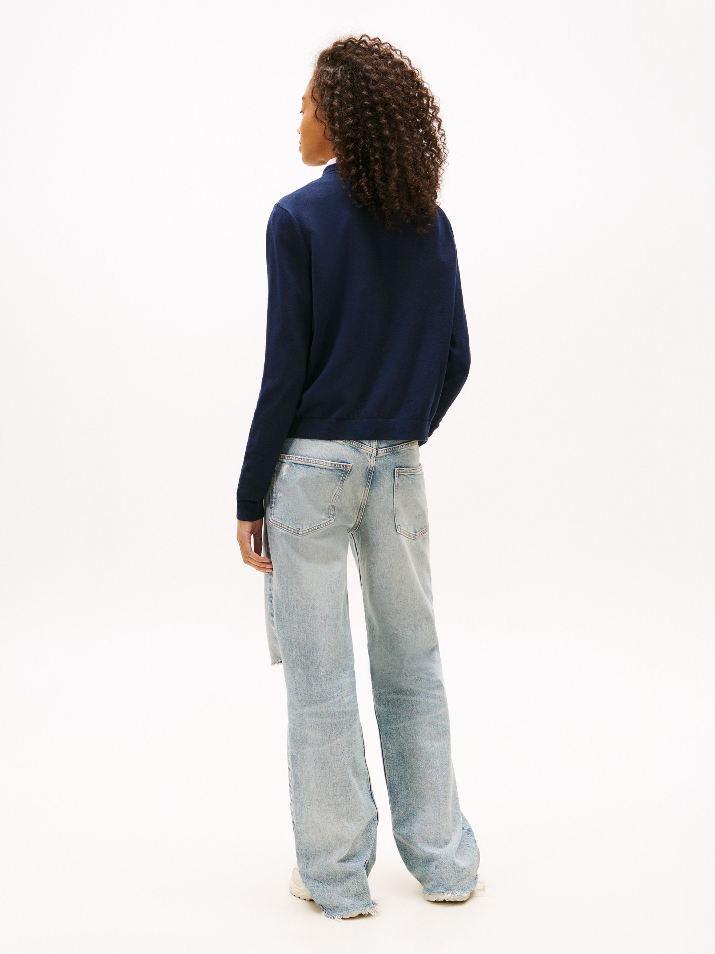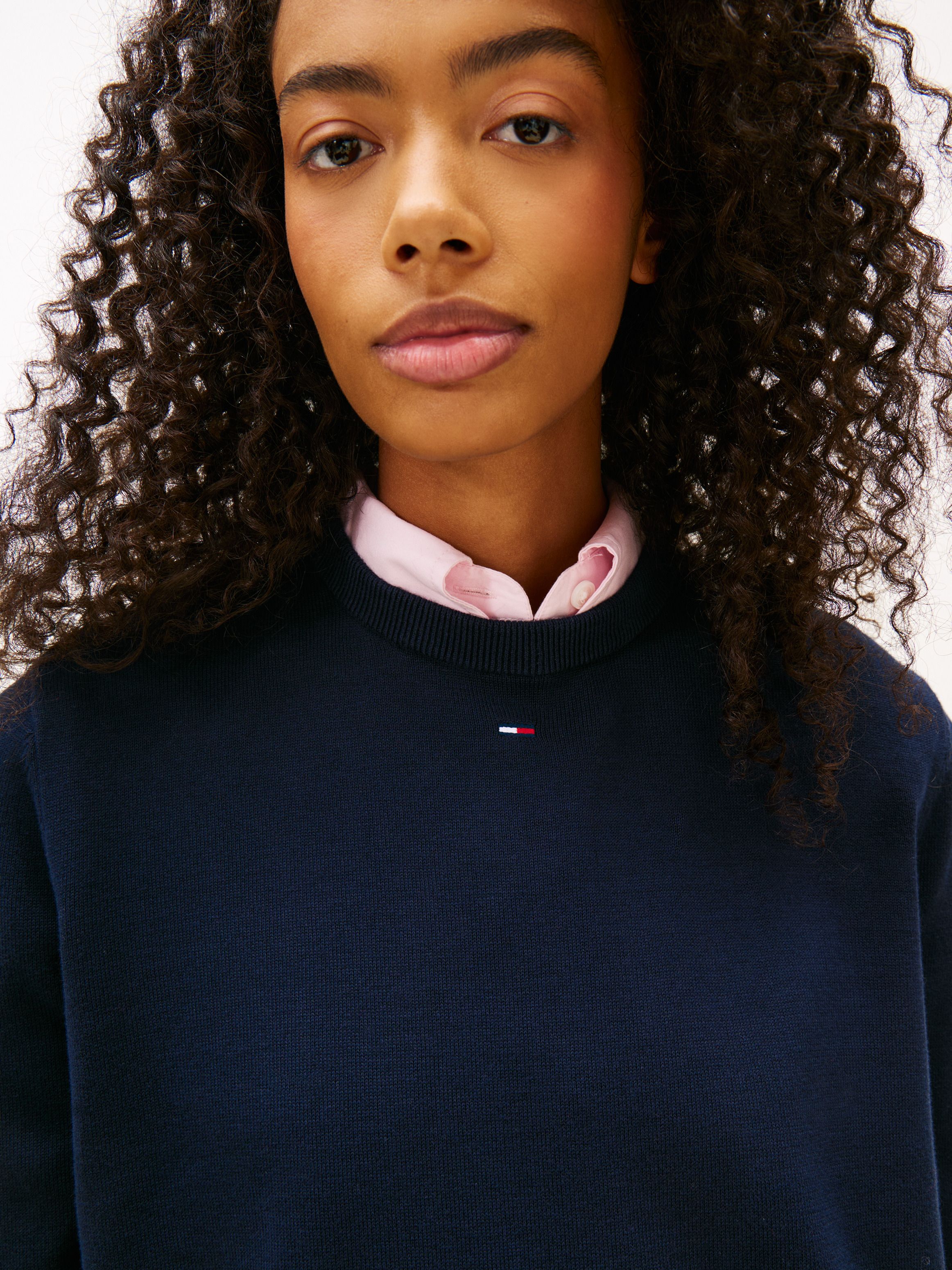 This versatile pure combed cotton jumper with a classic crew-neck design and central flag embroidery will quickly become a cold-weather favourite.