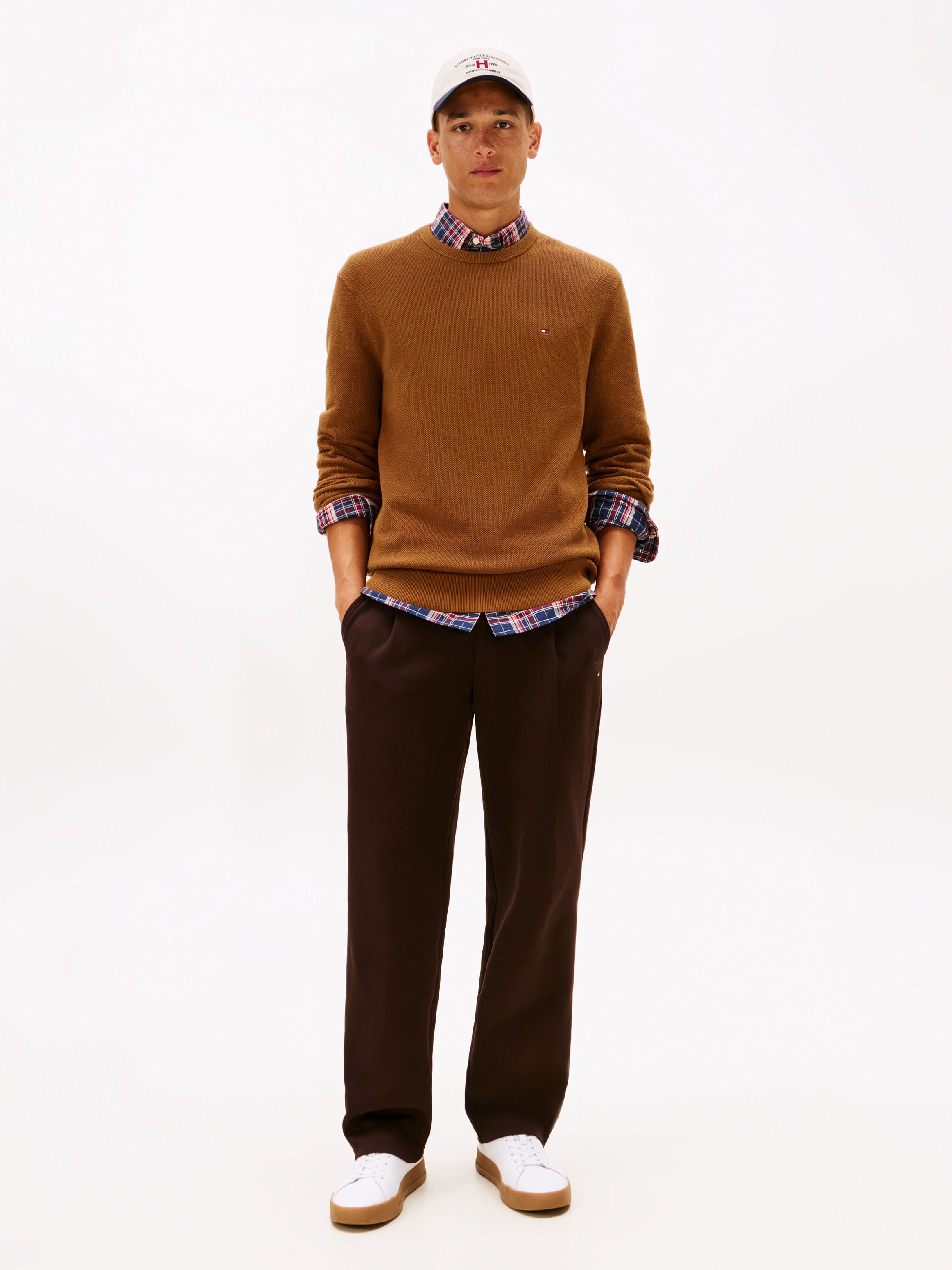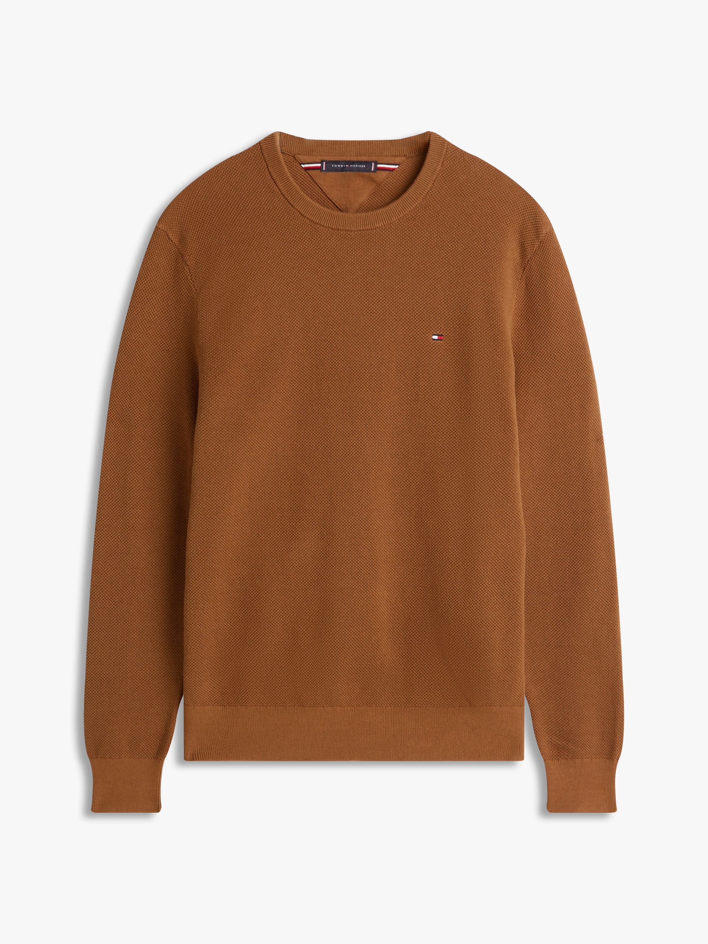 • Pure combed cotton • Textured knit • Crew neck • Rib-knit collar, cuffs and hem • Signature tape inside neckline • Tommy Hilfiger branding • Tommy Hilfiger flag embroidery on chest