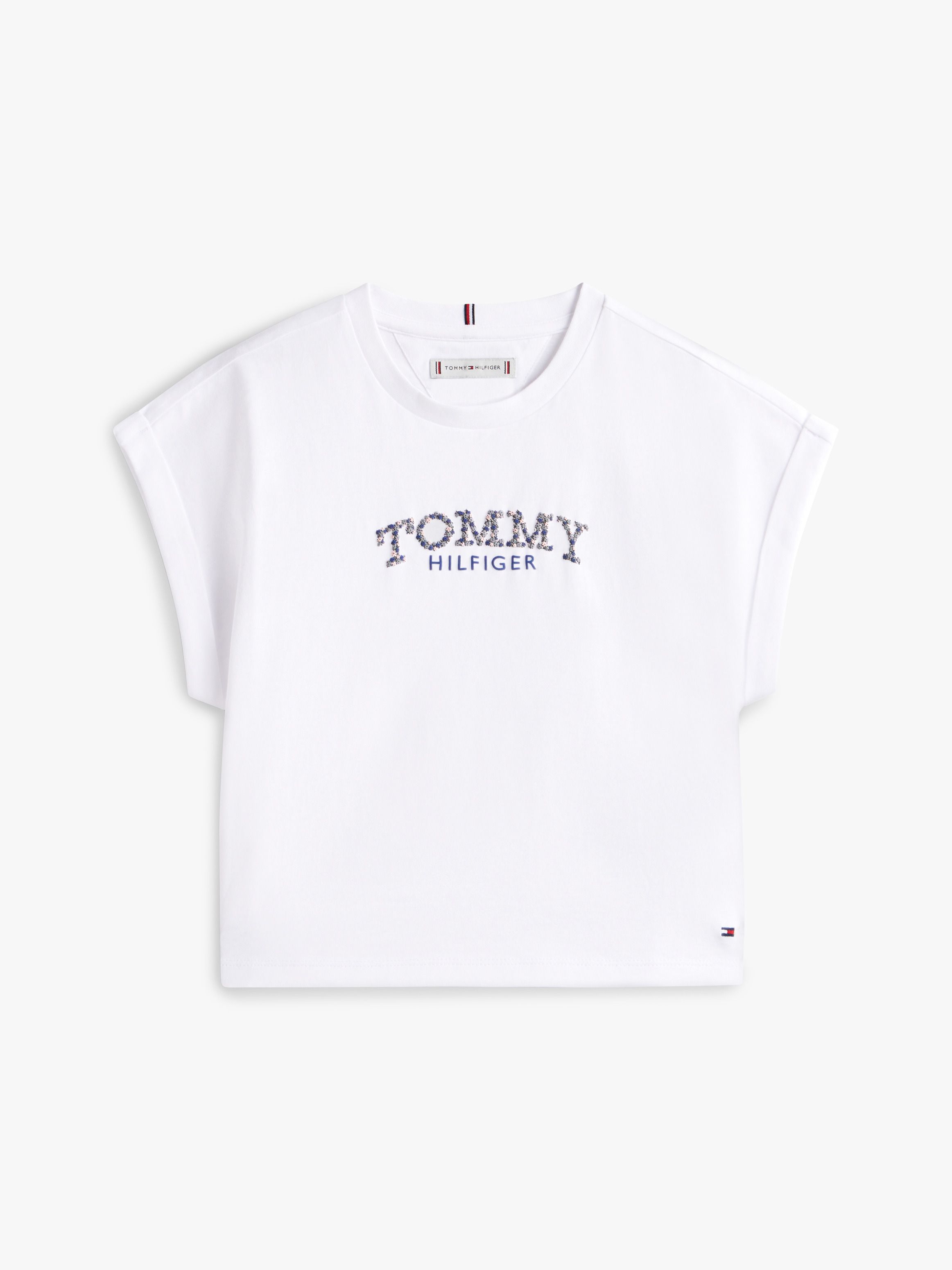 • Pure cotton jersey • Yarn dyed • Crew neck • Signature tape on nape • Tommy Hilfiger floral logo on chest • Tommy Hilfiger branding • Tommy Hilfiger flag embroidery on sleeve