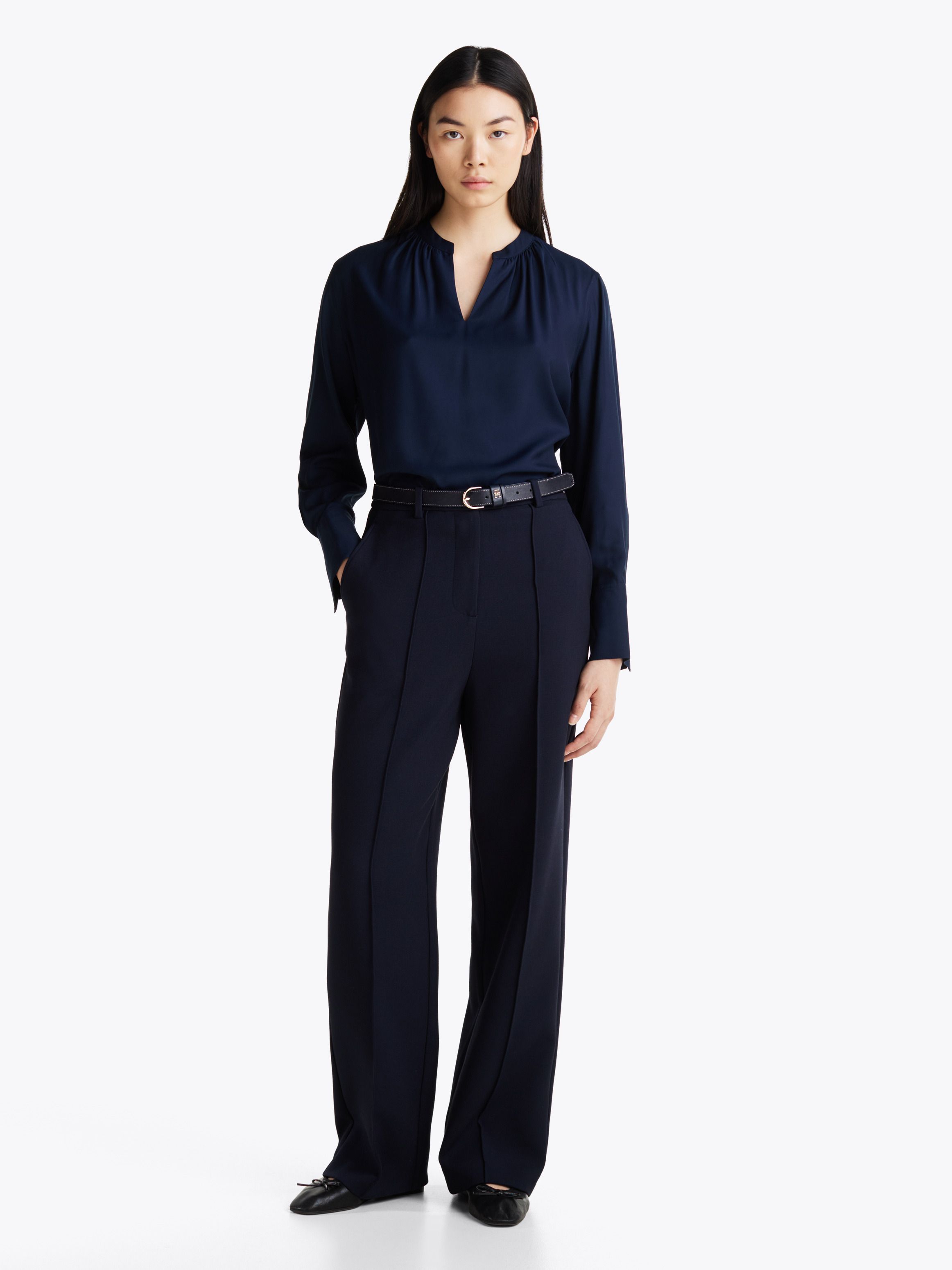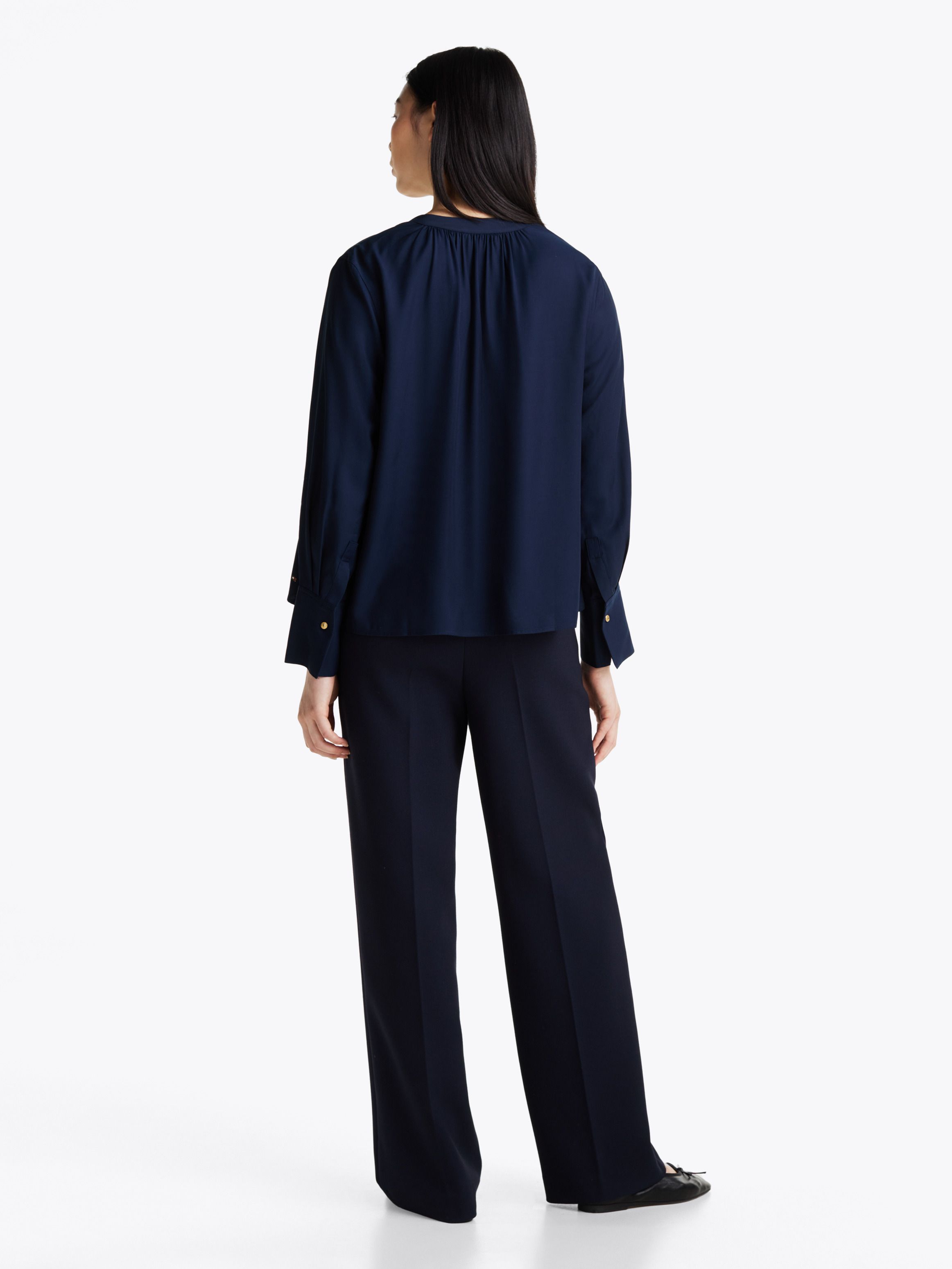 You can dream up a variety of event-ready outfits with this flattering V-neck blouse, featuring deep cuffs for an elegantly smart finish.