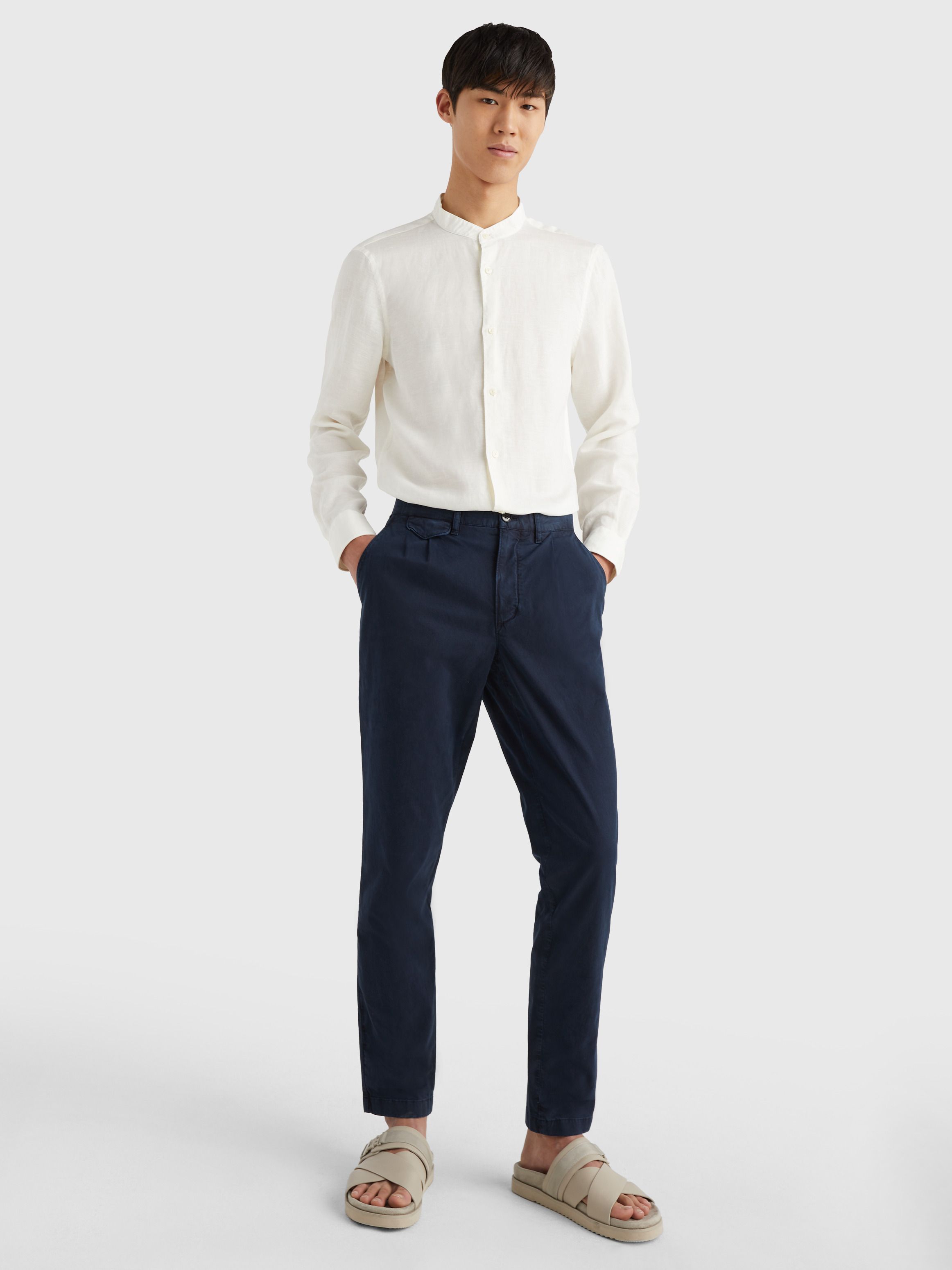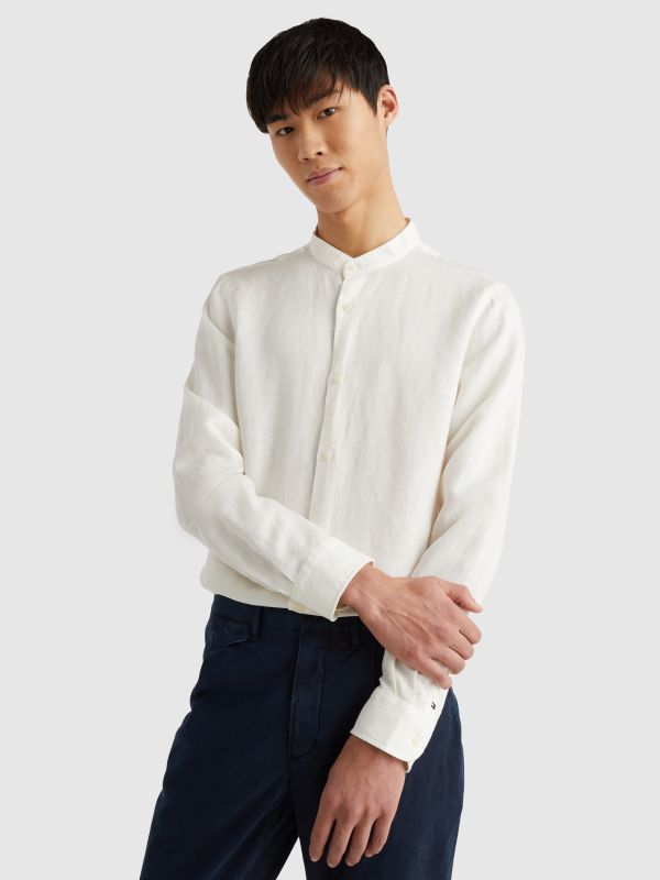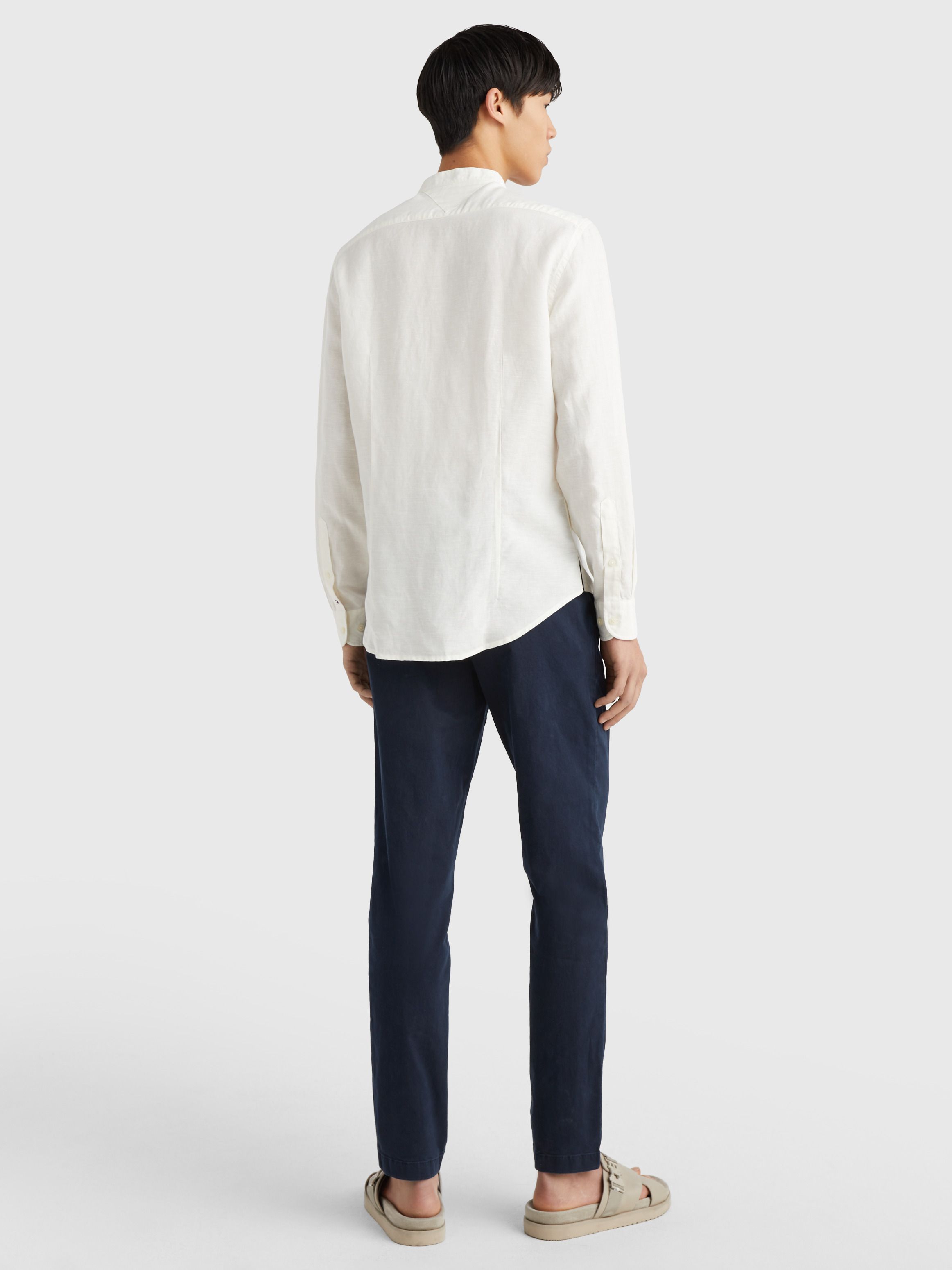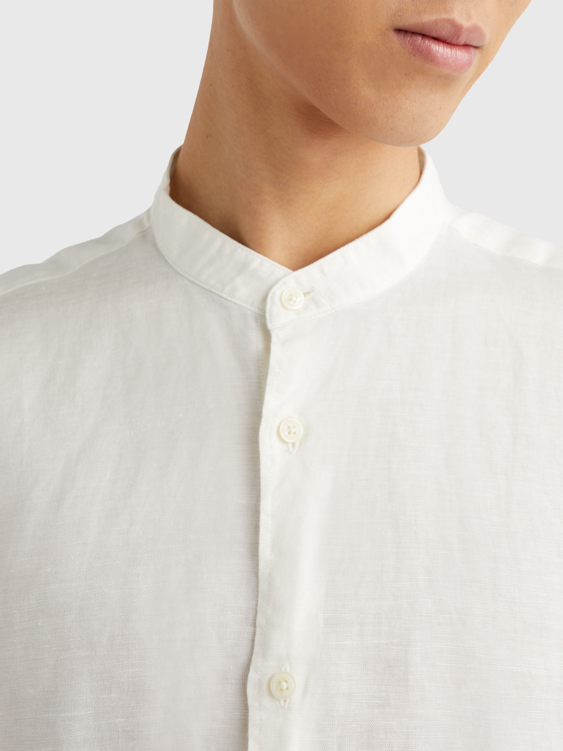 For a smart look with a laidback feel, choose this grandad-collar shirt crafted from a breathable linen blend poplin.