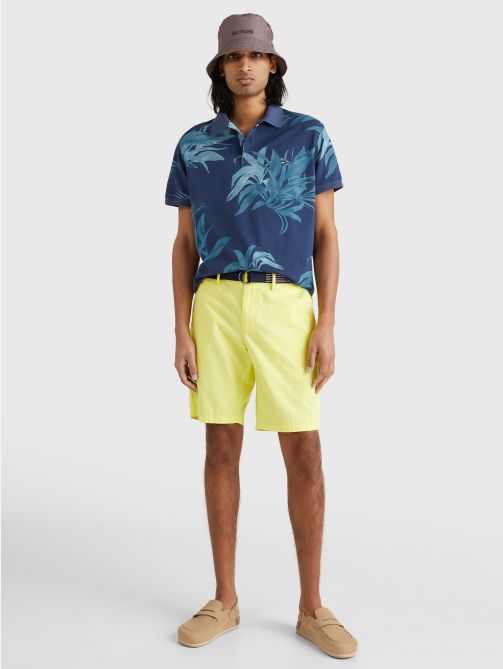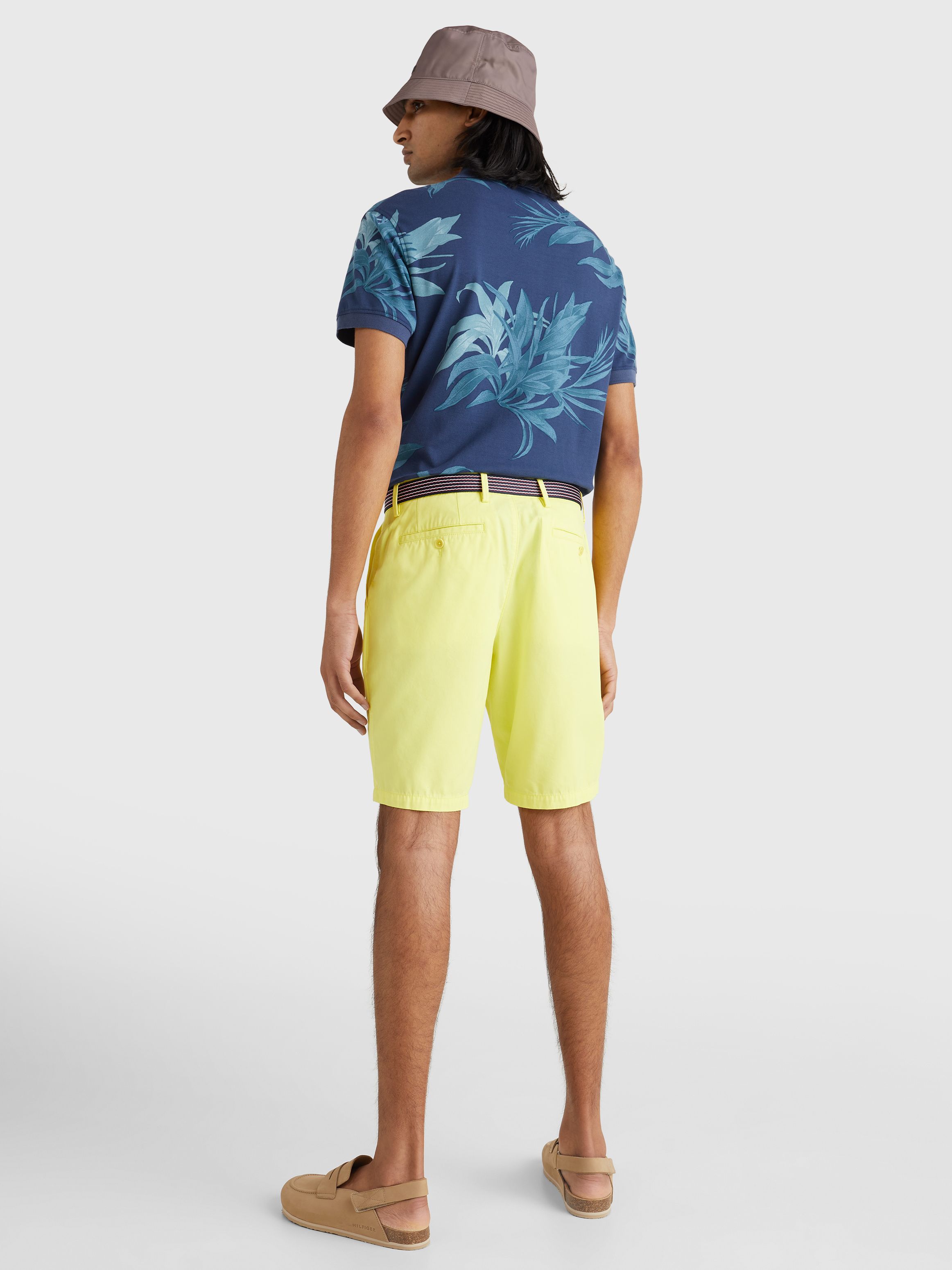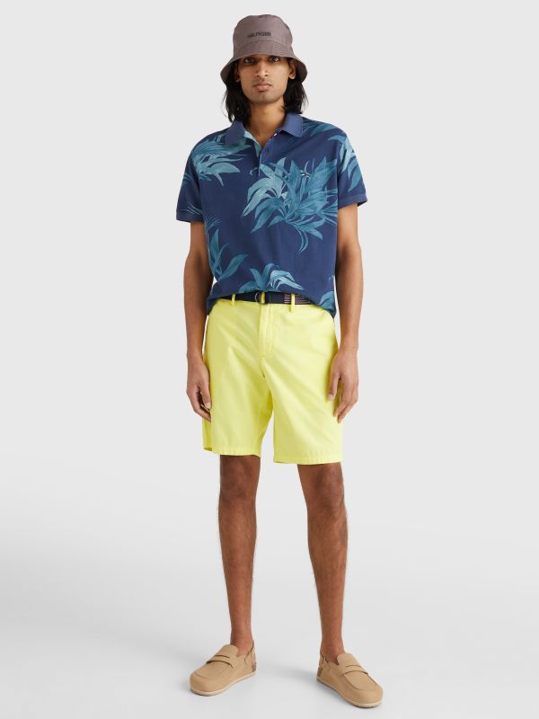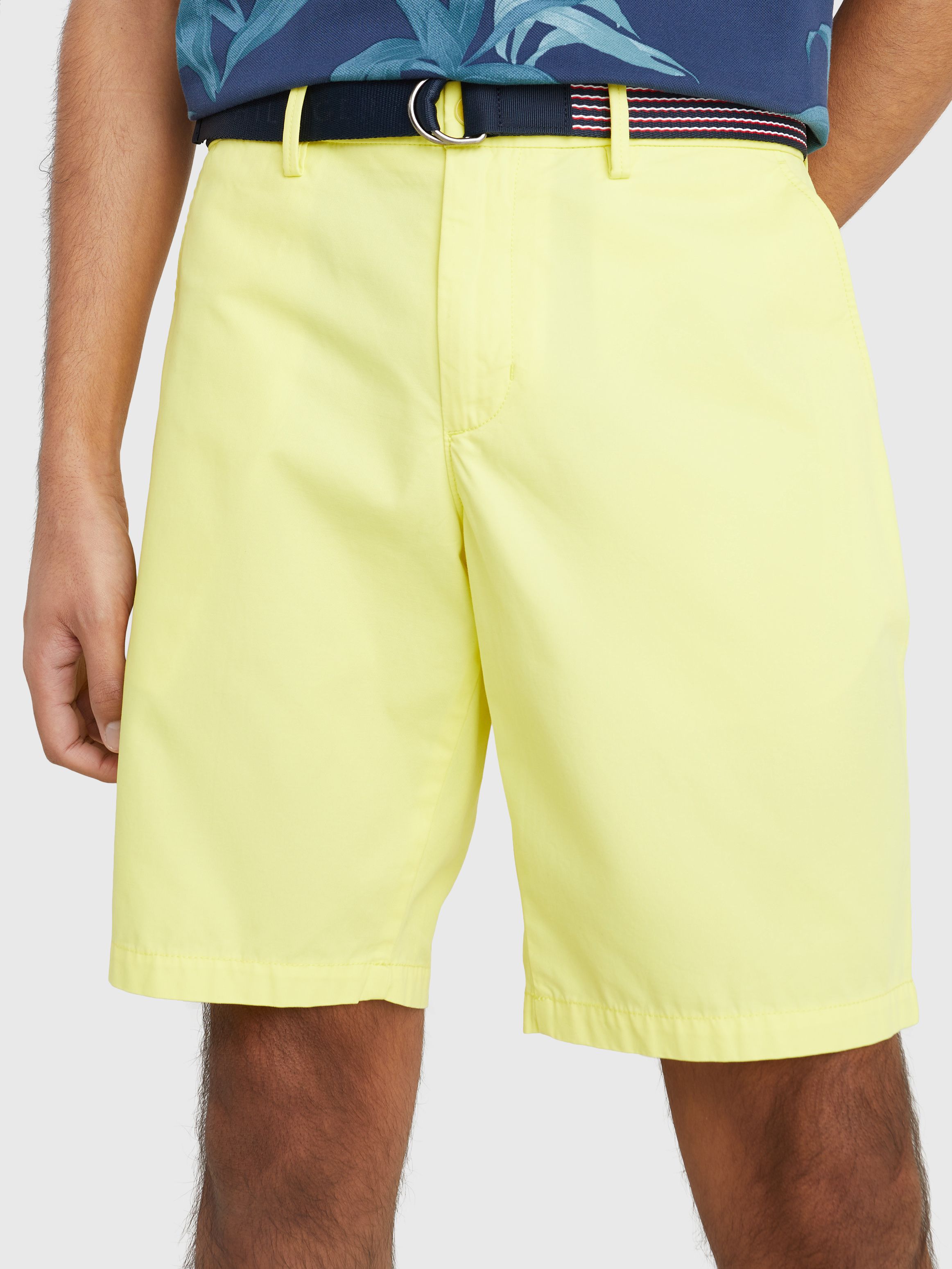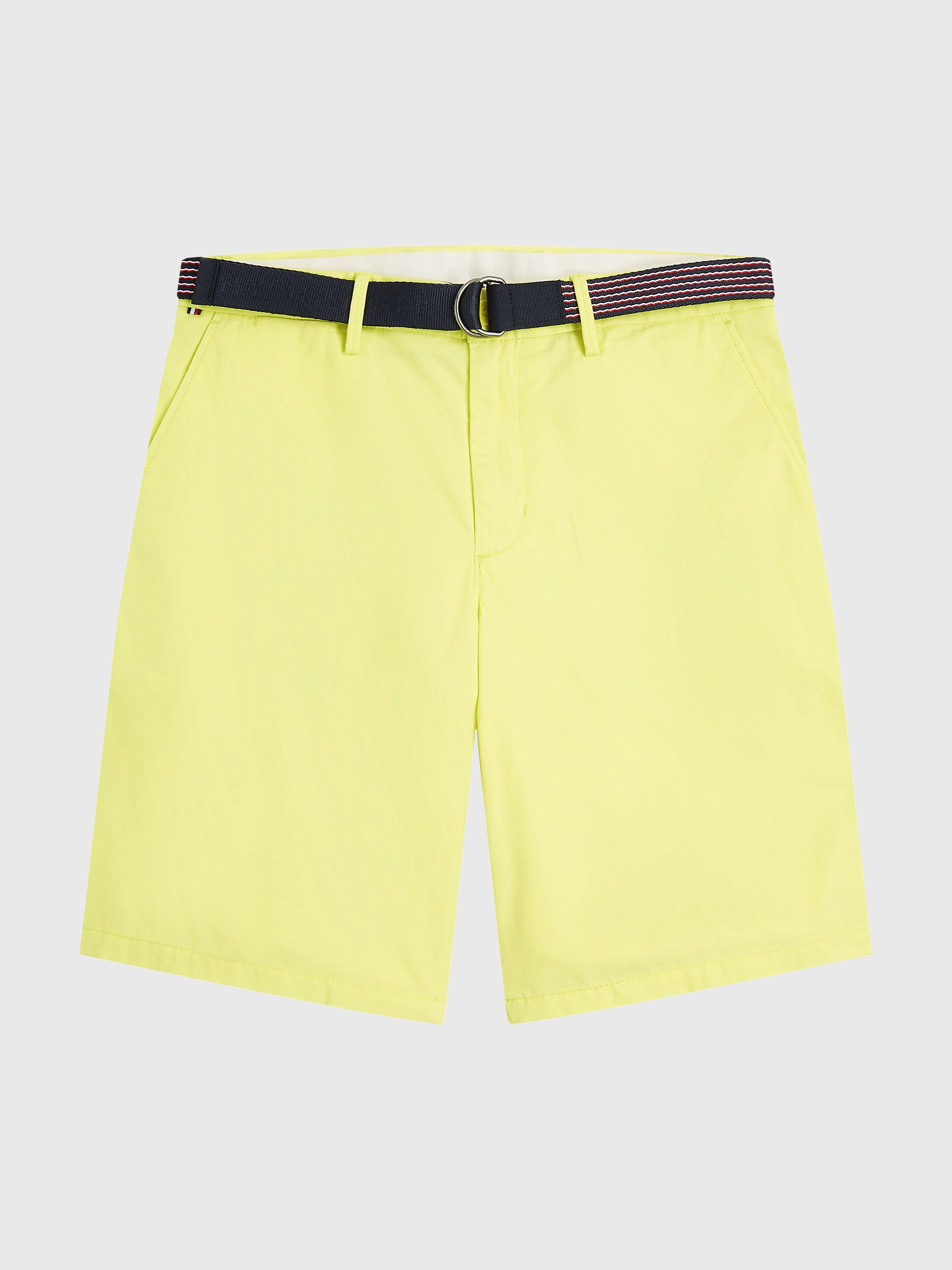 • Pure cotton twill • Belted waist • Zip with button closure • Two side slip pockets • Two back buttoned pockets • Signature tape on belt • Tommy Hilfiger branding • Tommy Hilfiger flag embroidery at back