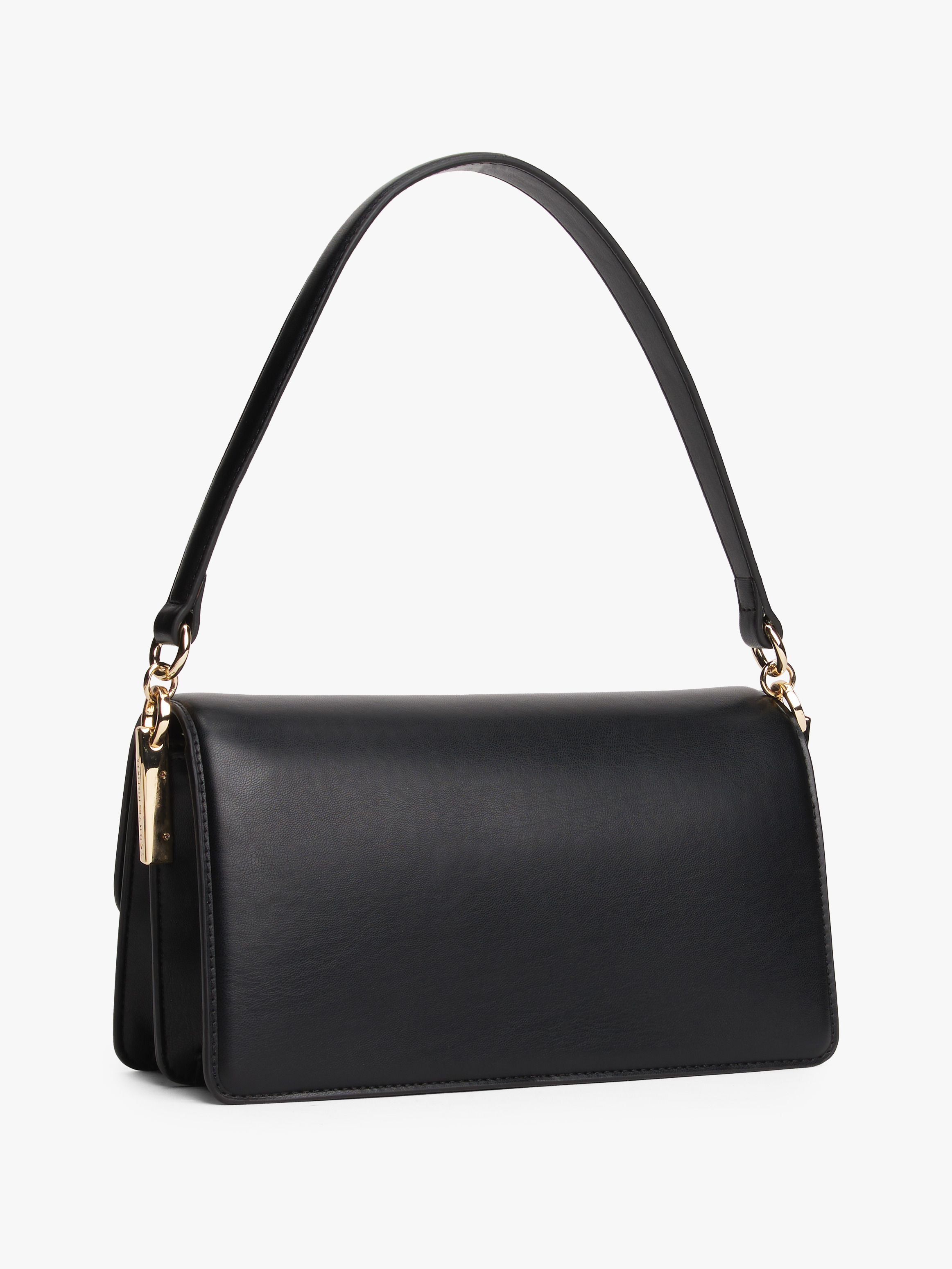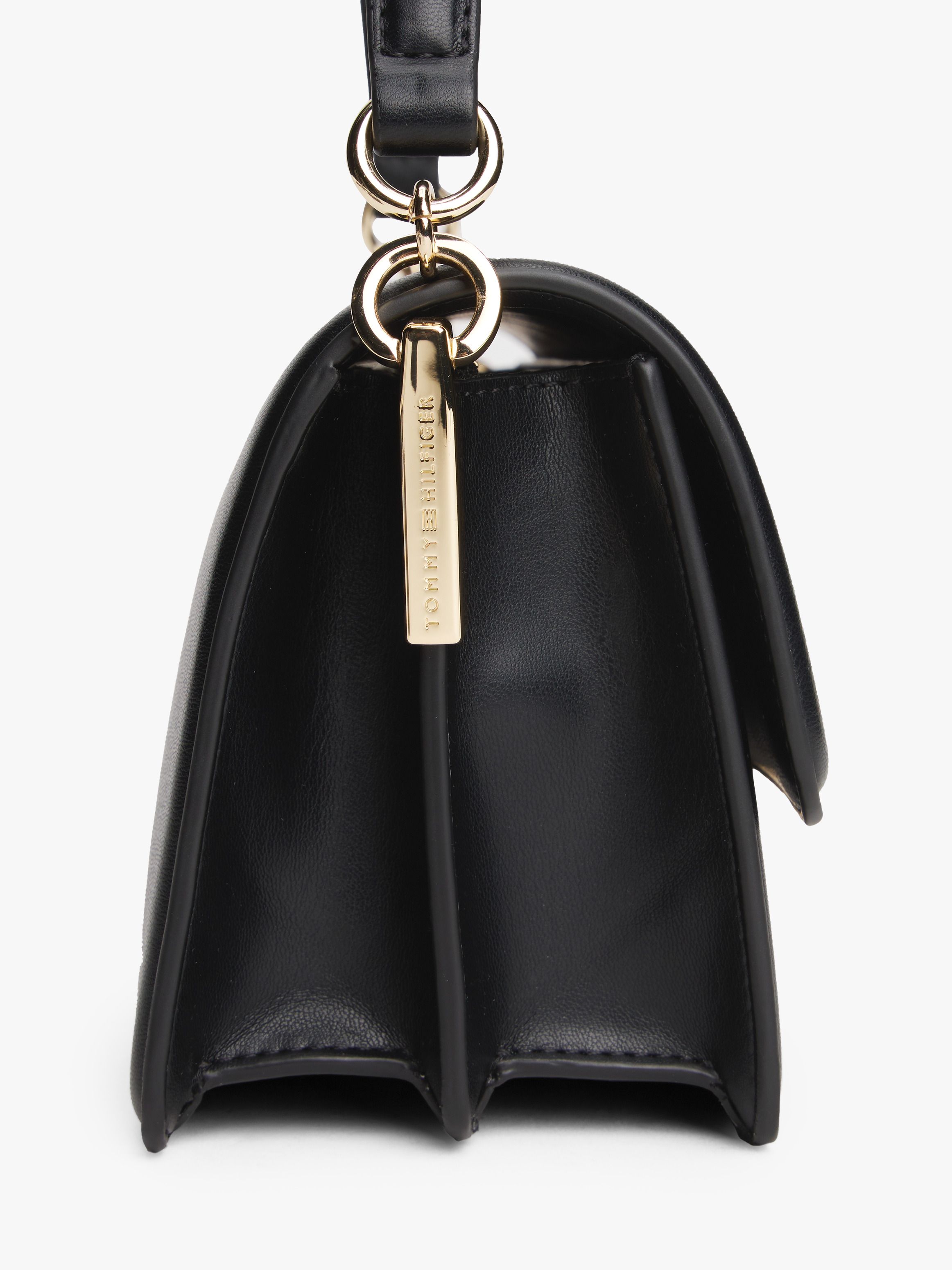• Smooth finish • Metal hardware on closure and sides • Magnetic flap closure • Shoulder strap • Removable crossbody strap • Two interior compartments • Two interior zipped pockets • Tommy Hilfiger logo debossed on hardware • TH monogram debossed on closure • Tommy Hilfiger branding