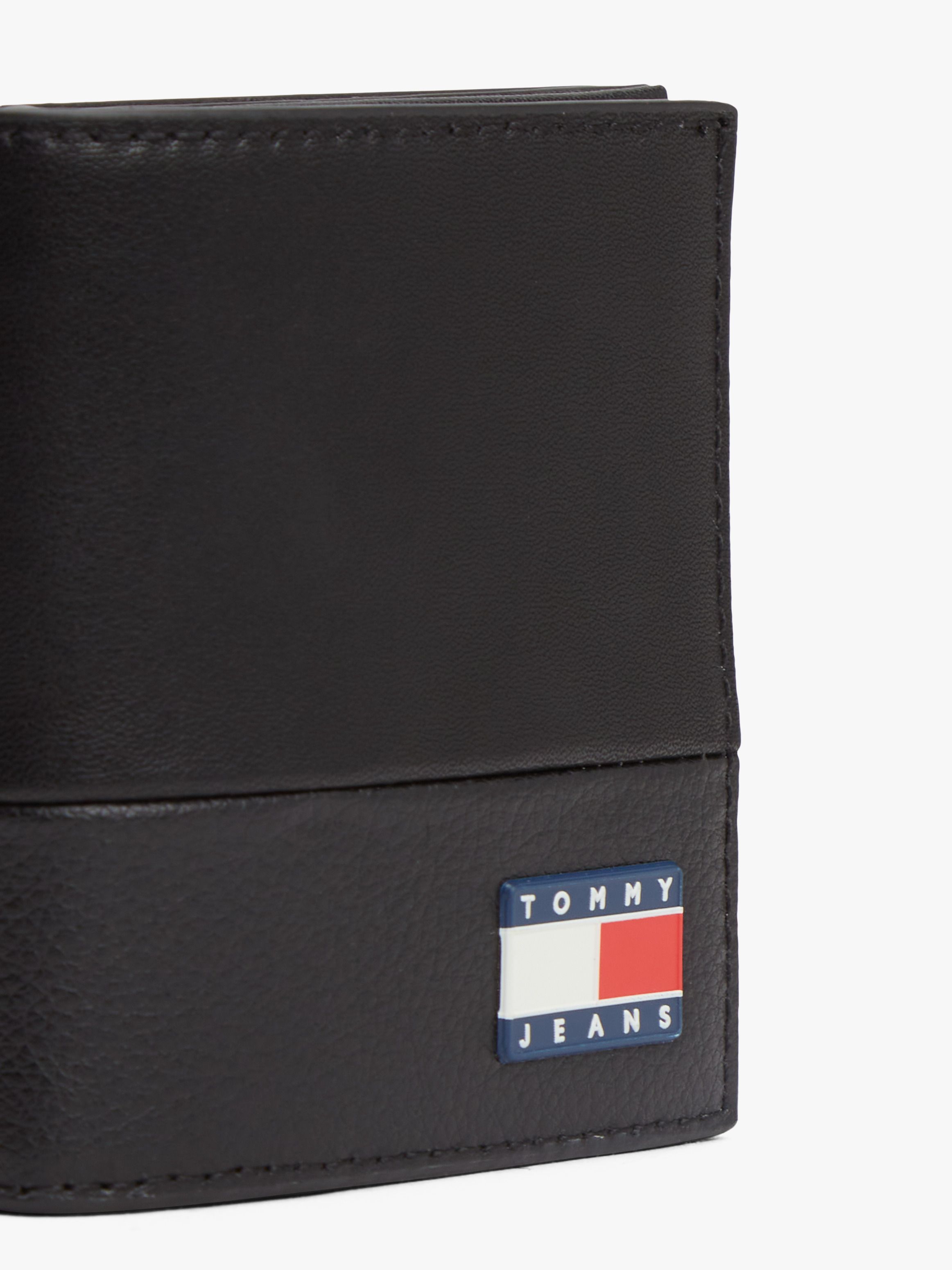 This credit card wallet, crafted from a premium leather mix, features a snap-button coin pocket and a tactile Tommy badge plaque.