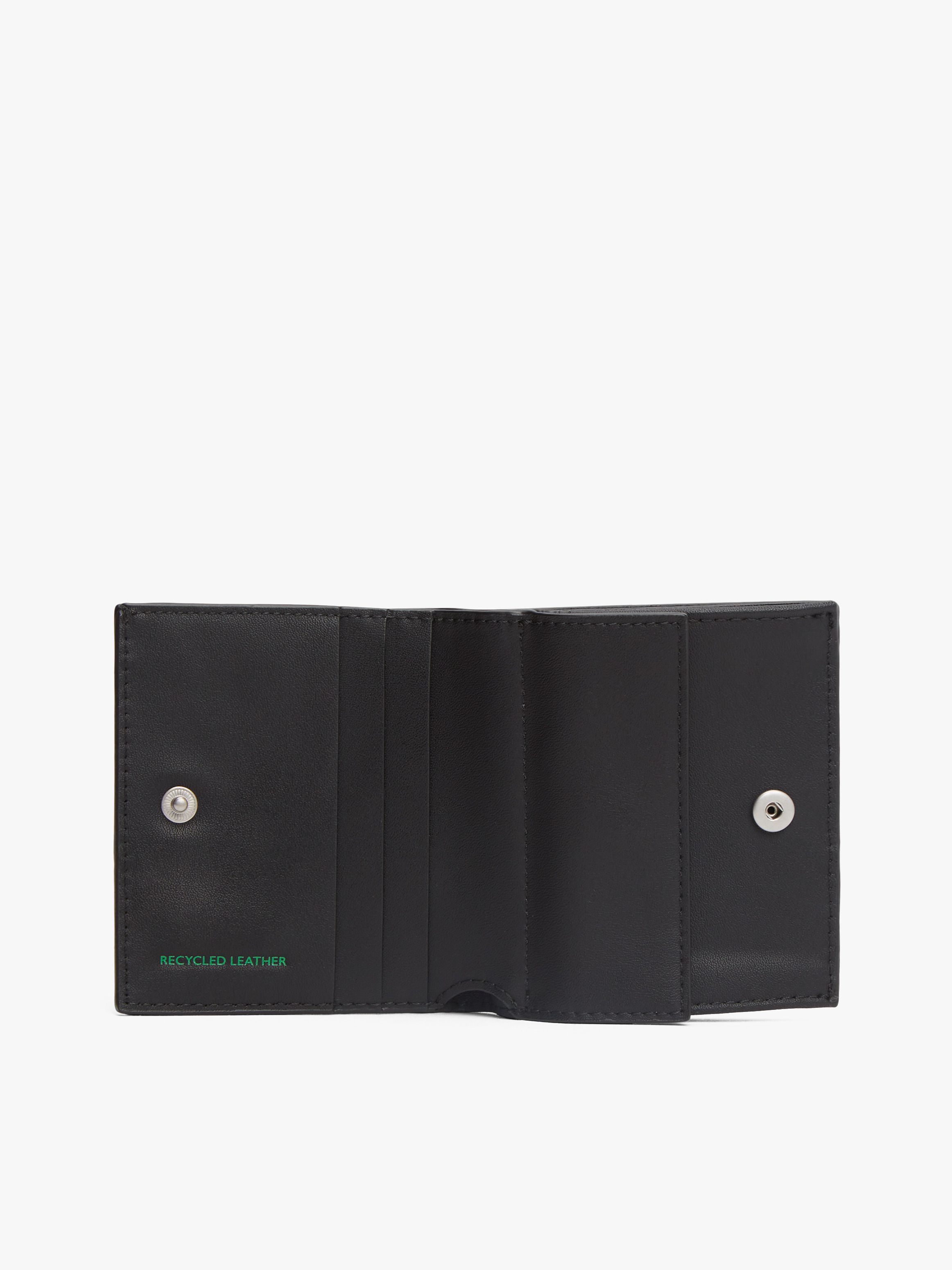 • One interior snap-button coin pocket