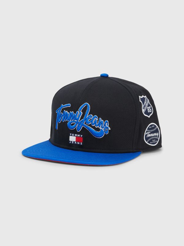 • Pure organic cotton • Contrast button on crown • Ventilation eyelets • Textured stitching on brim • Adjustable snapback strap on back • Tommy Jeans logo embroidery on front • Tommy badge on front • Tommy Jeans branding