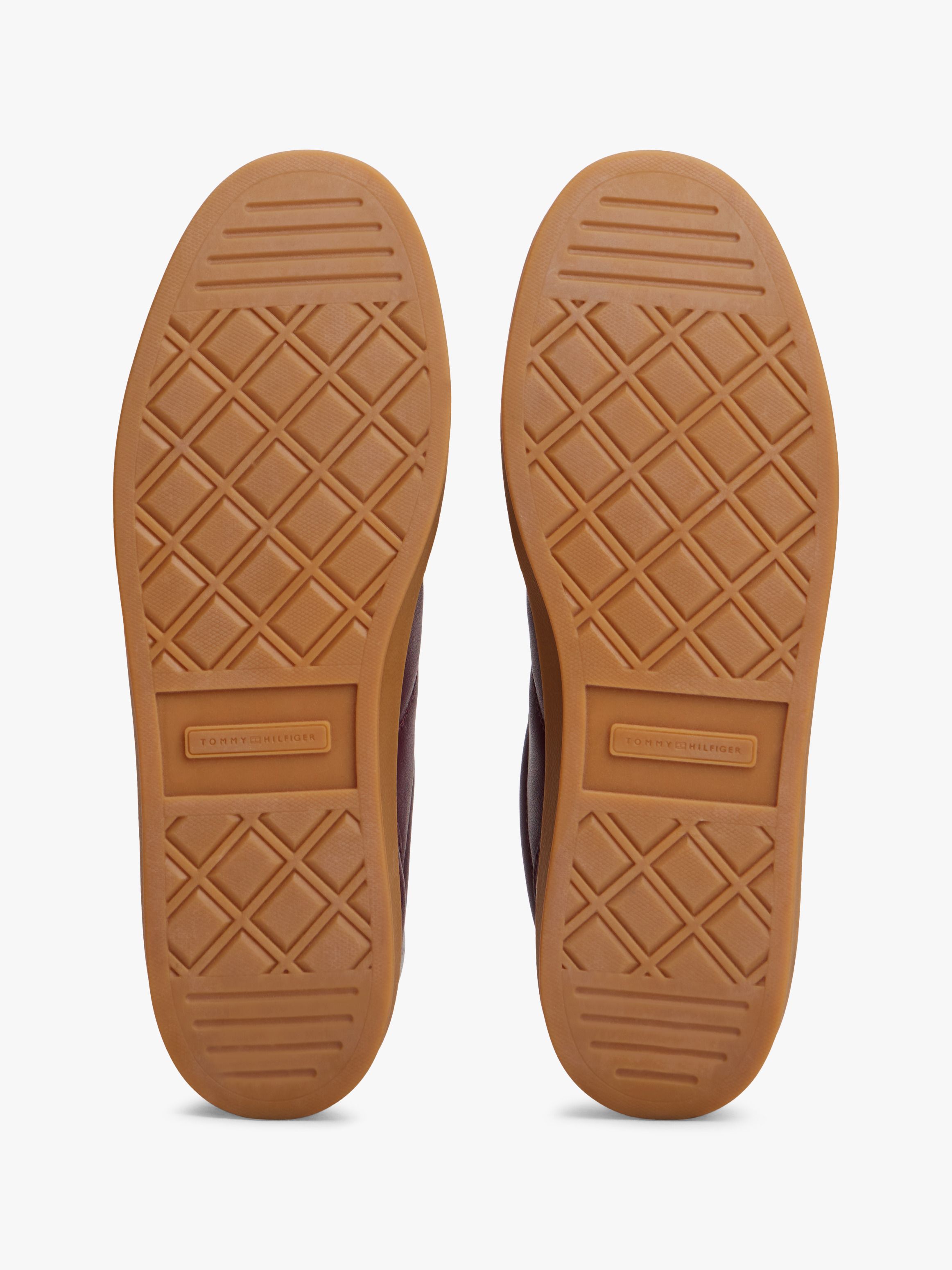 • Napa leather upper • Polyester and elastane lining • Polyurethane, other textiles and thermoplastic rubber removable insock • Rubber outsole • Shiny finish • Contrast TH monogram plaque on side • Tommy Hilfiger branding • Tommy Hilfiger metallic flag debossed on back