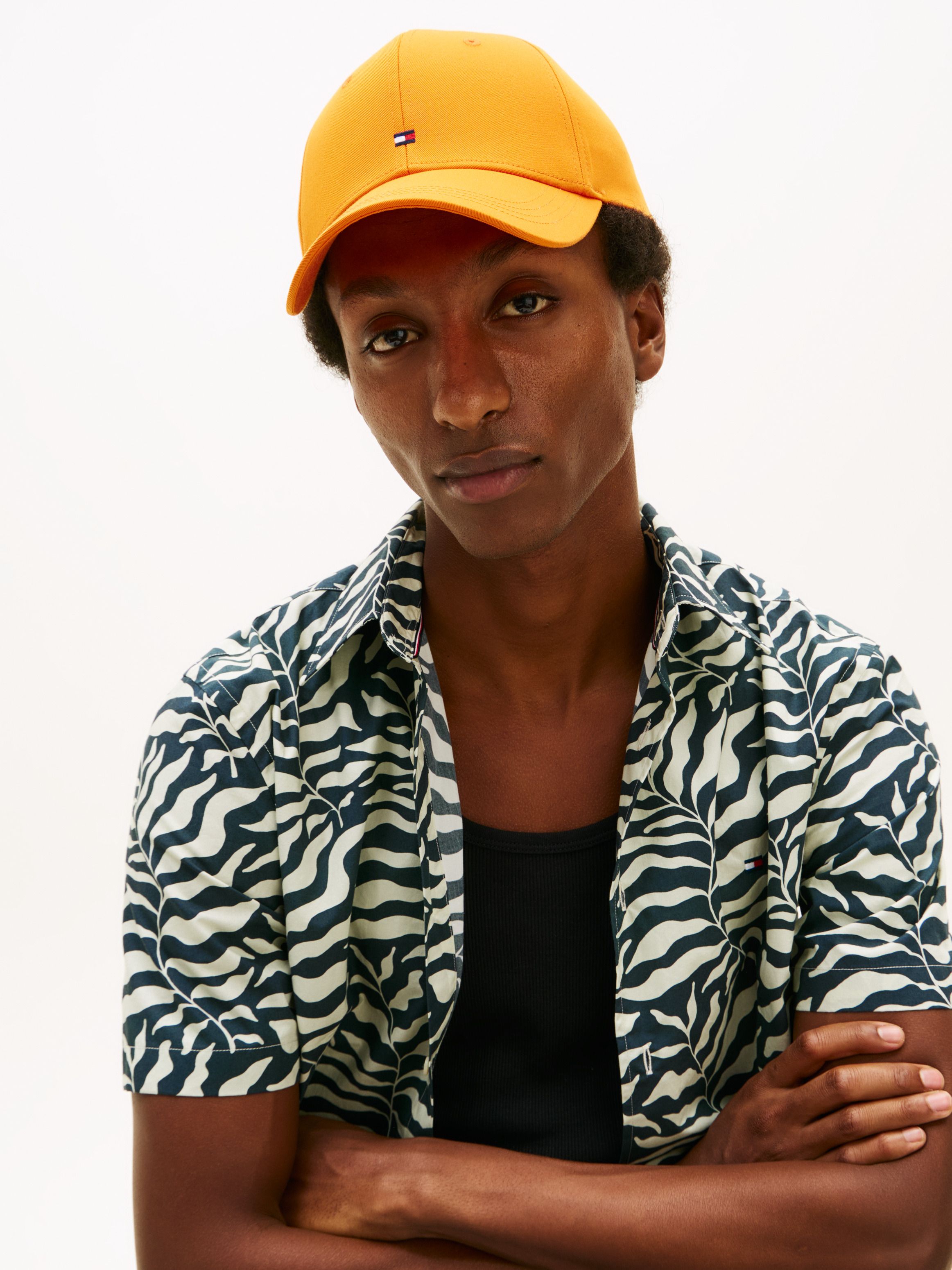 • Pure cotton • Six-panel design • Button on crown • Ventilation eyelets • Metal adjuster on back • Tonal Tommy Hilfiger logo embroidery on back • Tommy Hilfiger flag debossed on adjuster • Tommy Hilfiger branding • Tommy Hilfiger flag embroidery on front