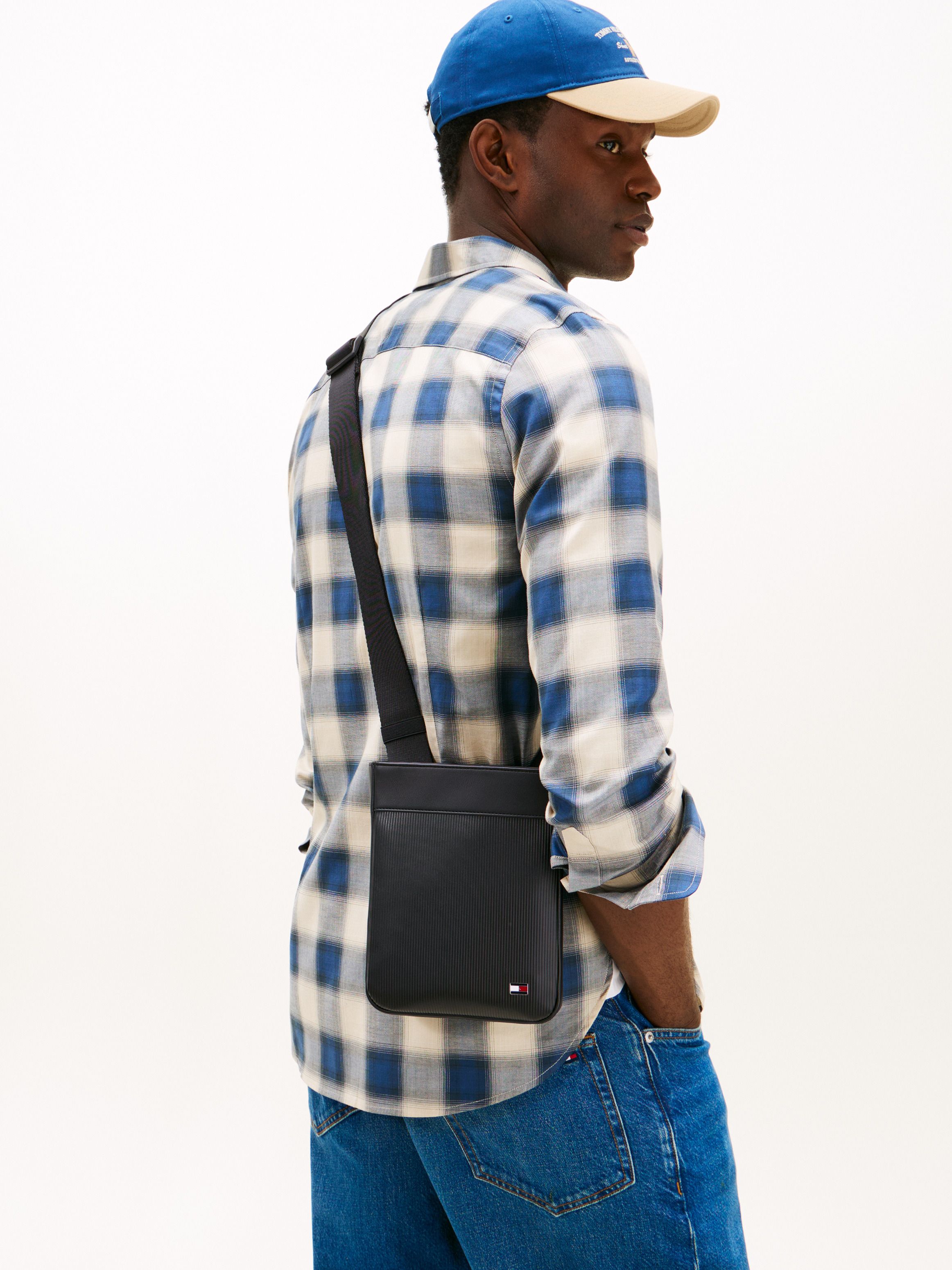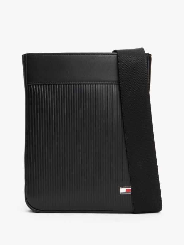 • Smooth finish • Ribbed texture on front • Adjustable crossbody strap • One main compartment • Tommy Hilfiger branding • Tommy Hilfiger enamel flag on front