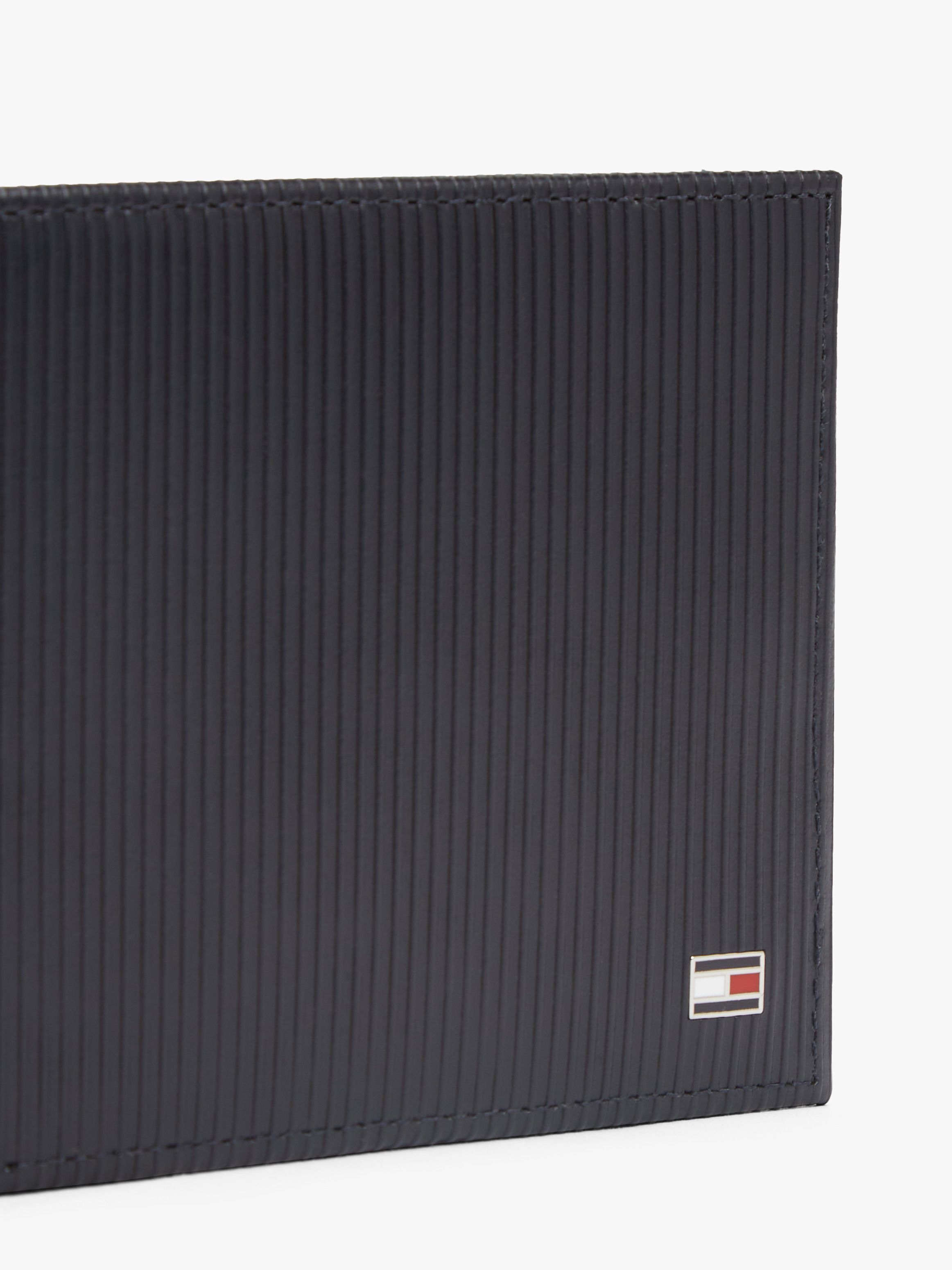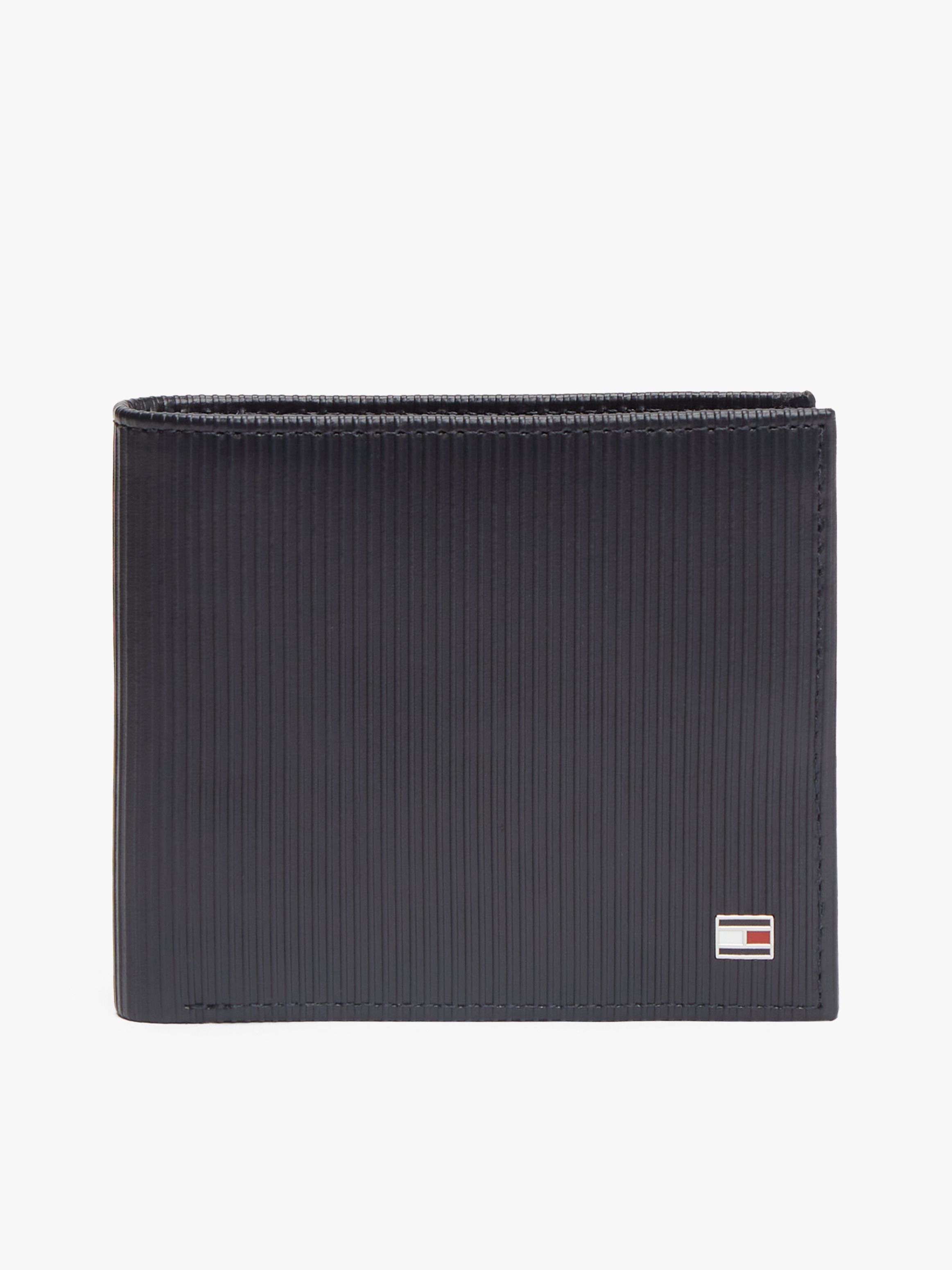 • Leather • Ribbed texture • Bifold design • One interior billfold pocket • Multiple interior card slots • One interior coin pocket • Signature tape inside fold • Tommy Hilfiger logo debossed on coin pocket • Tommy Hilfiger branding • Tommy Hilfiger enamel flag on front