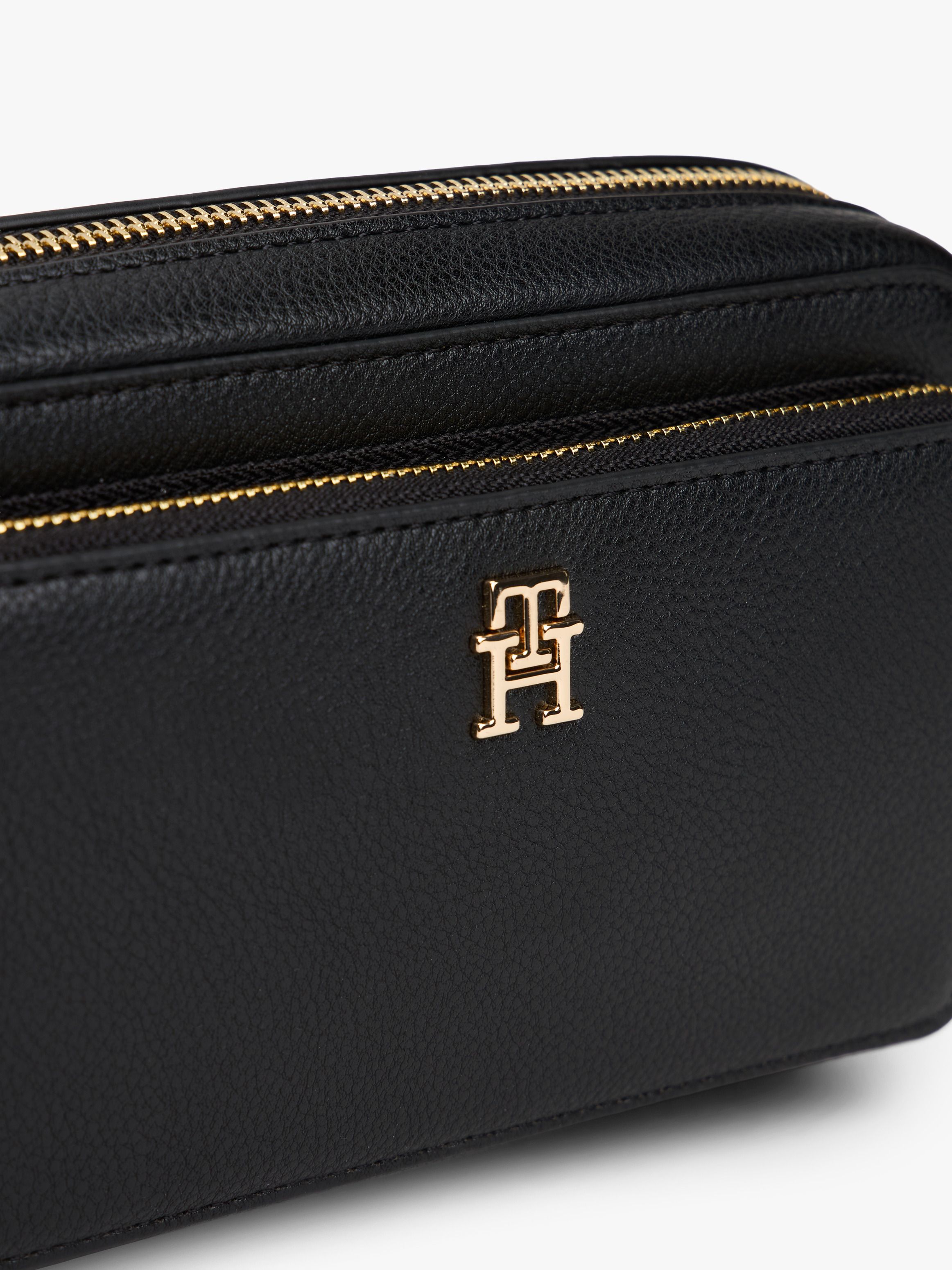 • Pebble grain finish • Zip closure • Removable crossbody strap • One main compartment • One interior zipped pocket • One exterior zipped pocket • TH monogram plaque on front • Tommy Hilfiger branding