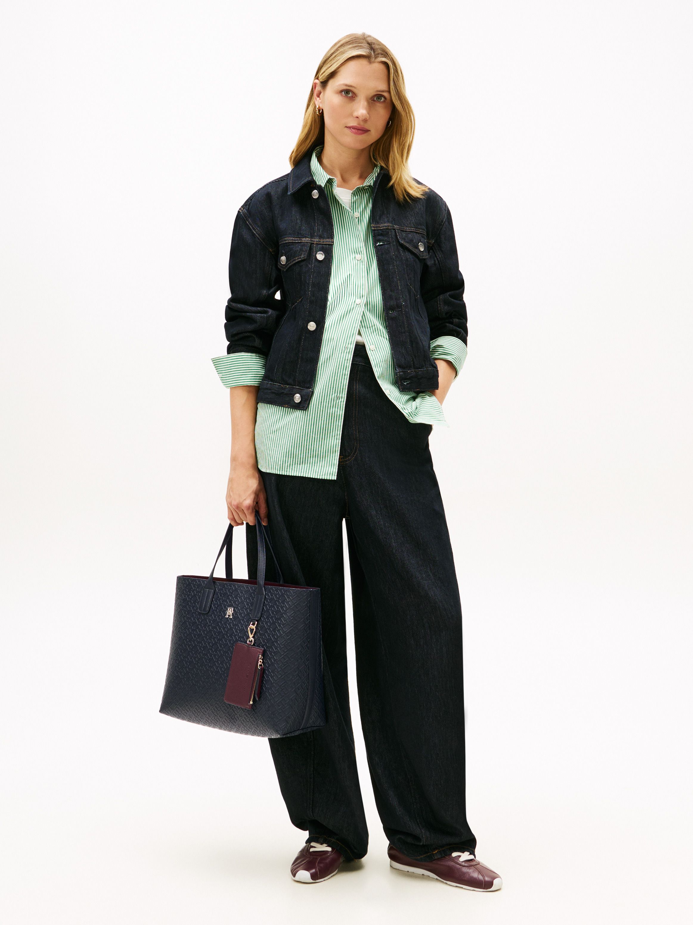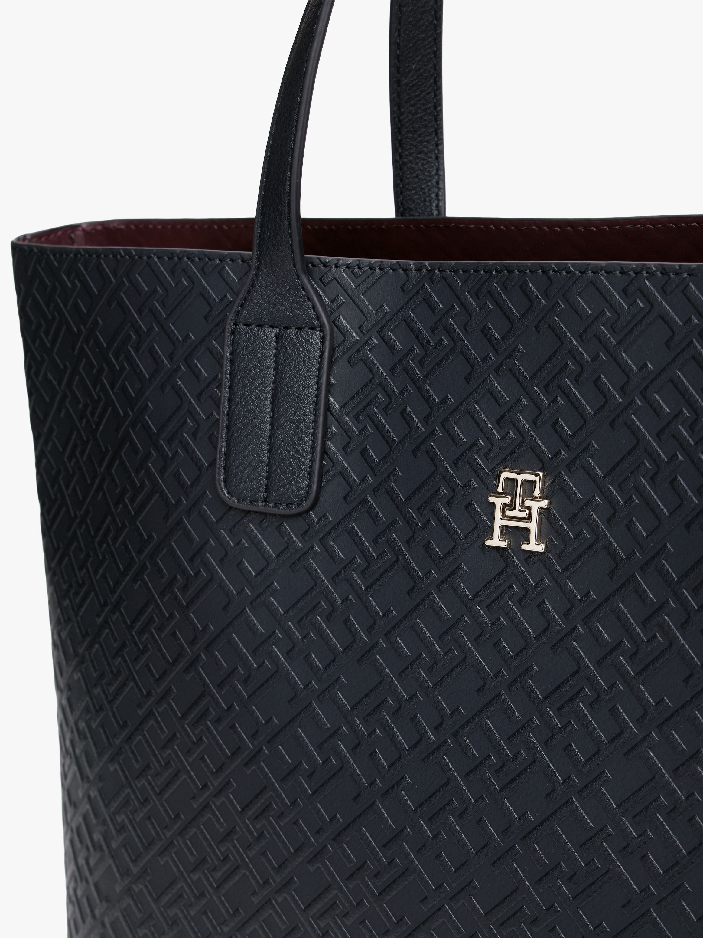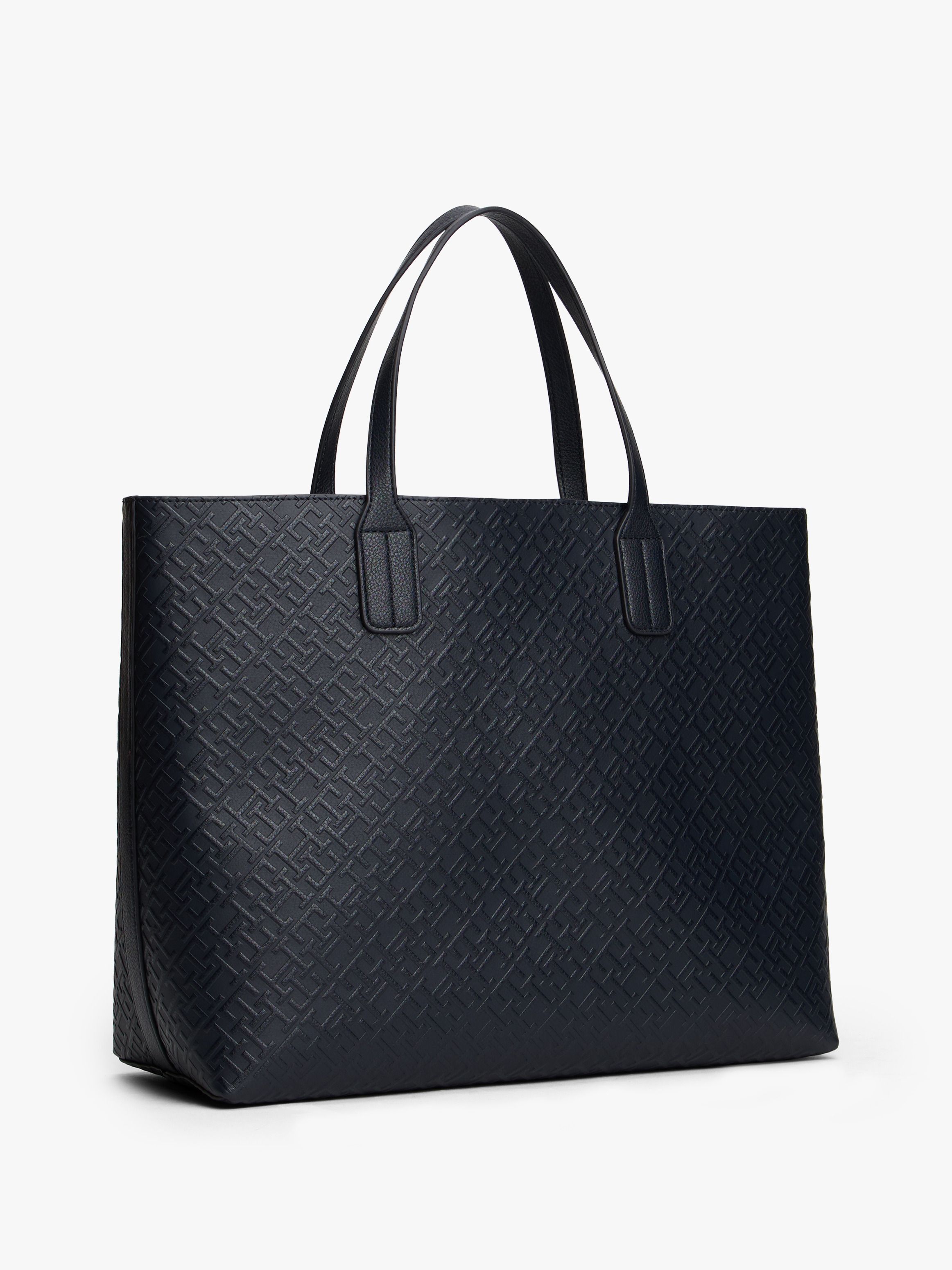 • Pebble grain finish on handles • All-over embossed TH monogram • Zip closure • Two top handles • Adjustable removable crossbody strap • One main compartment • Detachable zipped contrast coin purse • TH monogram plaque on front • Tommy Hilfiger branding