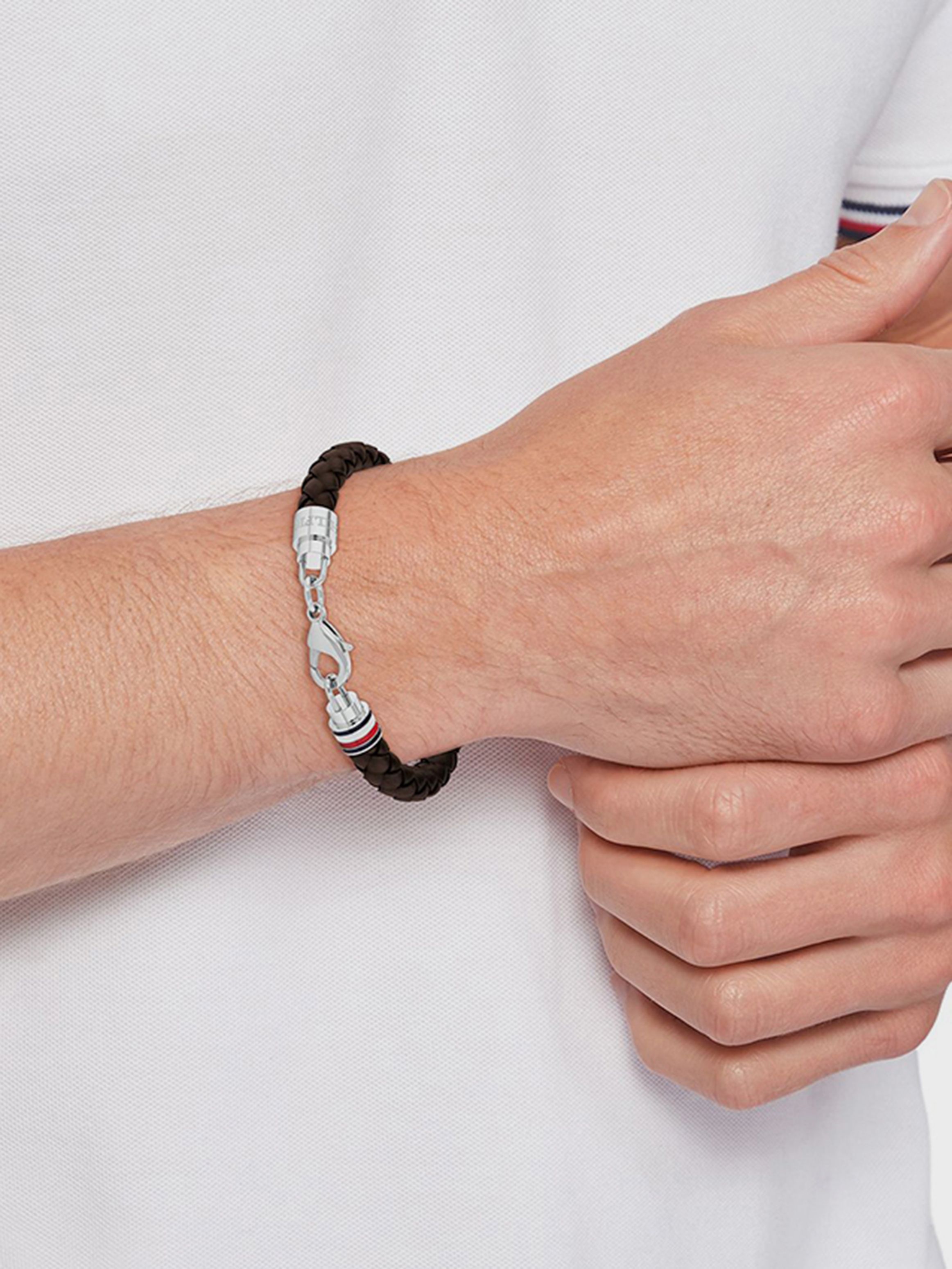 Tommy Hilfiger Men’s Bracelet. Our iconic braided leather bracelet just got a refresh, just in time for your next casual look. With TH stripes on the lobster closure, this bracelet is perfect for when you want to add a touch of Tommy. High quality standards ensures long term durability.