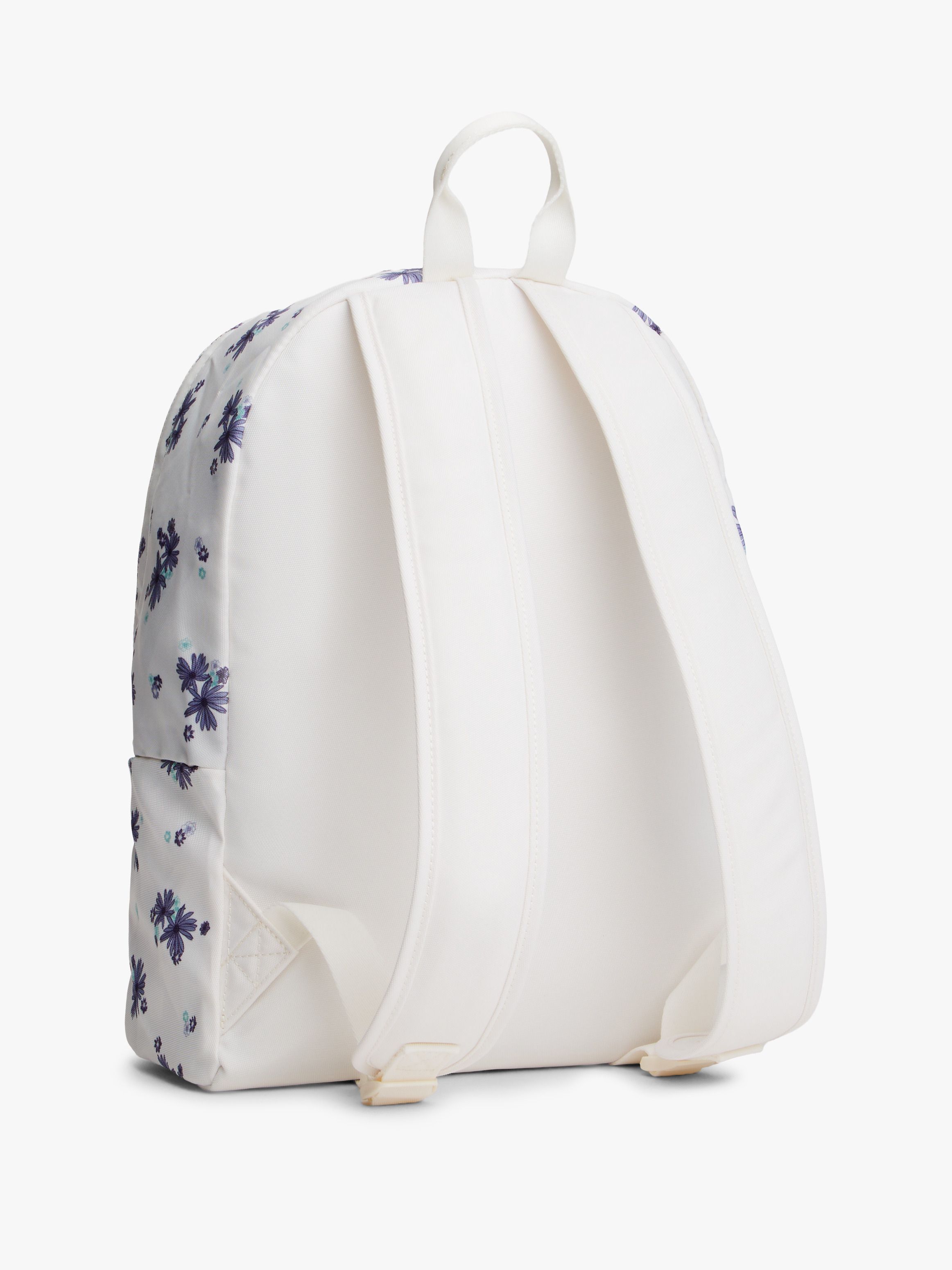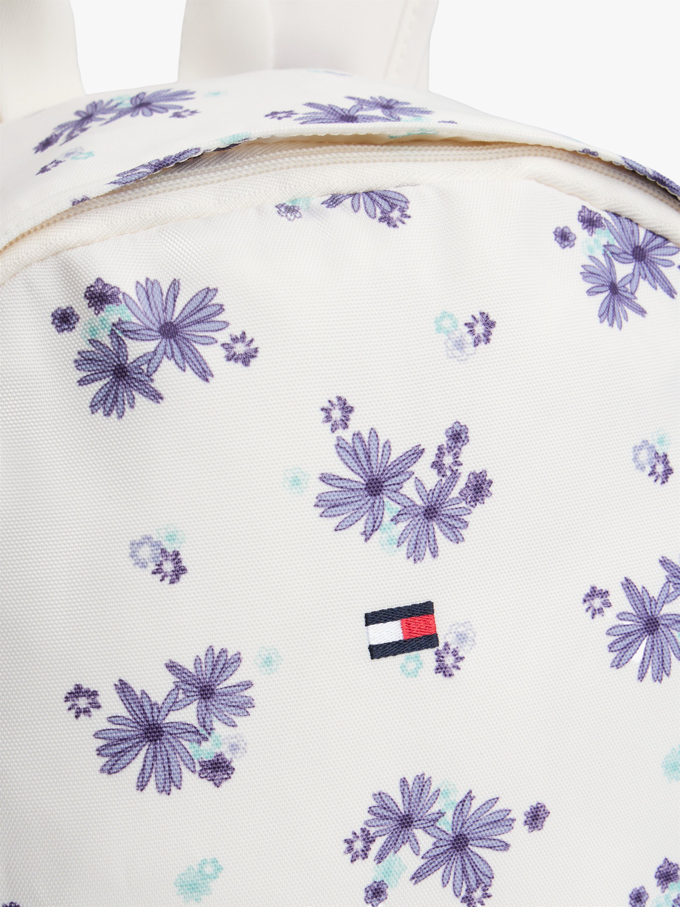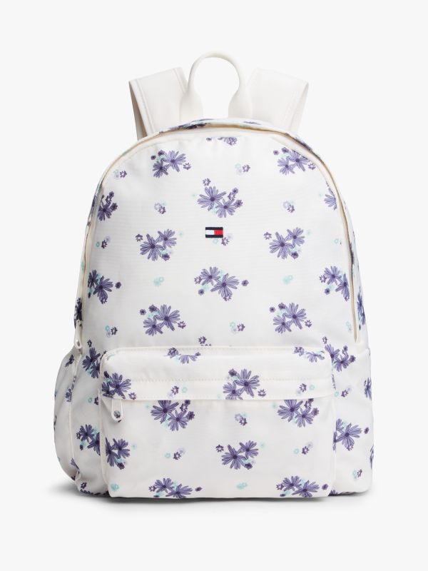 • Textile • All-over floral print • Double zip closure • One top handle • Adjustable shoulder straps • One main compartment • One exterior zipped pocket • Tommy Hilfiger logo on pocket • Tommy Hilfiger branding