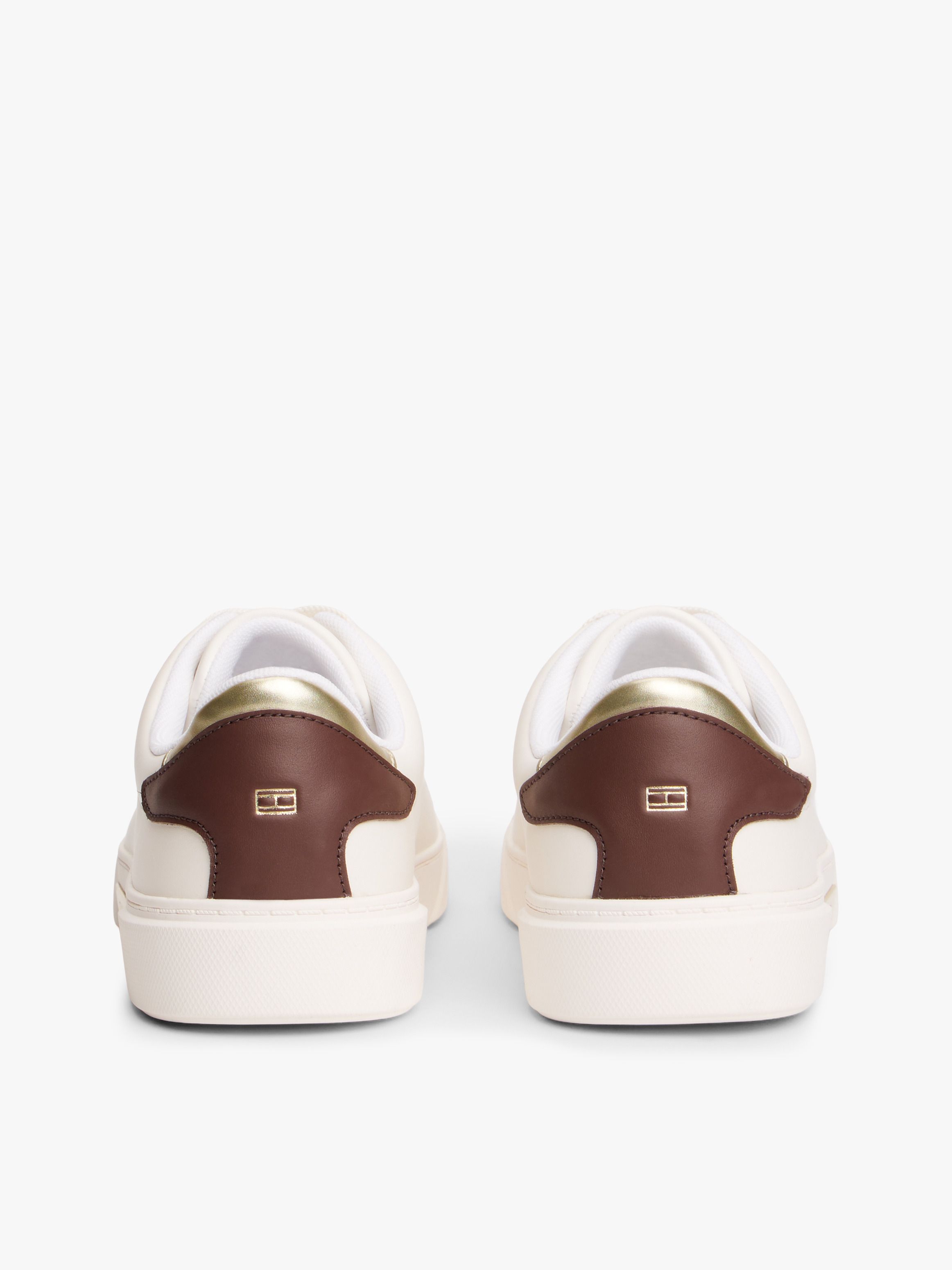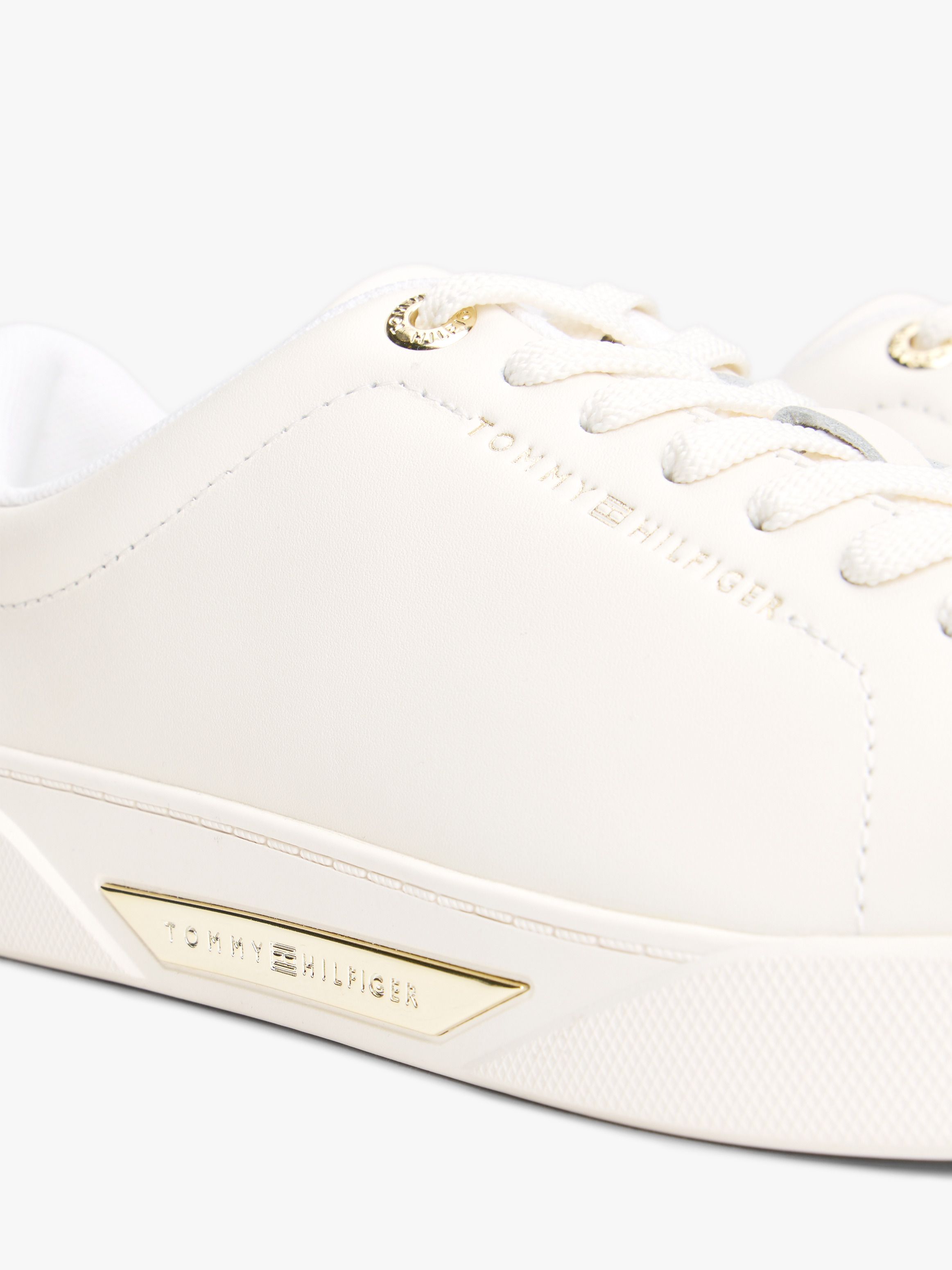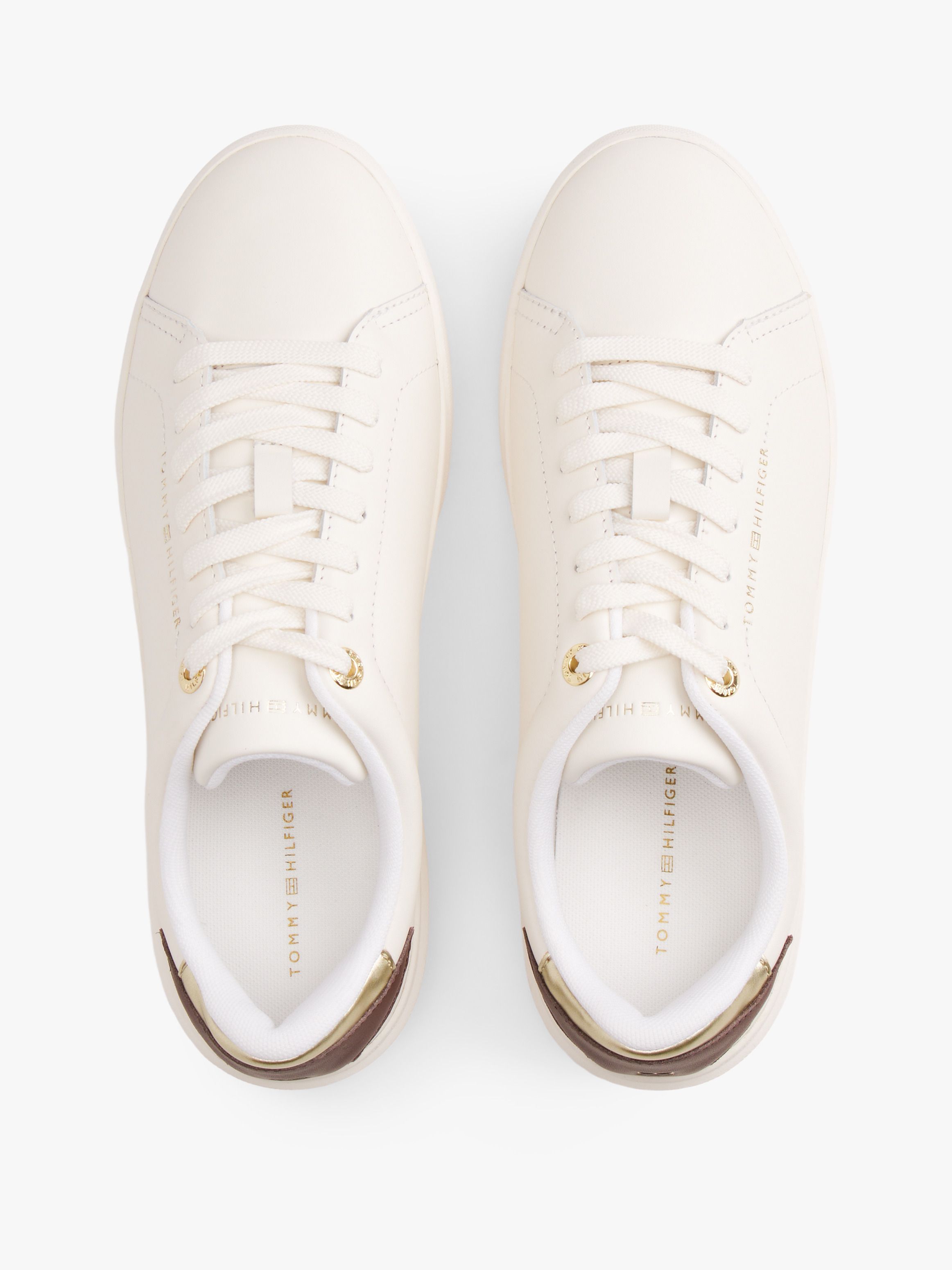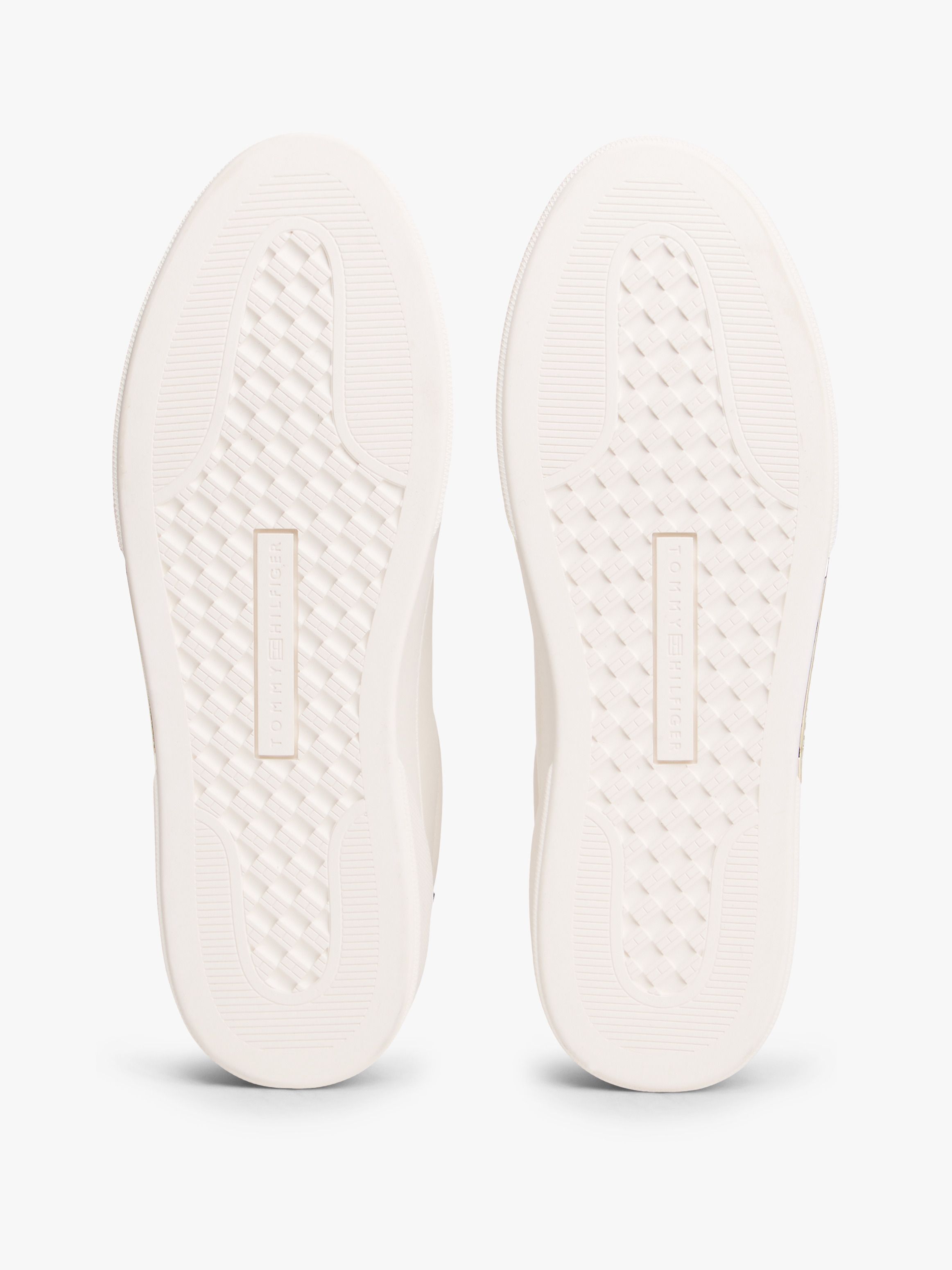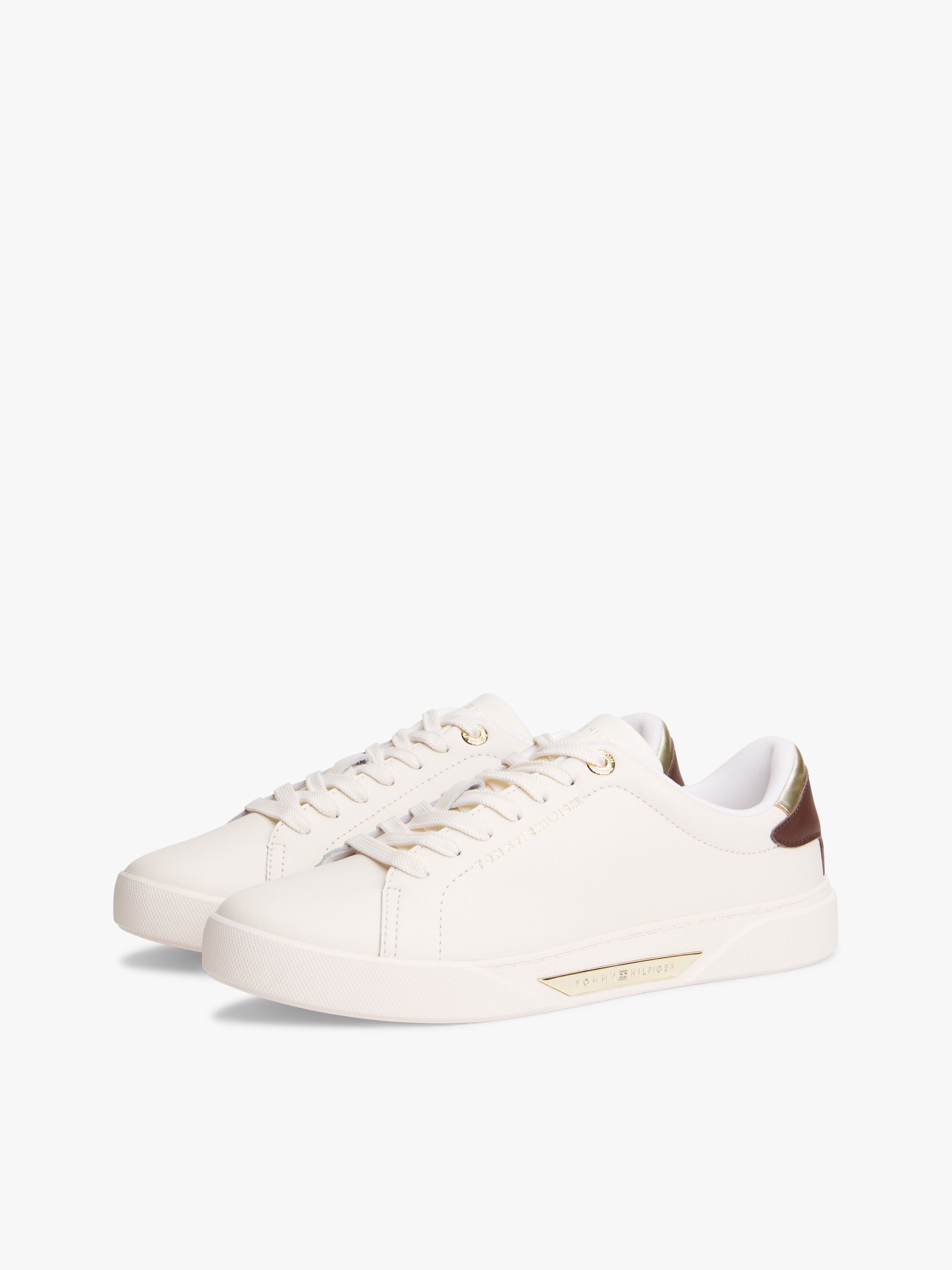 • Napa leather upper • Polyester lining • Polyurethane, other textiles and thermoplastic rubber removable insock • Rubber outsole • Tommy Hilfiger metallic logo embossed on tongue and side • Tommy Hilfiger logo plaque on midsole • Tommy Hilfiger branding • Tommy Hilfiger metallic flag embossed on heel