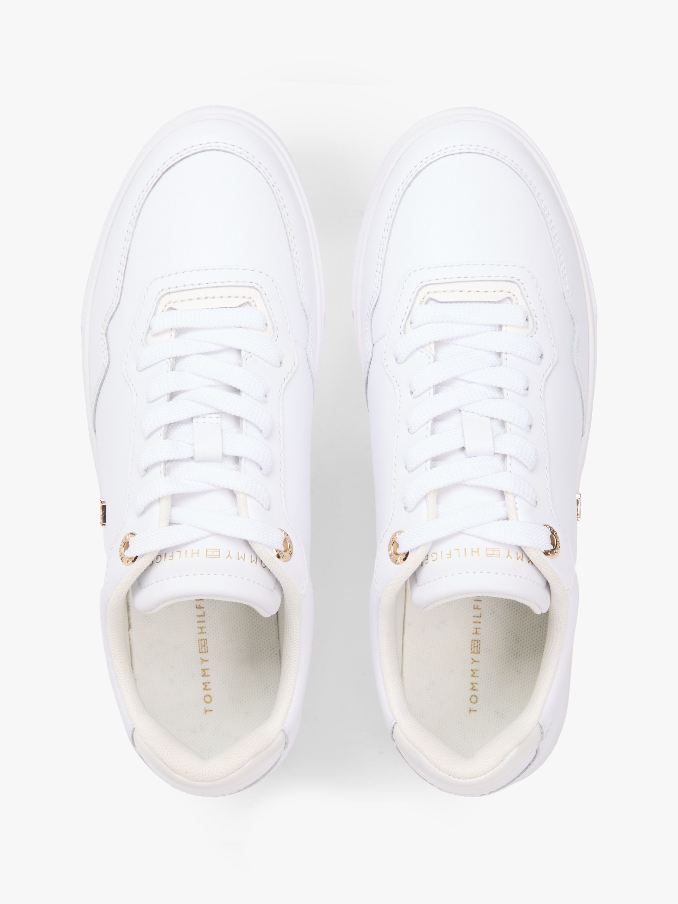 • Leather upper • Polyester lining • Polyurethane, other textiles and thermoplastic rubber removable insock • Rubber outsole • Contrast mixed texture panels • Cupsole • Contrast midsole • Tommy Hilfiger top eyelets • TH monogram plaque on side • Tommy Hilfiger metallic logo embossed on tongue • Tommy Hilfiger logo embossed on heel • Tommy Hilfiger branding