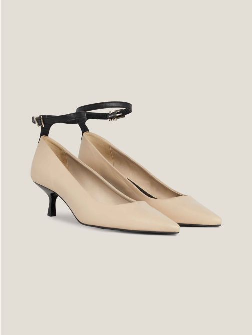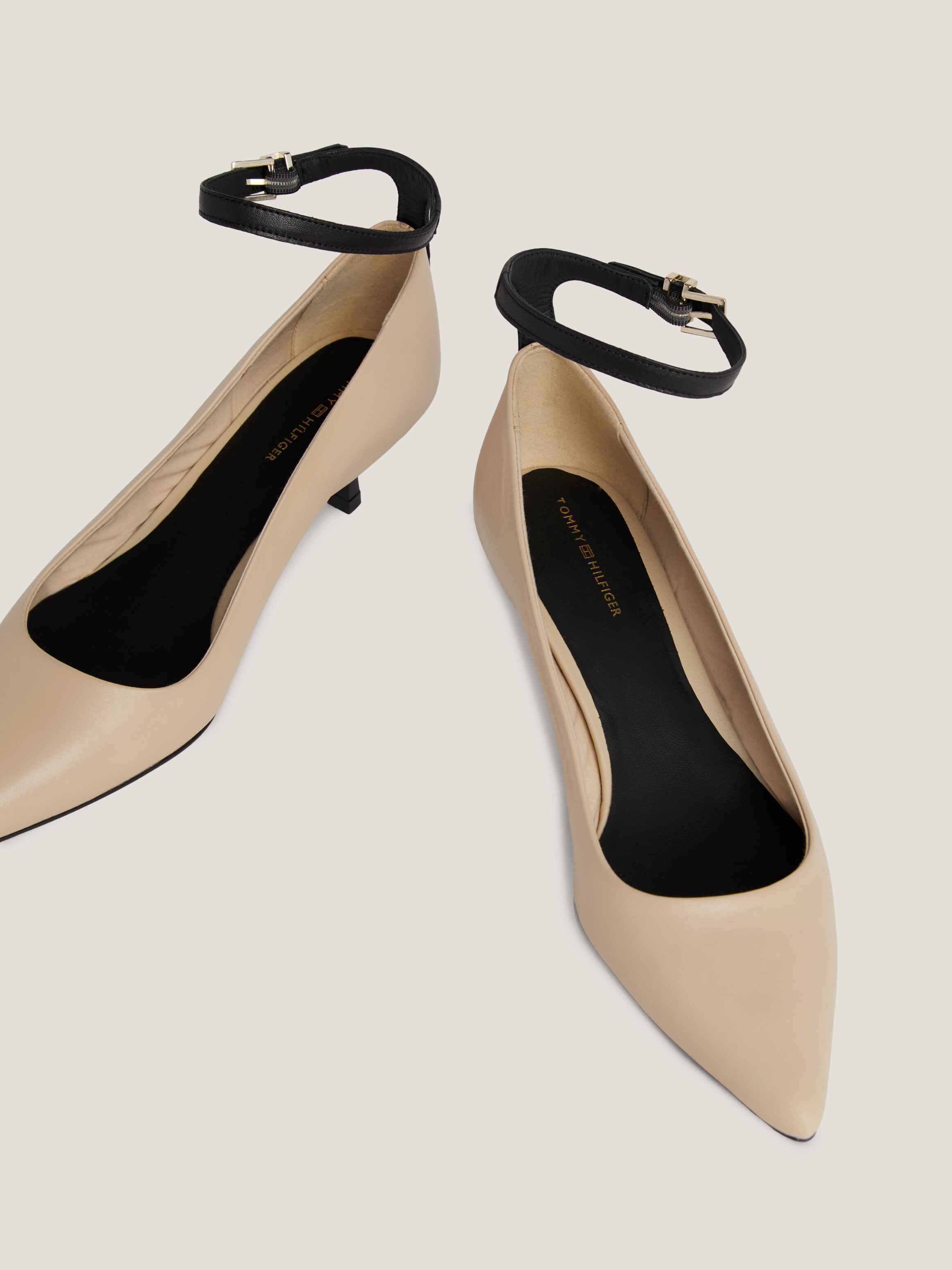 Made from sumptuous leather, these strappy kitten heels will add a touch of minimalist chic to your evening ensembles.