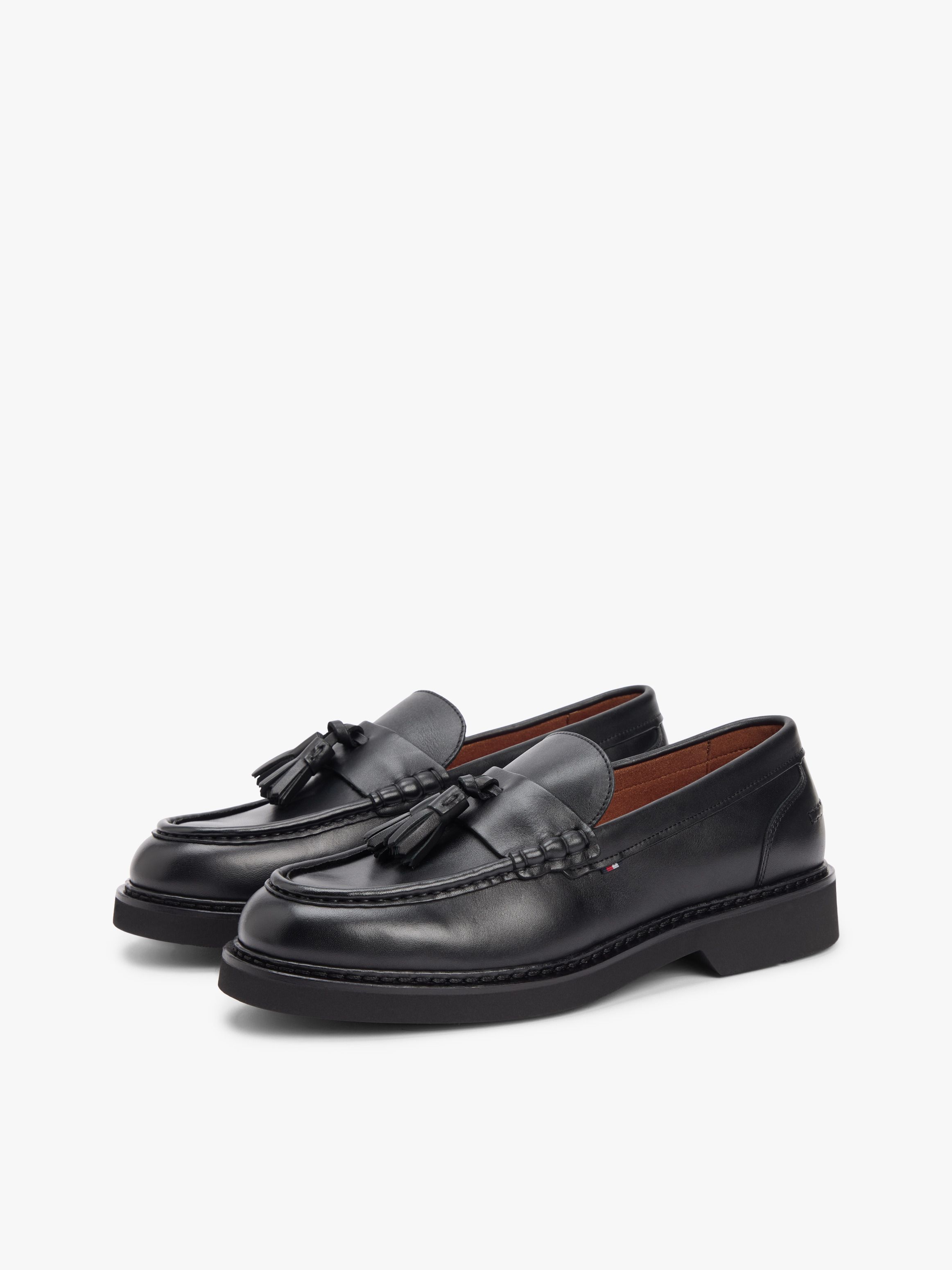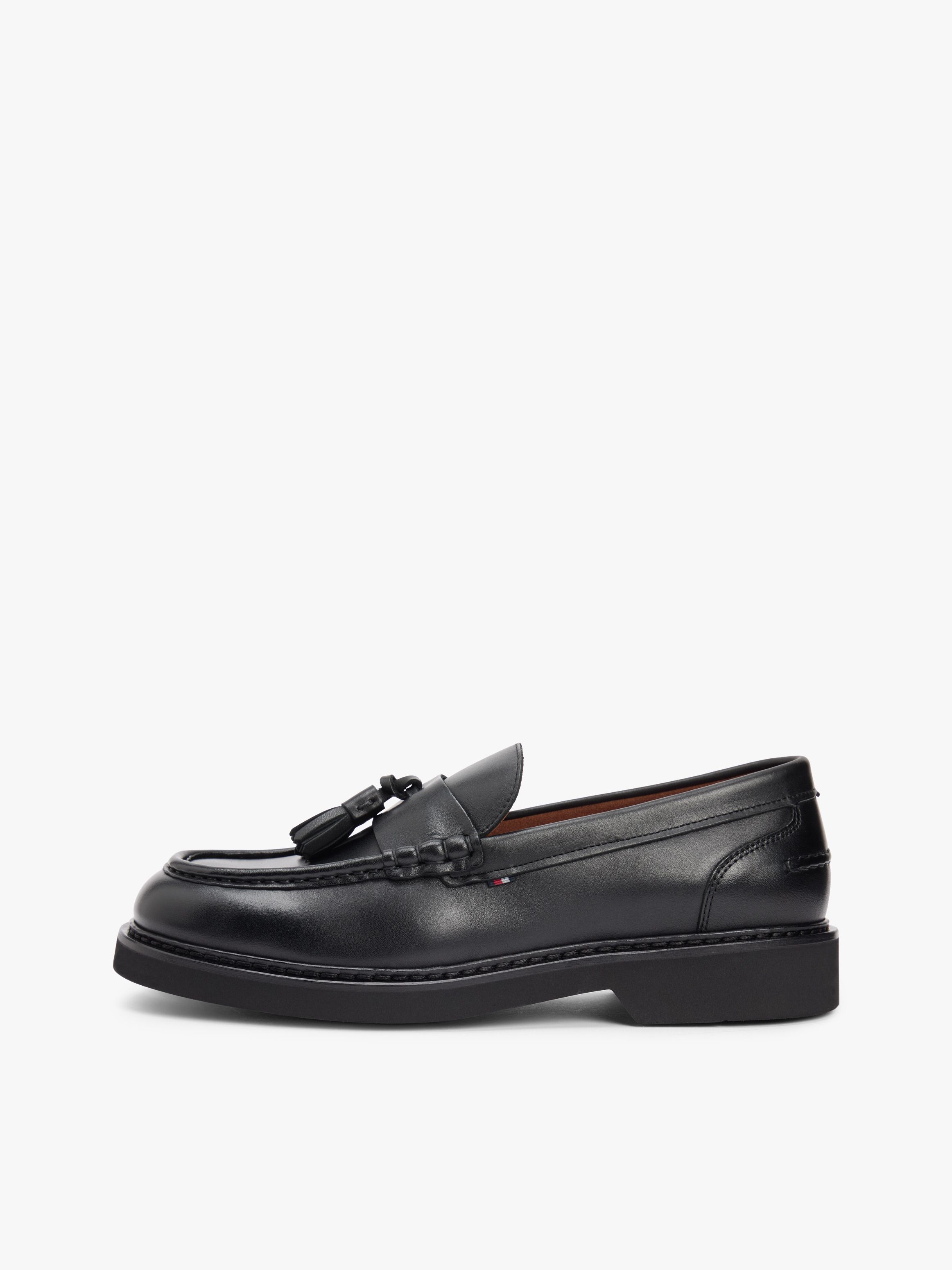 These leather loafers offer a sophisticated slip-on shoe, with novel touches in the form of a tassel and signature tape detail.