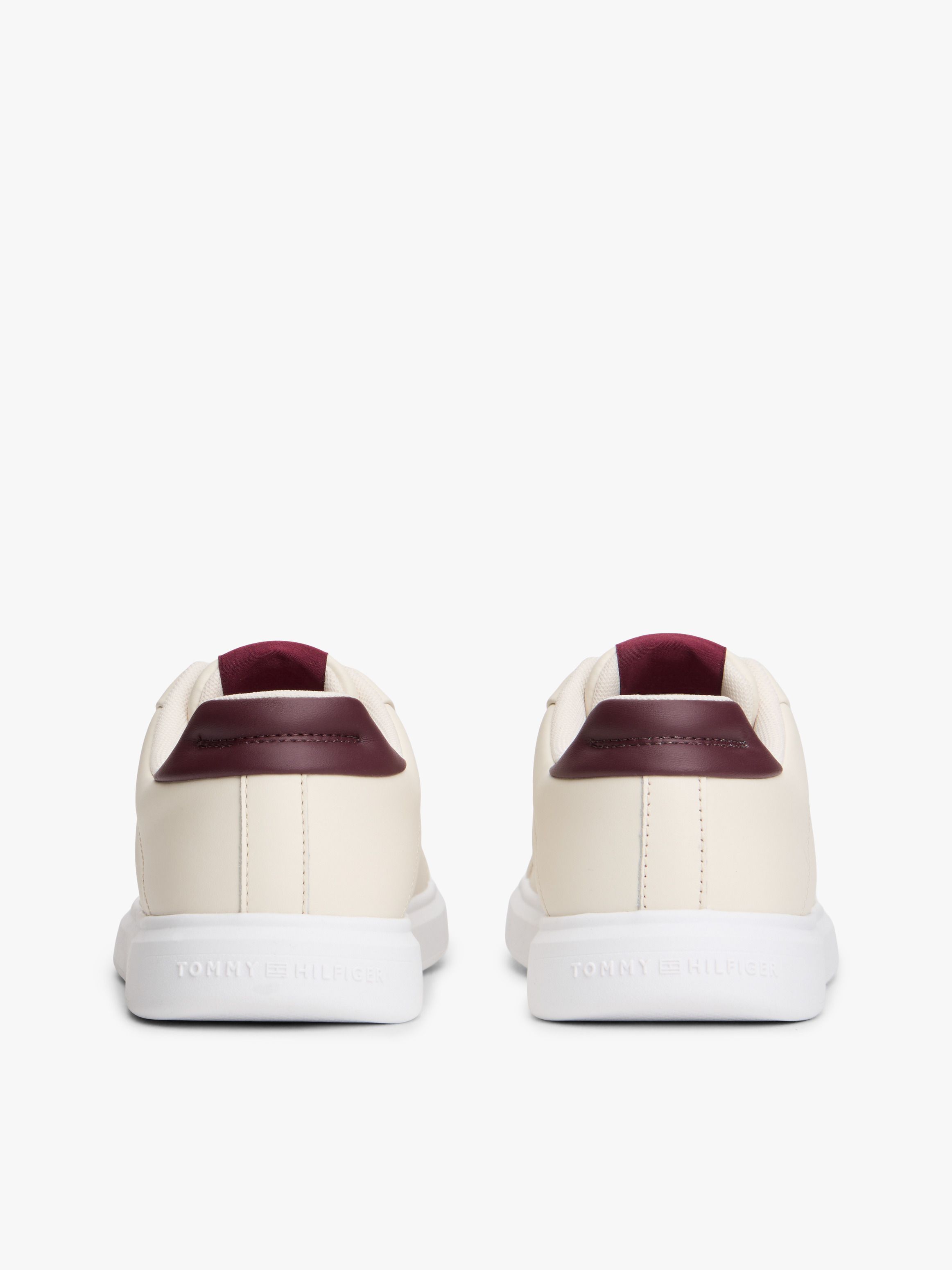 These lightweight leather trainers are styled with a classic court silhouette and feature an enamel flag for a pop of colour.