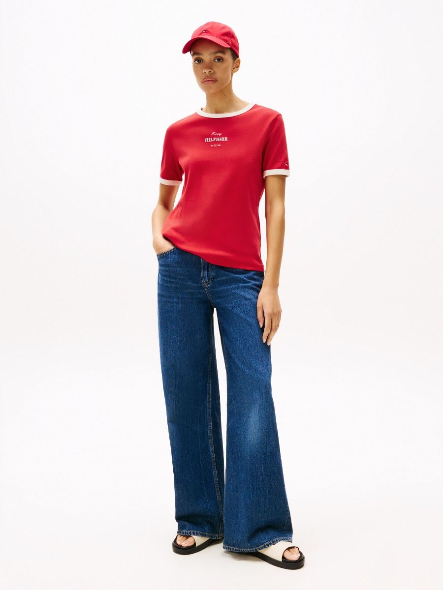 • Pure cotton • All-over Breton stripe • Crew neck • Contrast trim • Hilfiger monotype logo on chest • Tommy Hilfiger branding • Tommy Hilfiger flag embroidery on sleeve