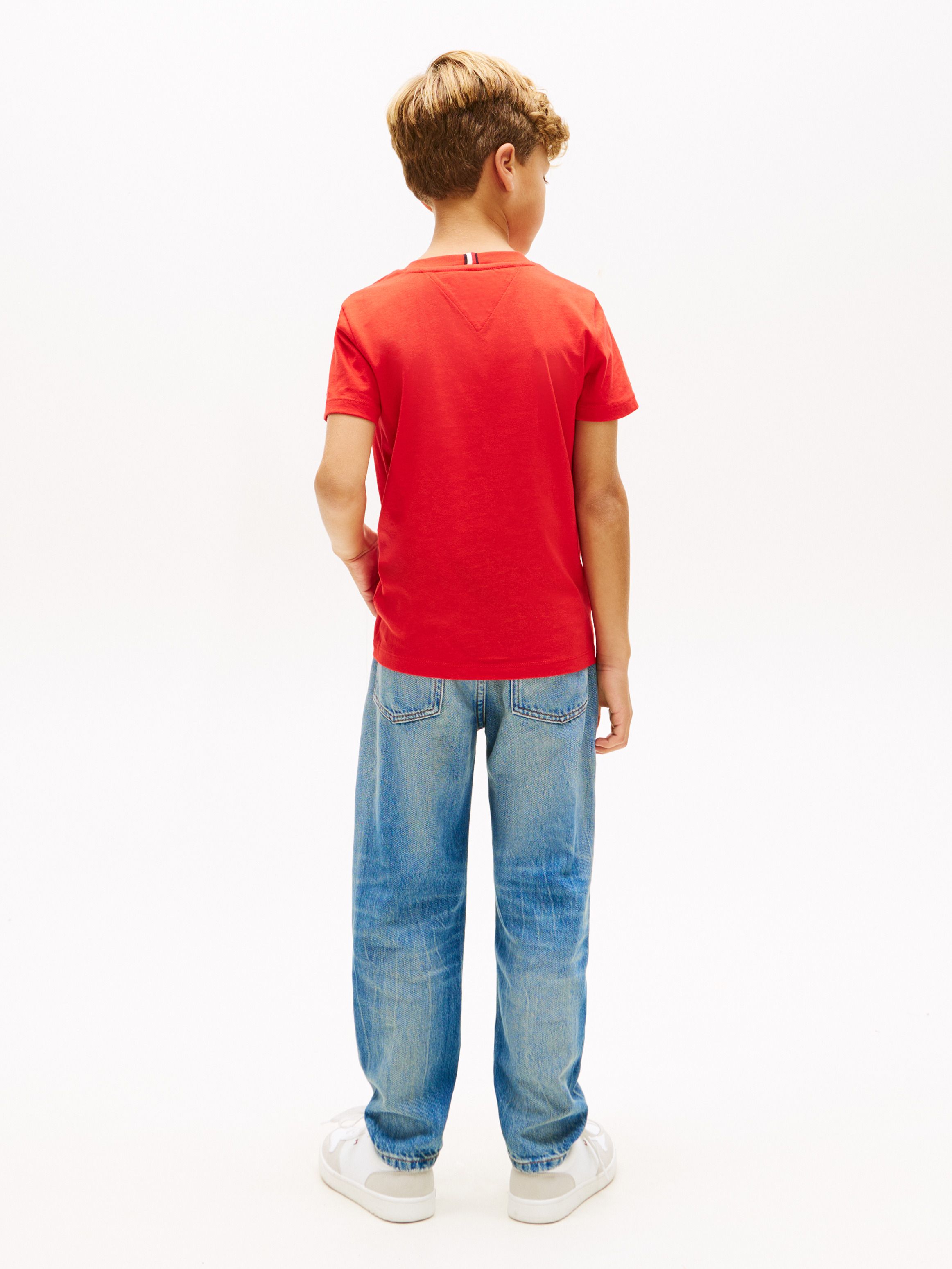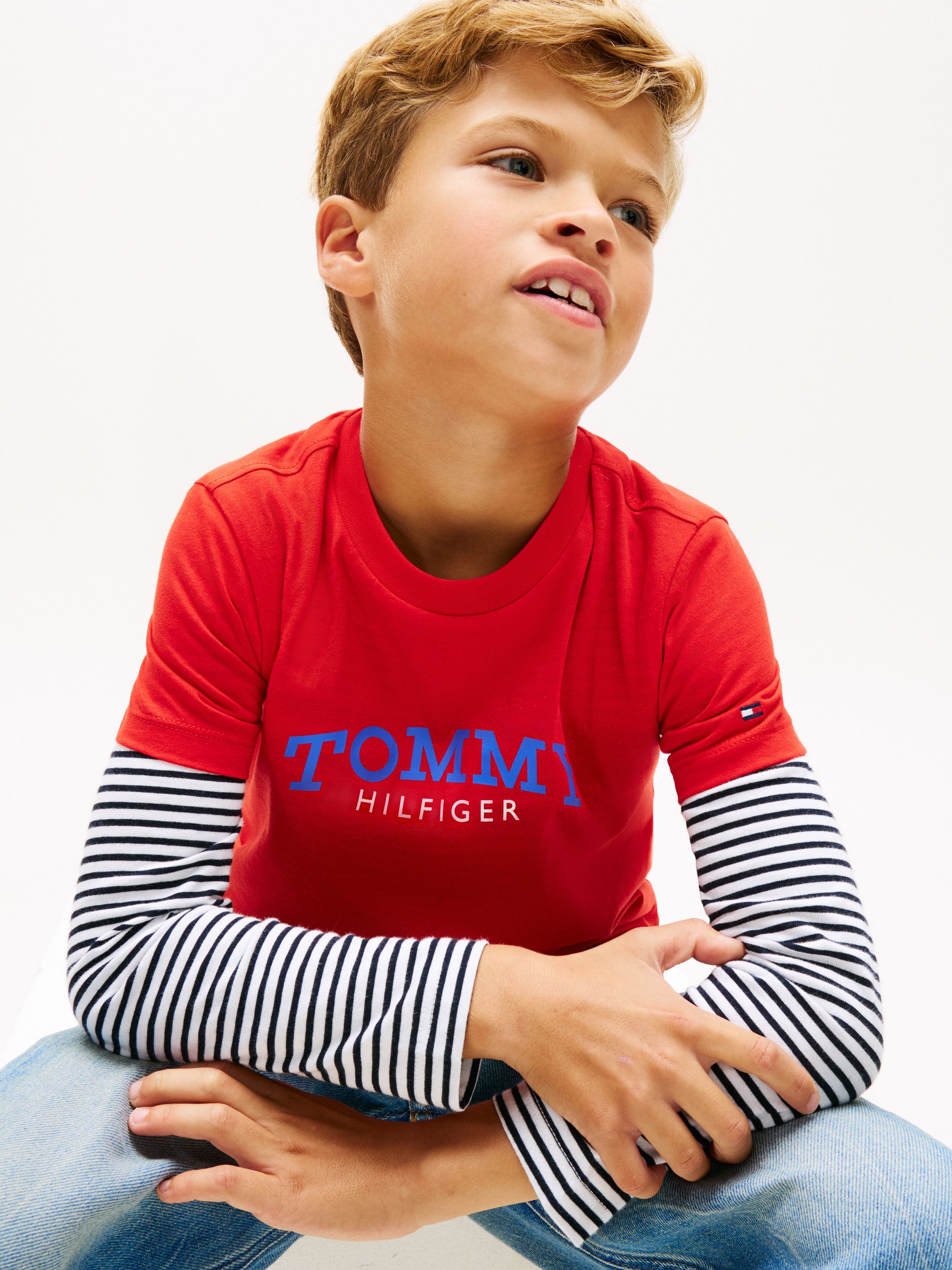 • Pure cotton jersey • Yarn dyed • Crew neck • Signature tape on nape • Tommy Hilfiger logo on chest • Tommy Hilfiger branding • Tommy Hilfiger flag embroidery on sleeve