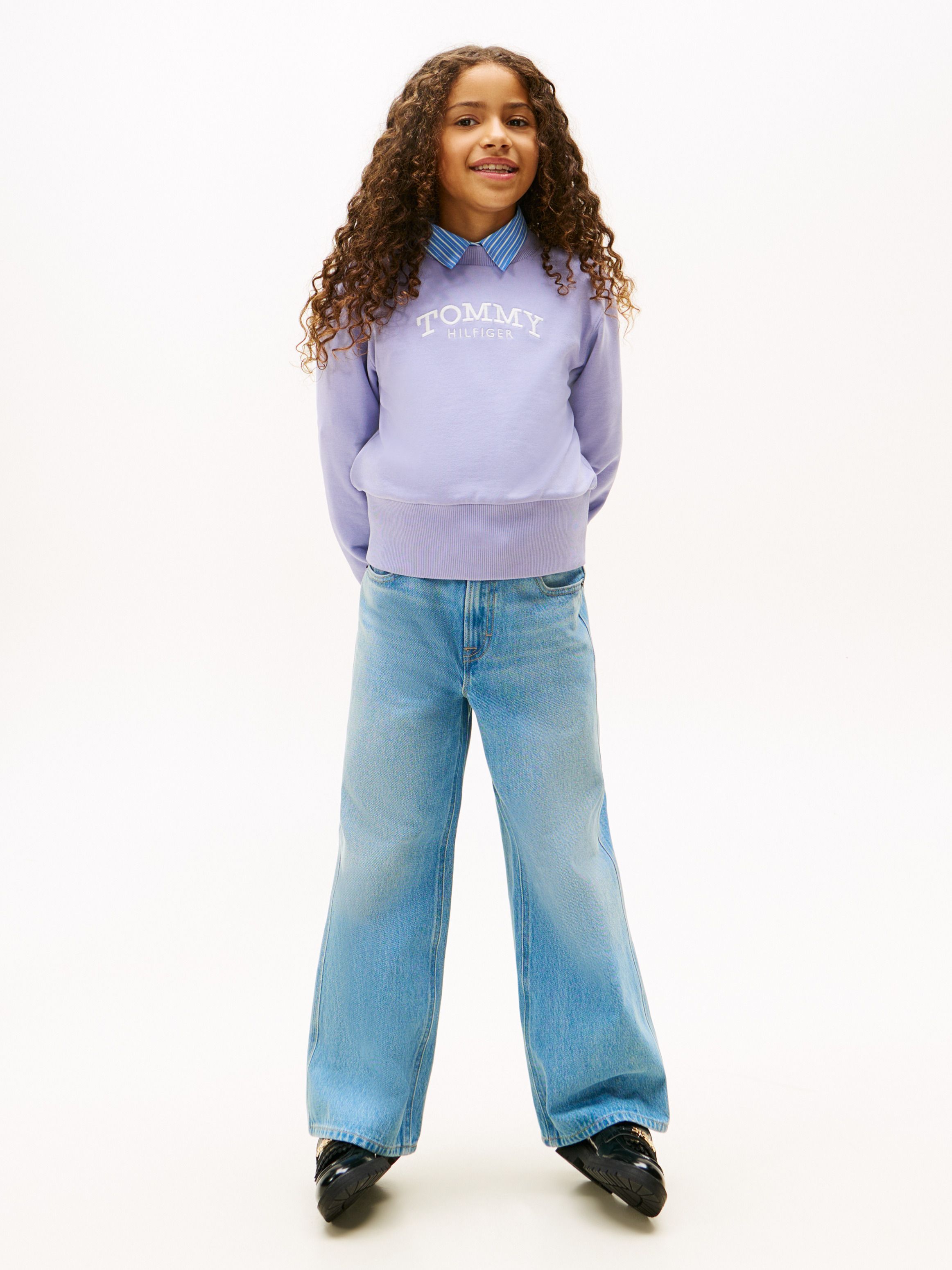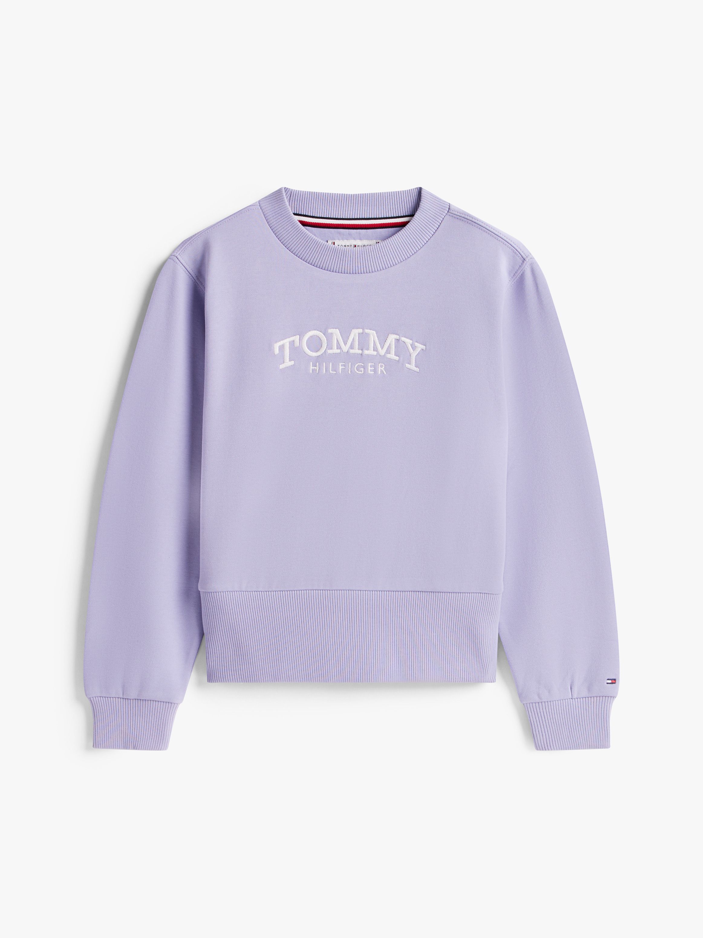 • Stretch peached cotton blend terry • Crew neck • Rib-knit collar, cuffs and hem • Signature tape inside neckline • Tommy Hilfiger logo embroidery on chest • Tommy Hilfiger branding • Tommy Hilfiger flag embroidery on sleeve