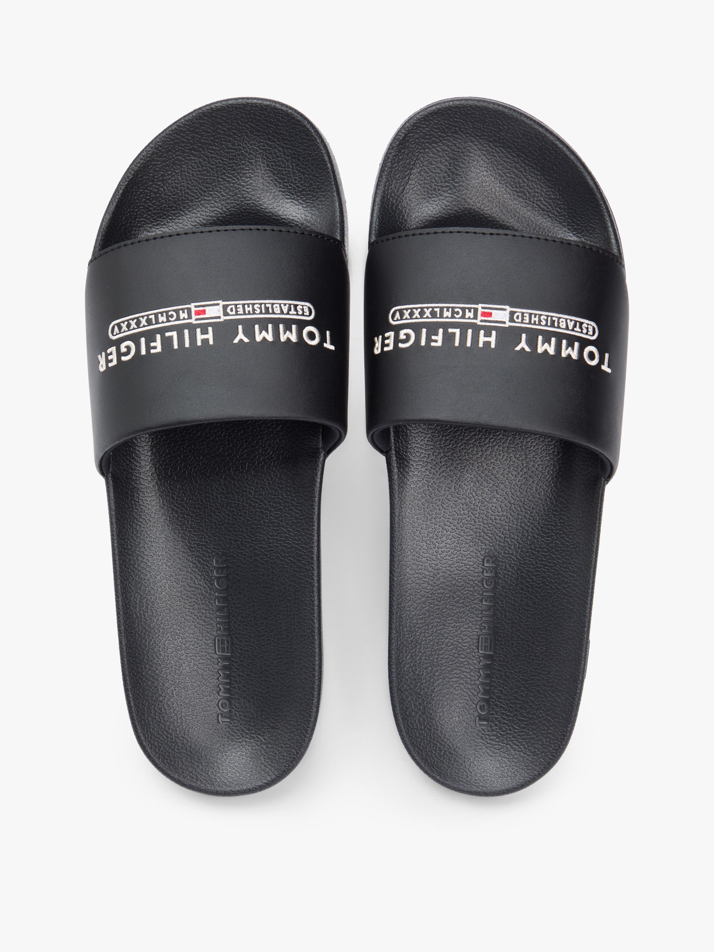 • Polyurethane mix upper • Polyester lining • EVA outsole • Contoured footbed • Pebble grain finish on midsole and footbed • Tommy Hilfiger logo embroidery on strap • Tommy Hilfiger branding