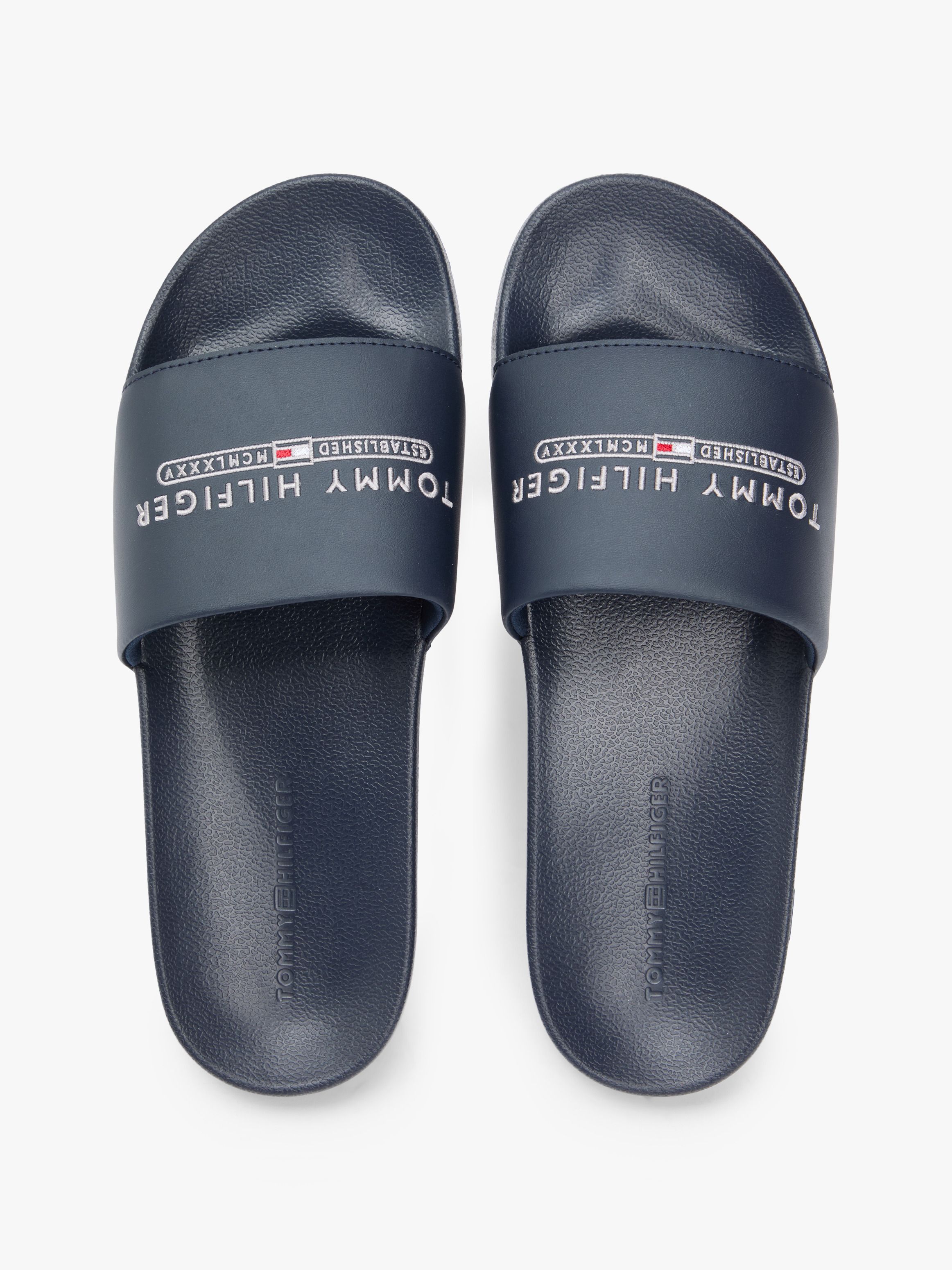 • Polyurethane mix upper • Polyester lining • EVA outsole • Contoured footbed • Pebble grain finish on midsole and footbed • Tommy Hilfiger logo embroidery on strap • Tommy Hilfiger branding
