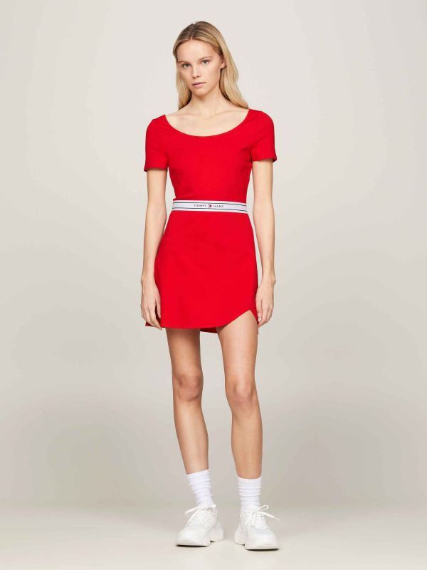 Whatever event you're headed to, rock a branded look in this stretchy fit-and-flare dress featuring a logo-embellished waistband.