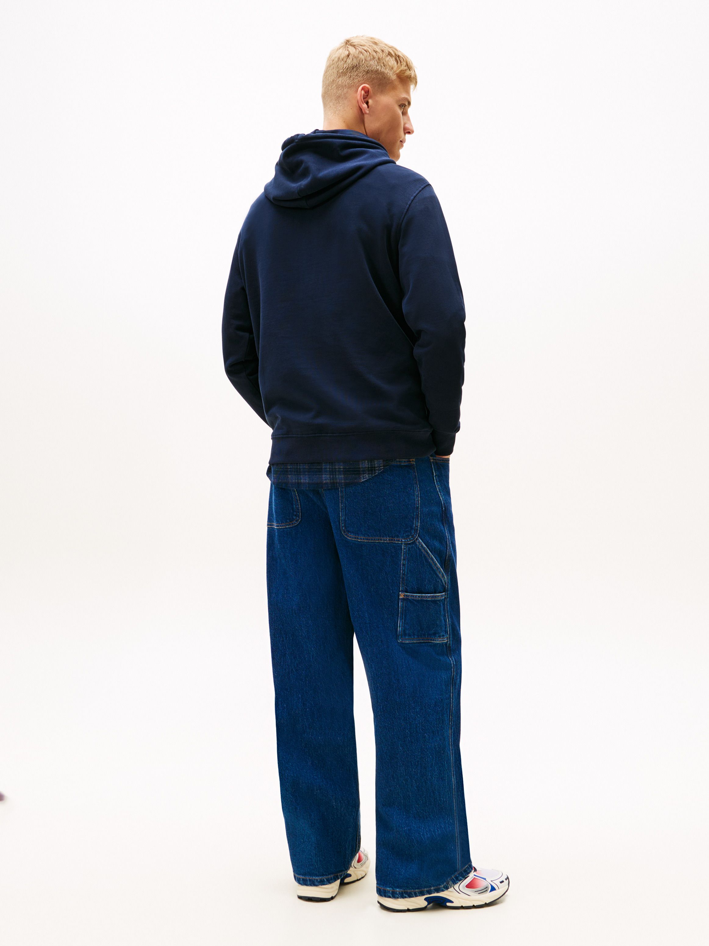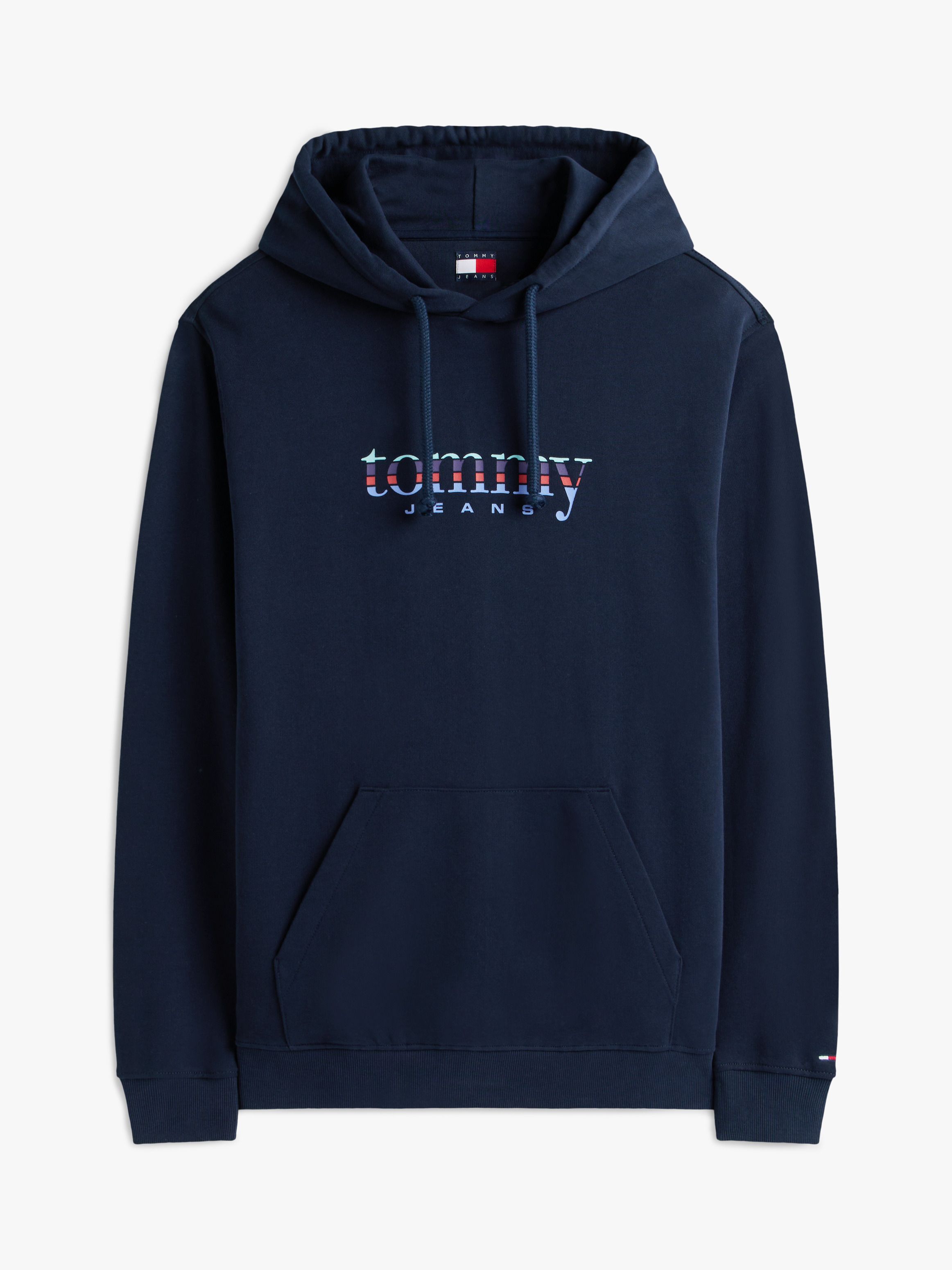 • Pure cotton terry • Drawstring hooded neck • Kangaroo pocket • Rib-knit cuffs and hem • Tommy Jeans logo on chest • Tommy badge inside neckline • Tommy Jeans branding • Tommy flag embroidery on cuff