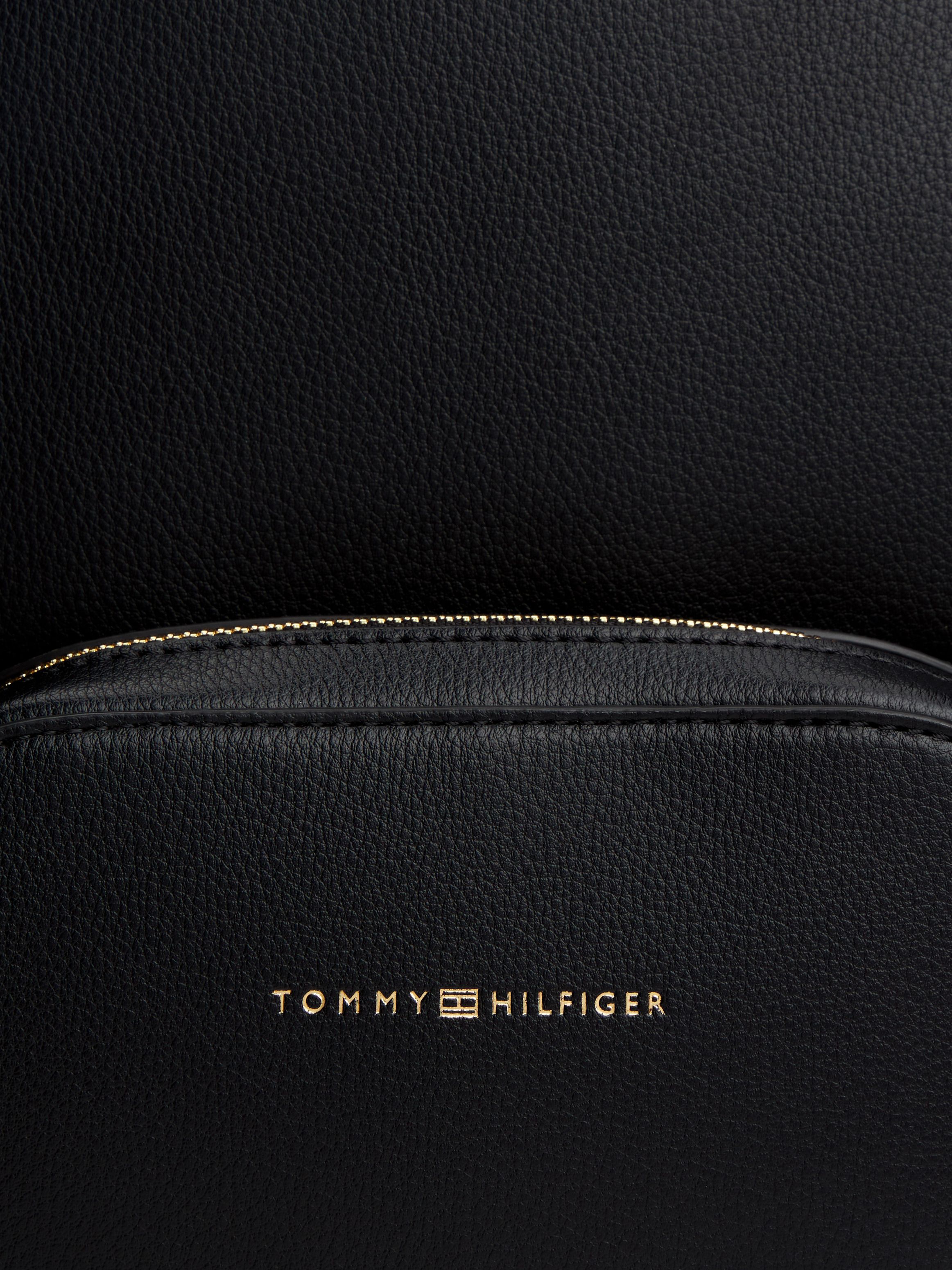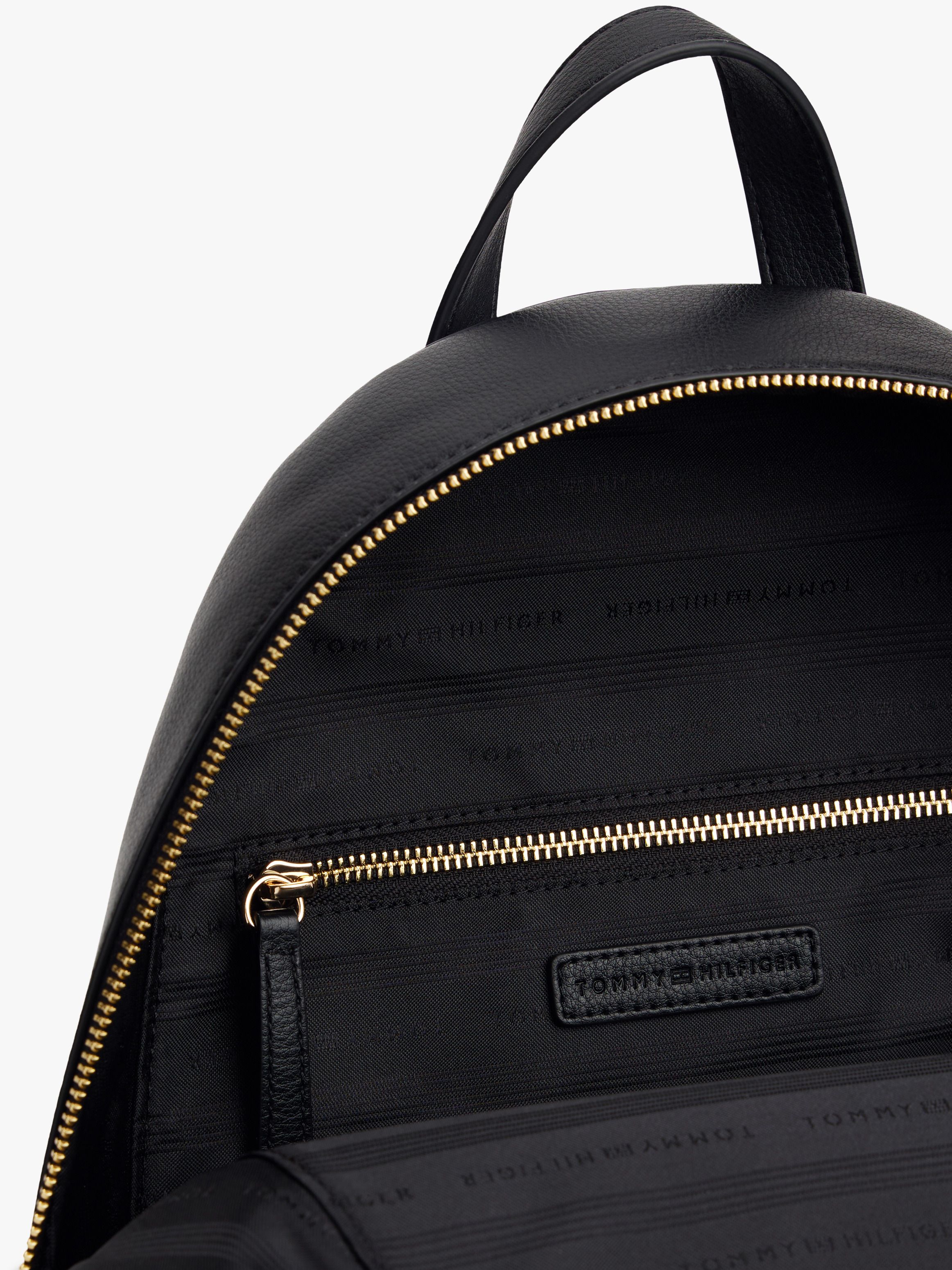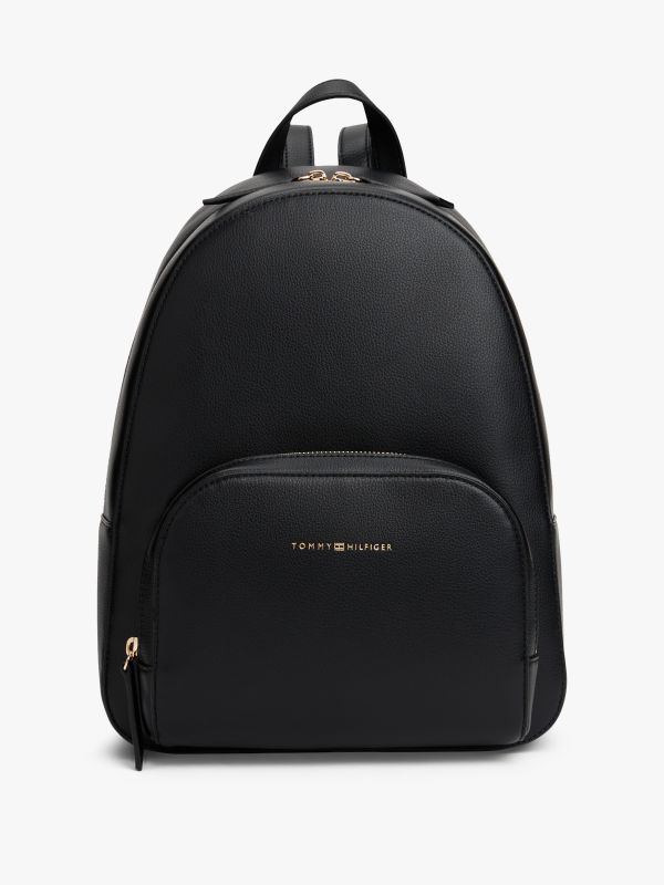 This pebble-grain backpack combines practicality and elegance with its spacious interior, front zipped pocket and metallic logo detailing.